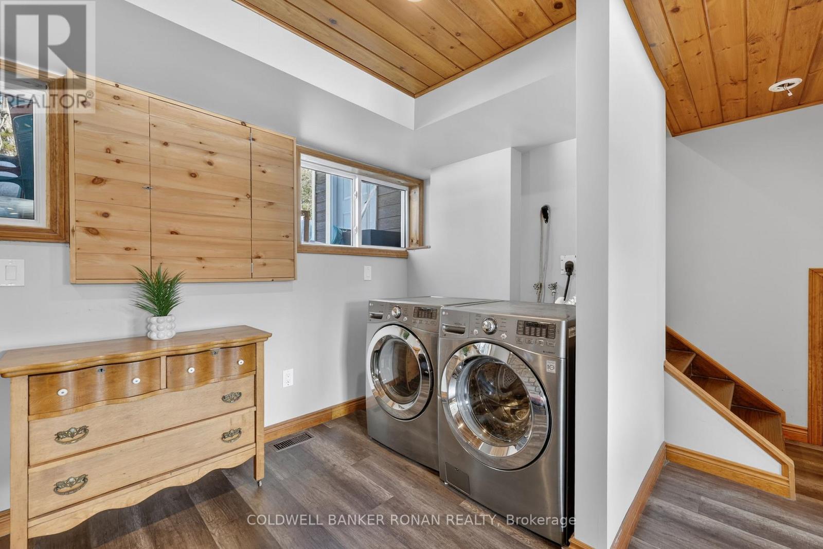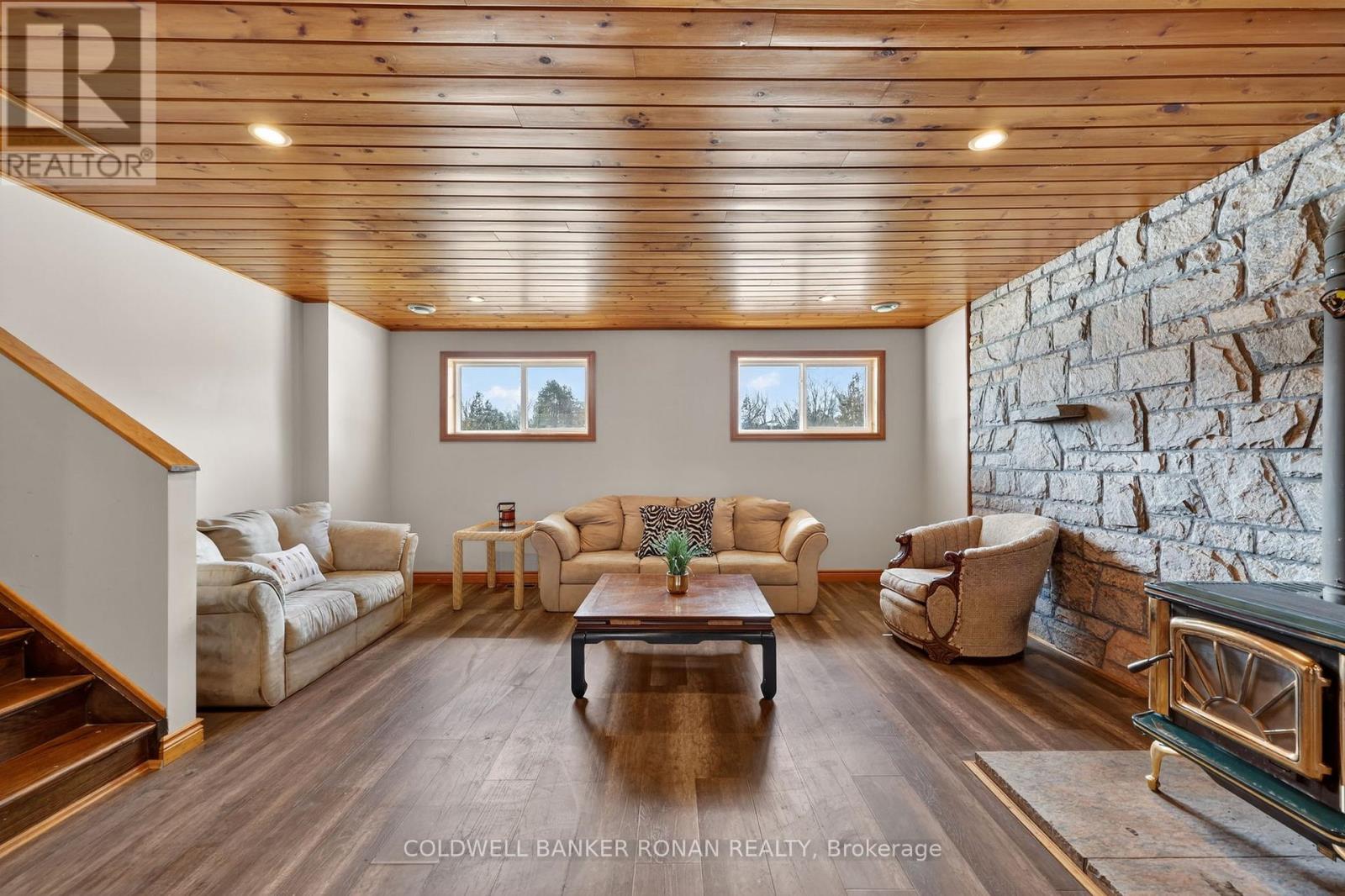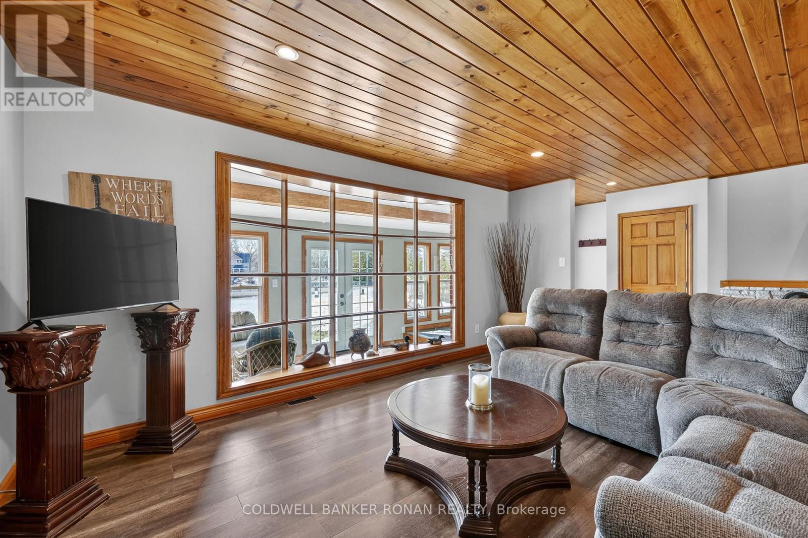This charming spacious home boasts open concept living room, dining room & kitchen, 3 good sized bedrooms and lovely family room with woodstove. The sun filled sunroom offers serene view of the river. You will find the perfect guest room above the garage with french doors and view of the river. The insulated 2 car garage has access into the home. Recent renovations 2025 incl. new windows, flooring on main & lower level, painted throughout, ceramic floors in sun room & back foyer & fridge, new furnace, A/C and garage insulted w/epoxy floor & garage heated by electric heater.Renovations six years ago incl. new pine tongue & groove ceilings throughout, wiring, insulation, drywall, kitchen & guest room above garage.You will find a good sized dock at waterfront across Santas Village Rd. giving access to the 3 big lakes, Muskoka, Joseph & Rosseau. Min to downtown Bracebridge with all amenities incl. hospital. This property is perfect for entertaining with that lovely peaceful feeling and plenty of outdoor space. Lots of parking.Book your appointment now and make this"Home Sweet Home" (id:64974)