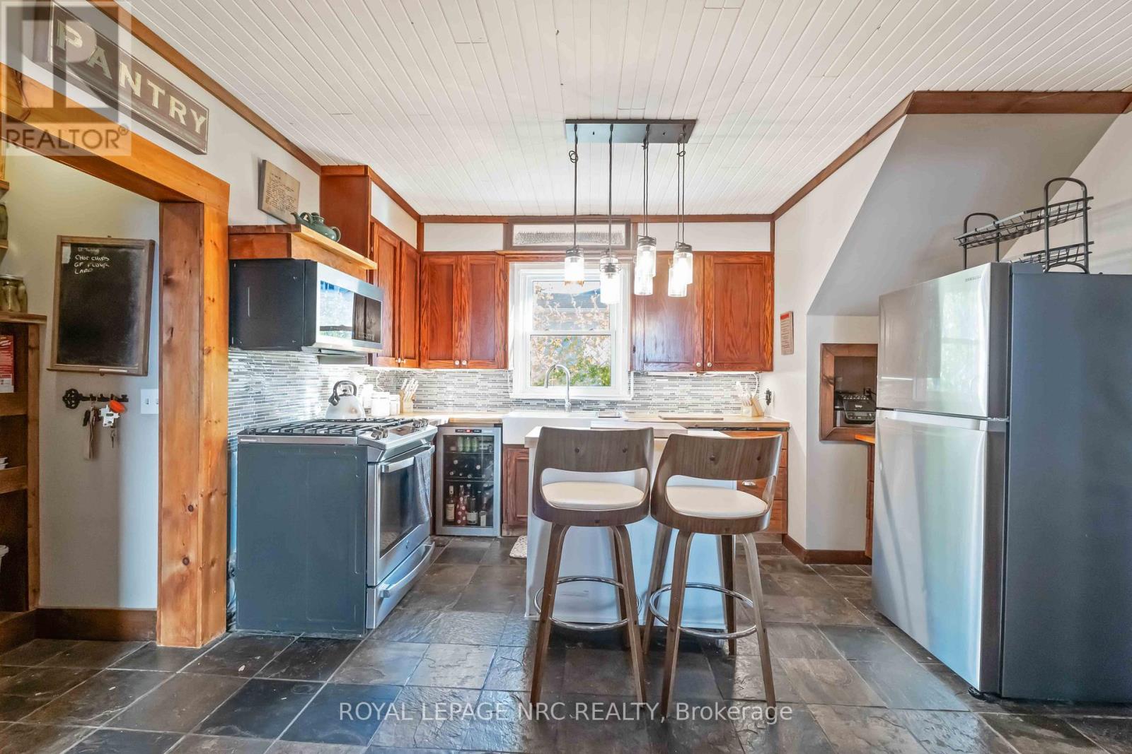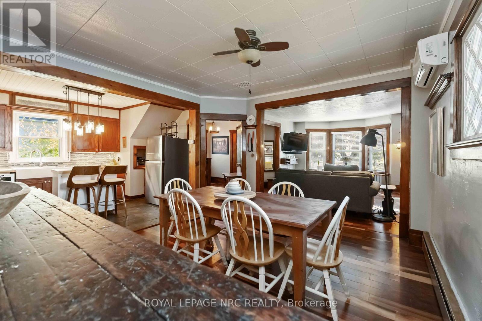 Welcome to 3638 Cutler Street -- a true character home that blends timeless old-world charm while offering an inviting open layout, perfect for todays lifestyle. From the moment you step inside, you'll feel the warmth and authenticity that make this property so special. The generous living room flows seamlessly into the spacious, character-filled dining room and kitchen, creating an open, airy feel that's perfect for everyday living or entertaining friends and family. The welcoming foyer, showcases the original staircase and rich wood trim, reflecting the craftsmanship of a bygone era. The main-floor primary bedroom is both practical and private, featuring sliding patio doors that open to the deck and hot tub, the perfect spot to unwind while enjoying the picturesque, treed backyard. This room has been changed to a tv/family room at present as it shows the 'flex-space' that it can serve as. The yard feels like a private retreat with plenty of room to relax. A convenient main-floor laundry room adds extra functionality. Throughout the home you will find unique architectural touches and character details - the granite fireplace that anchors the living room with warmth and style and the beautifully placed wood-framed windows that fill the home with natural light. Every corner offers something special, making this home truly stand apart from the ordinary. Set on a quiet street with wonderful curb appeal, this property offers the best of small-town living. You're just steps from the Friendship Trail and within easy walking distance to downtown Ridgeway, known for its charming boutiques, cozy coffee shops, restaurants, and the ever-popular farmers' market. Full of warmth, history, and heart, 3638 Cutler Street is not a cookie-cutter home - it's a rare find that perfectly combines character, comfort, and location in one remarkable package. (id:64974)