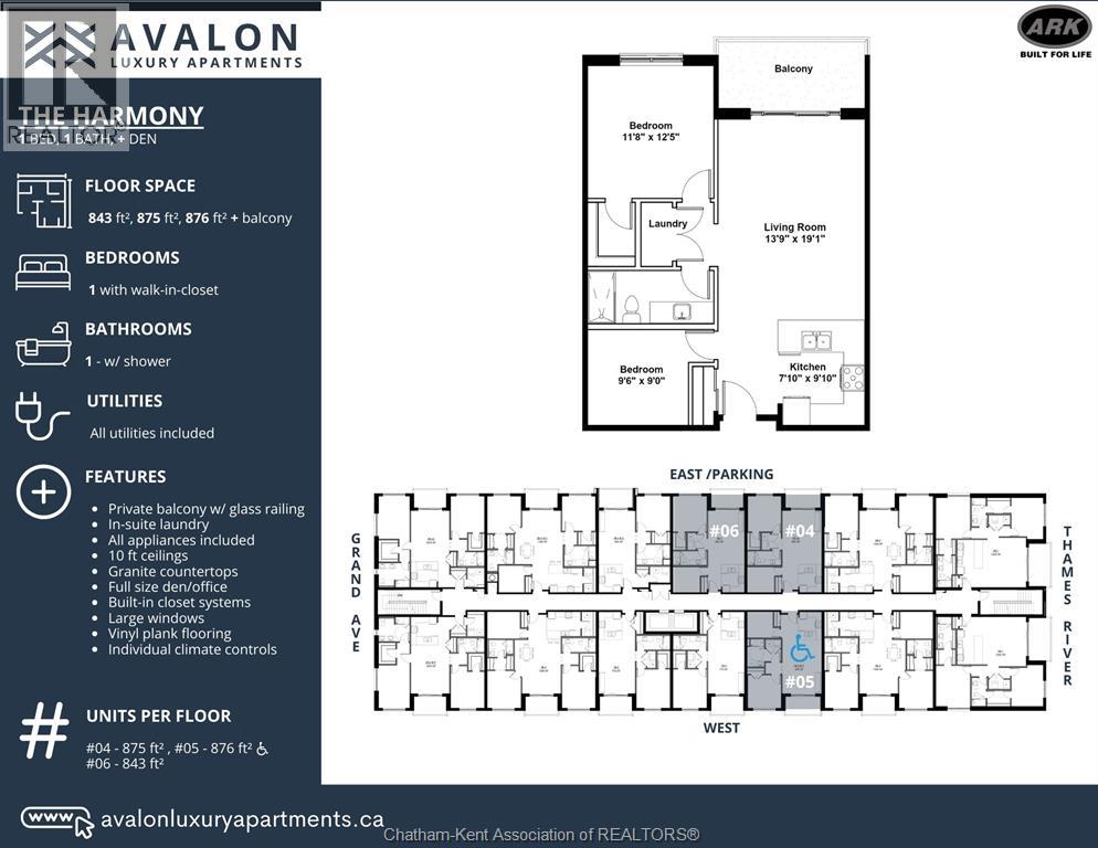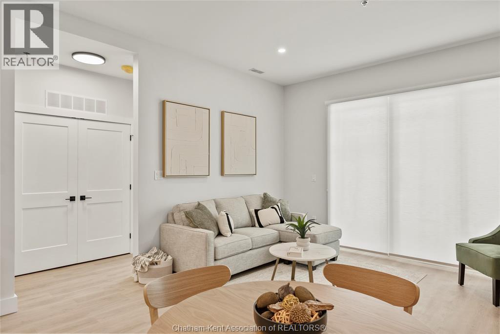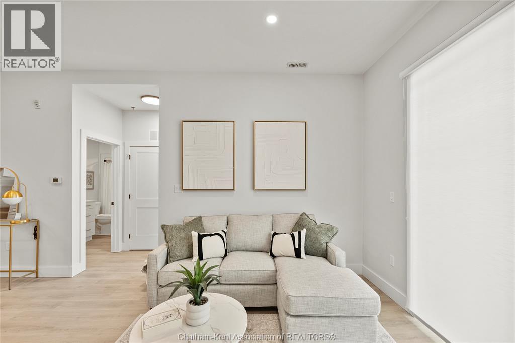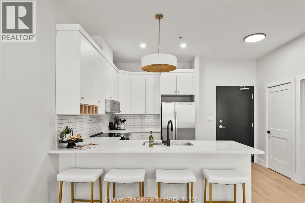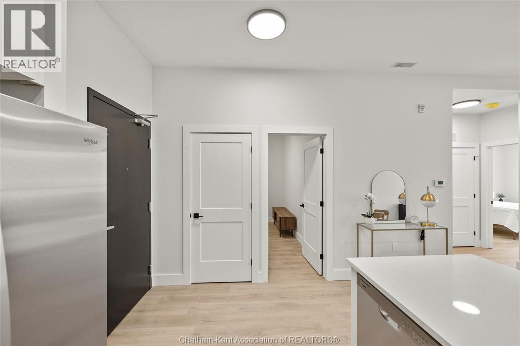 Welcome to the Avalon on Grand, where luxury meets convenience. Ark Design Build's newest offering in Chatham, a spacious one-bedroom apartment with full size den/office, that is designed with your comfort and lifestyle in mind. Boasting an impressive 10 ft ceiling, this unit offers an airy and open ambiance that is not found in other buildings. The modern kitchen is a chef's dream, featuring quartz countertops and quality appliances that make cooking a pleasure. Step into the large bedroom and discover a walk-in closet and an expansive window that bathes the space in natural light. The private balcony, with glass panel railing, provides an exclusive outdoor retreat perfect for morning coffees or quiet evenings in the summer. The apartment is complete with a 3pc bathroom and in-unit laundry with front-load washer and dryer. Best of all, utilities are included in the price, ensuring a hassle-free living experience. The Avalon on Grand redefines apartment living. Occupancy November '24 (id:64974)