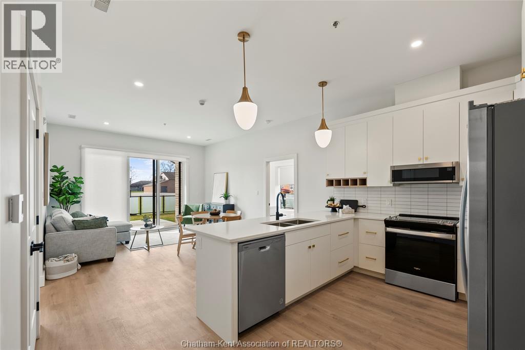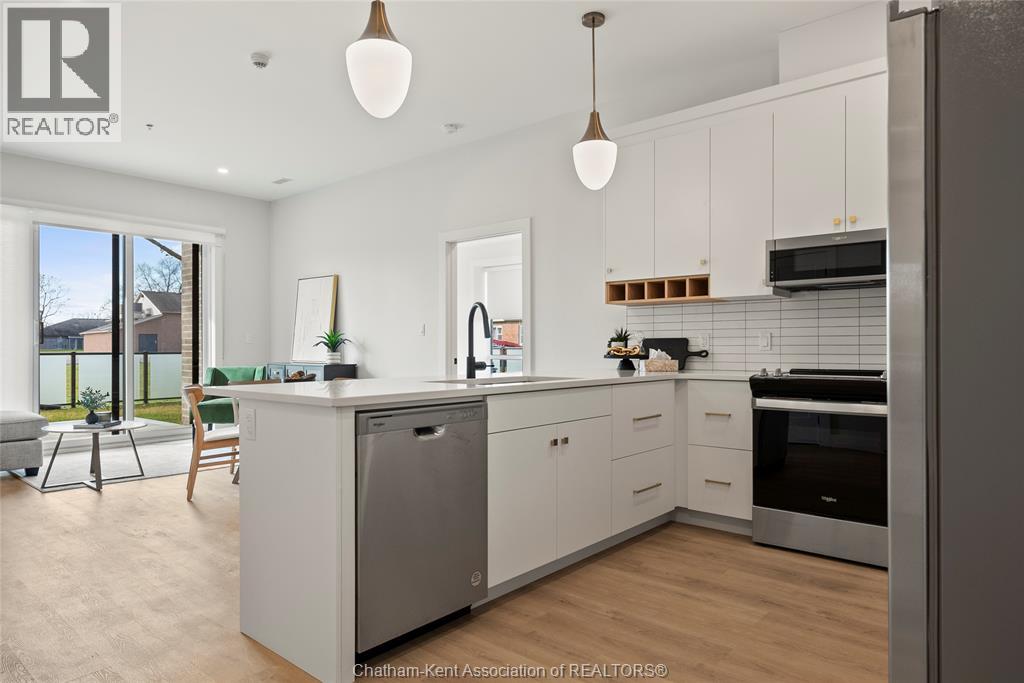 Welcome to the Avalon on Grand, where luxury meets convenience. Ark Design Build's newest offering in Chatham, a stunning two-bedroom corner apartment. Boasting an impressive 10 ft ceiling, this unit offers an airy and open ambiance that is not found in other buildings. The modern kitchen is a chef's dream, featuring quartz countertops and quality appliances that make cooking a pleasure. Step into the large bedrooms and discover walk-in closets, large windows and en-suite bathrooms, one complete with double vanity. The private balcony, with glass panel railing, provides an exclusive outdoor retreat perfect for morning coffees or quiet evenings in the summer. Complete with in-unit laundry with front-load washer and dryer. Best of all, all utilities are included in the price, ensuring a hassle-free living experience. The Avalon on Grand redefines apartment living, offering unparalleled luxury and convenience. (id:64974)