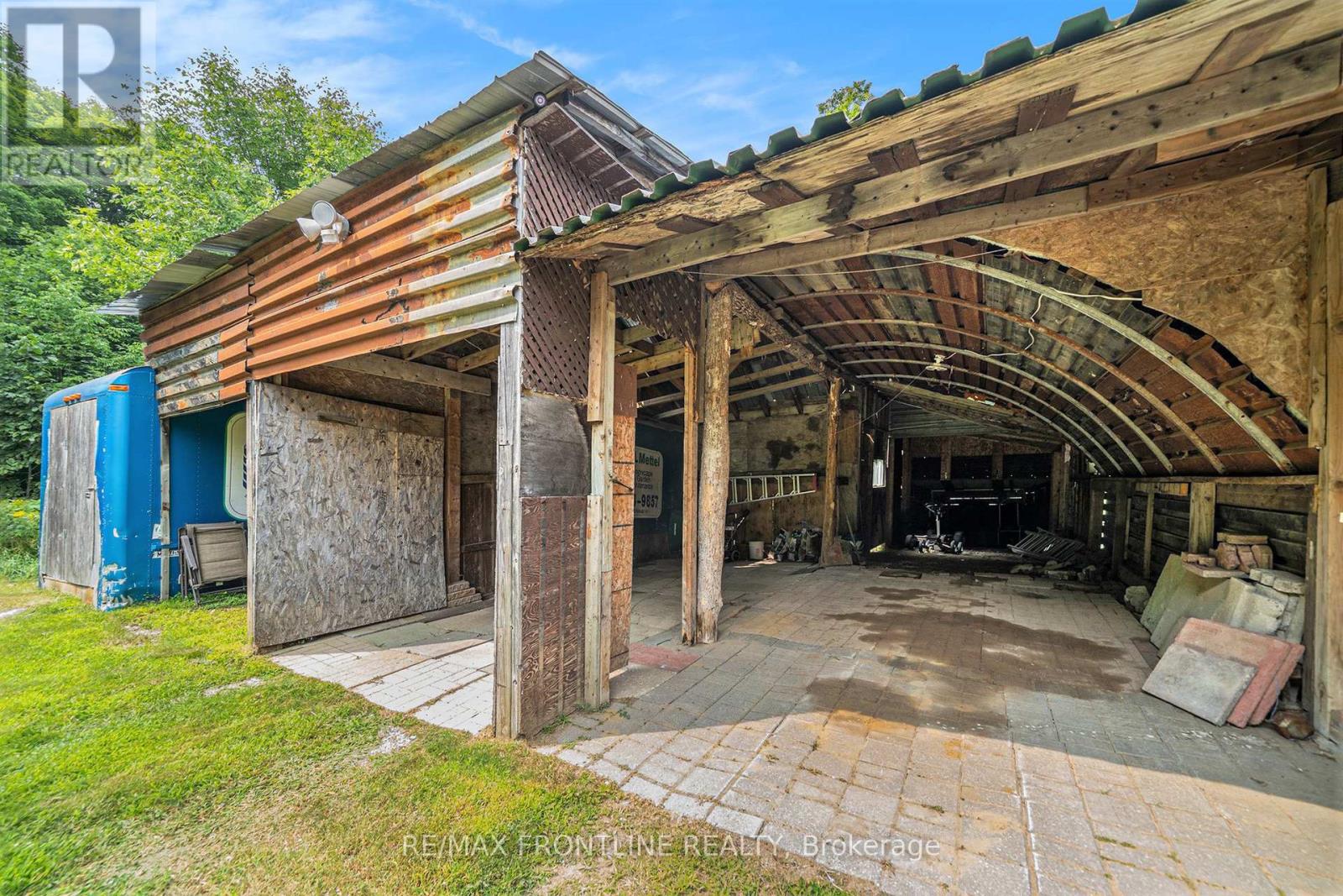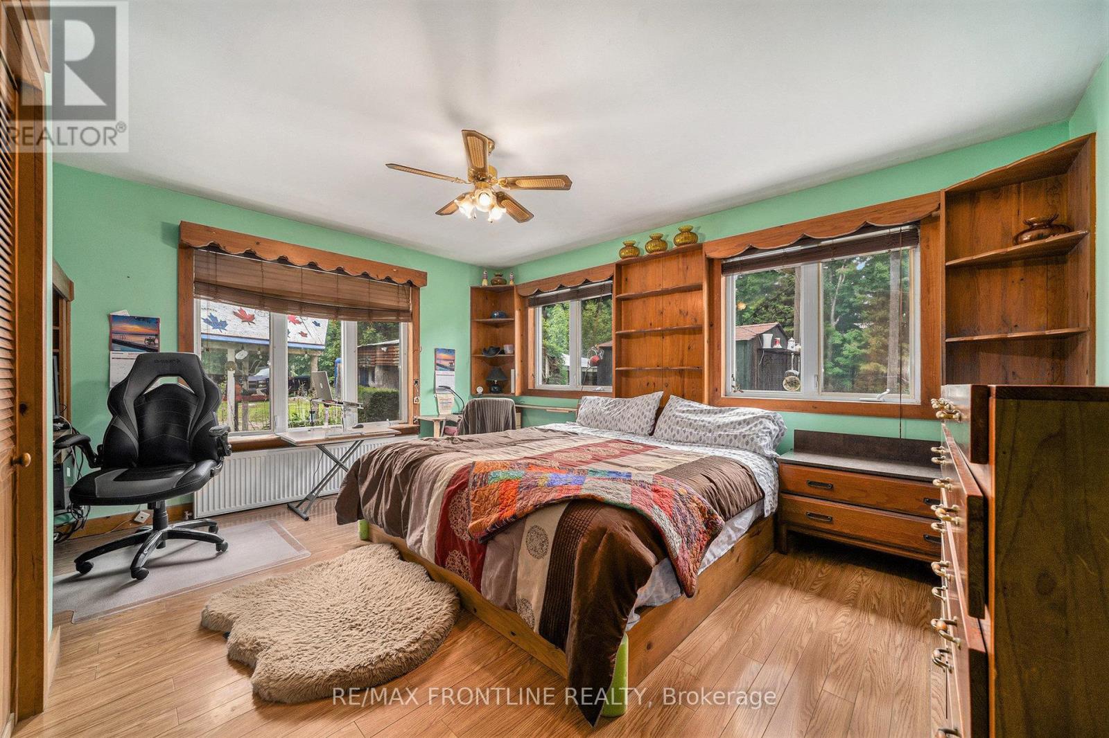 Enjoy a quality lifestyle in the country on this peaceful 6 acre property located about 10 minutes east of Sharbot Lake where you will find a full range of amenities and conveniences. Also, a short distance to Round Lake. This 1 bedroom; 1 bathroom bungalow with board / batten exterior was constructed in a manner that allows for a second storey to be added. The open concept living space with larger windows throughout provides for breath-taking panoramic views of the gardens in summer as well as picturesque 'winter wonderland' scenes in winter. At the heart of the home is the efficient galley kitchen, equipped with a gas stove, skylight, bar-style counter running along the work area and adjacent to the living space. The comfortable primary bedroom includes a convenient office nook for taking care of business. Then stepping outside from the main living area, onto a large deck, enjoy the perfect place for barbequing, gatherings with family and friends or morning coffee where you are surrounded by trees and flowers that provide the perfect haven for wildlife, many bird species and butterflies. Other noteworthy features include front door (2024), a 4-bay outbuilding accommodating 3 parking spaces for vehicles and a tool shed; storage shed; she shed / garden shed; well pump (2024); hot water on demand; water filtration system (est 2020); and dry wood storage area. Annual utilities costs for current owners: propane $600; pellets $800 and hydro $1500. WELCOME HOME TO WHERE NATURE SURROUNDS YOU! (id:64974)
