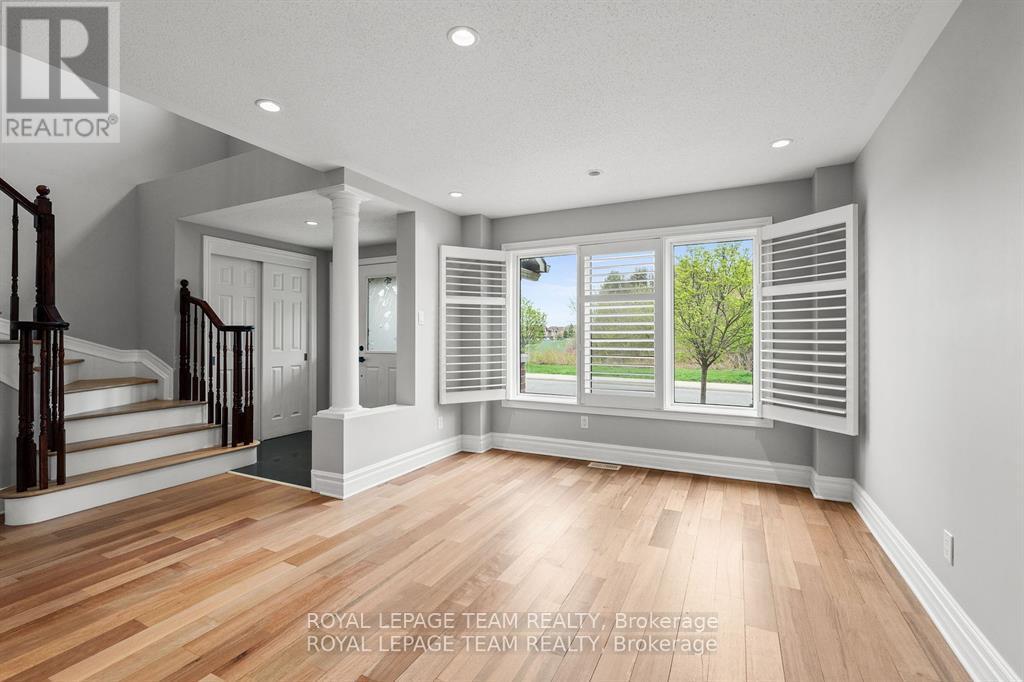 The perfect 4 bedroom family home with a glorious view of Chapman Mills Forest across the street. Offering a RARE, OVERSIZED, PREMIUM LOT! Freshly painted top to bottom and new-look natural hardwood floors. The main level features a 17ft high-ceiling welcoming foyer, a formal living and dining area. This home is warm and inviting, with extra windows that bring in tons of natural light throughout, and boasts classic California shutters throughout. The white kitchen is well equipped with marble backsplash, built-in appliances, elegant glass-front cabinetry and quartz countertops. A patio door off the kitchen leads to the huge, fenced backyard. There is a spacious family room, gas fireplace and a powder room that complete the main level. Upstairs you'll find 4 sizeable bedrooms and the laundry room. The primary bedroom has a walk-in closet and 5-pce ensuite. The unfinished basement with deep windows offer many options to suit your lifestyle. Tucked away on a friendly crescent with NO FRONT NEIGHBOURS and just steps from schools and daycares. Close to restaurants, shopping centres, public transit. (id:64974)