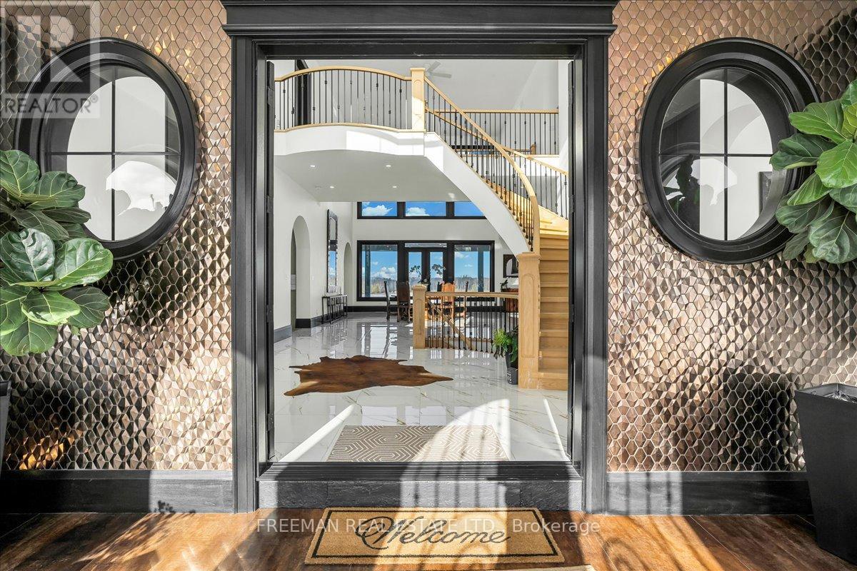 A once-in-a-lifetime opportunity to own one of Durham Region's most remarkable modern country estates. Set on 52 acres of rolling countryside, forested walking trails, & a peaceful pond that glistens in summer, transforming into a skating rink in winter, this architectural masterpiece combines timeless design, privacy, & connection to nature in every direction. Inside, more than 8,500 sq. ft. of finished living space unfolds with soaring ceilings, walls of glass, & sunlit interiors that frame the surrounding landscape like art. Expansive principal rooms flow effortlessly, creating an atmosphere that feels open, refined, & entirely at ease. The gourmet kitchen is a showpiece of form & function with top-tier appliances, designer finishes, & a generous island that anchors gatherings of family & friends. The west-wing primary suite offers a private sanctuary with a dressing room or nursery, large walk-in closet, fitness room, & a spa-inspired ensuite featuring dual vanities, a two-person steam shower, & a freestanding tub perfectly placed to take in serene views of the trees. Upstairs, each bedroom enjoys its own ensuite & walk-in closet, while a self-contained guest wing with a full kitchen, living area & bath provides comfort & independence for guests or extended family. Eight years new, this home was built with lasting quality & modern innovation in mind, featuring geothermal heating, radiant floors, multiple fireplace rough-ins, a pet spa, & a heated three-car garage. The 1,150 sq.ft. covered terrace invites year-round outdoor living & endless sunsets. The lower level adds another 5,700 sq. ft. of potential with exceptionally high ceilings & large windows ready to be finished as a theatre, gym, studio, or wine cellar. Privately situated at the end of a quiet cul-de-sac, yet only minutes from top schools, shops, & community amenities. A rare blend of modern architecture, natural beauty, & quiet sophistication that must be seen to be fully appreciated. (id:64974)