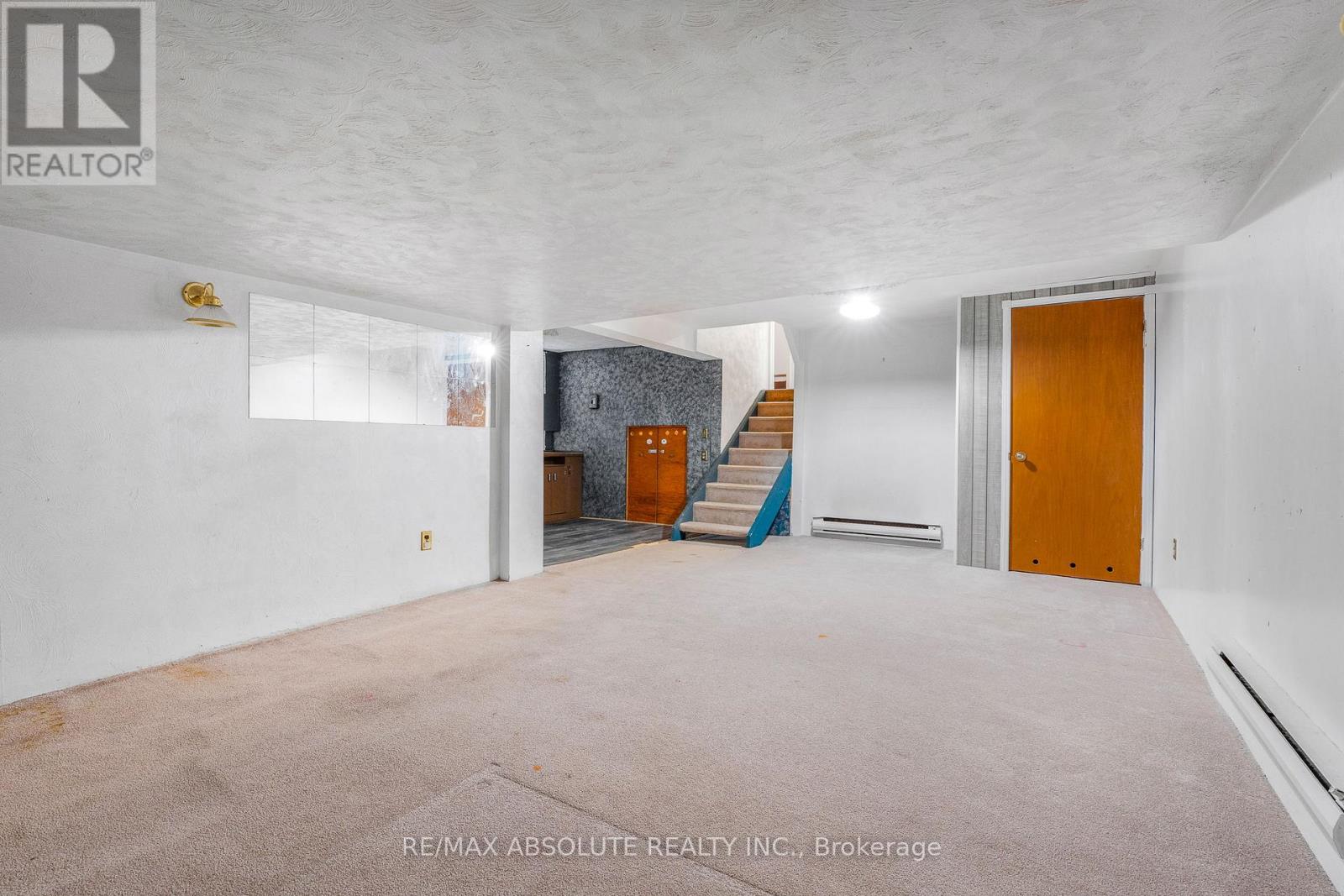 OPEN HOUSE Sunday March 15th , 2026 from 2-4pm!! Detached 4-bedroom, 1.5-bath split-level home situated on a generous 75-ft wide lot in Rockland. This property offers great space and functionality, with plenty of potential for buyers looking to renovate and add their own personal touch.The home features an enclosed front foyer with French door and oversized closet, leading into a sunken living room with oak railing and large picture window providing natural light. The kitchen has been opened up for improved flow and includes ample drawer storage, tile backsplash, and a central island for everyday use.The upper level offers two well-sized bedrooms with good closet space and a full 4-piece bathroom. A few steps down from the main living area are two additional bedrooms-ideal for teens, guests, or home office space. The lower level includes an L-shaped family room, dedicated laundry area, and additional low-ceiling storage space for seasonal items.PVC windows and a foundation membrane (2014) are notable updates. A home with space and layout already in place-ready for cosmetic improvements and a buyer willing to bring new life into it. (id:64974)