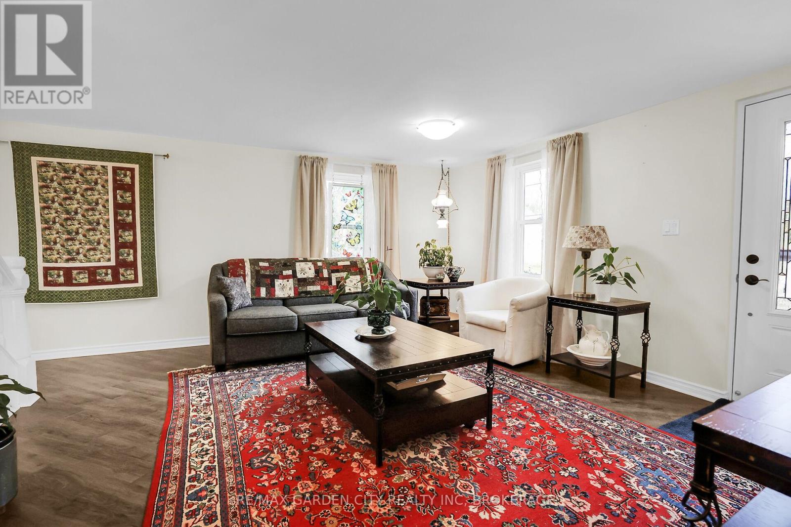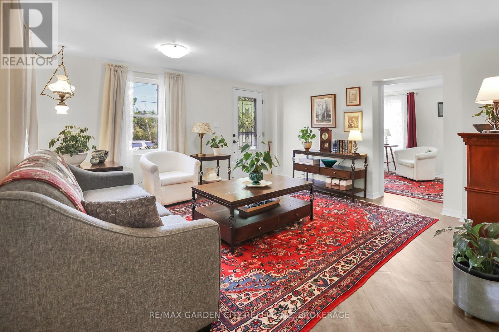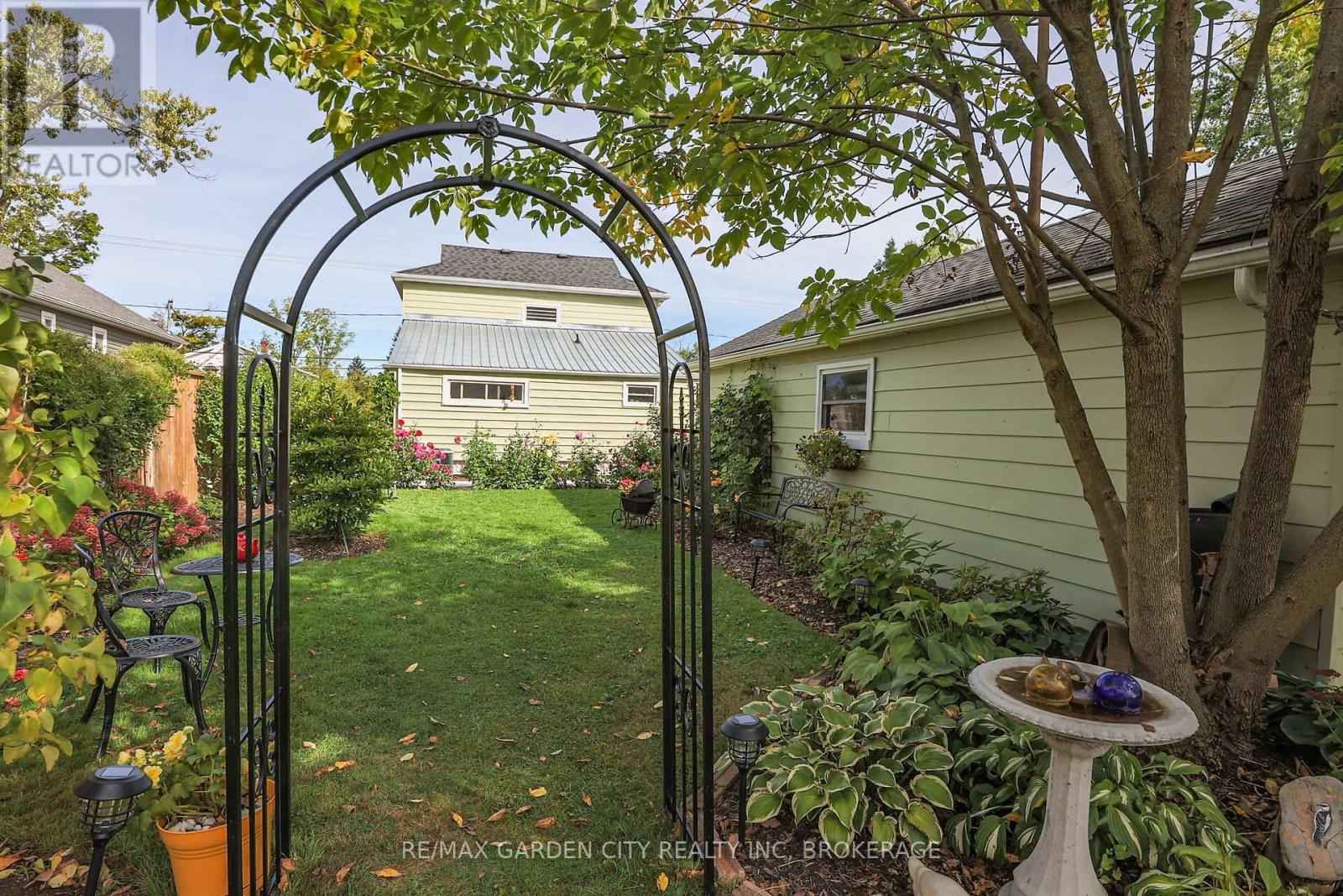Victorian-era home nestled in the heart of the friendly village of Stevensville welcomes you to 1,153 sq.ft. of lovingly renovated space. Modern updates blend seamlessly with timeless charm and character. Upstairs, you will find three well-appointed bedrooms; the downstairs den easily serves as a fourth bedroom when needed. The main floor features an updated bathroom and laundry room. Recent improvements add to curb appeal and functionality. A new front door with stained-glass window greets you, complemented by fresh shutters and window boxes. New concrete sidewalks enhance the front, side and back of the house, leading to a 16x32 garage/workshop. The clean, partial basement offers ample storage space. Comfort and efficiency are ensured with the on-demand, owned hot water system, gas furnace and central air conditioning. Well insulated, the home provides cozy warmth in winter and cool comfort on hot summer days. This meticulously maintained property is in move-in-ready condition, offering an easy transition to the new owners. Quality education for children is offered at Stevensville Public School. Local amenities include Stevensville Garden Centre, Safari Niagara Zoo, Tim Horton's, little restaurants, and, in summer, Jazzy Scoops ice cream. The Friendship Trail and Crystal Beach are nearby. The property stands out with its impressive 264-foot-deep lot that backs onto a park featuring a playground, splash pad and tennis courts close to the library and community centre. Extensive landscaping has transformed the backyard into a showcase flower garden, complete with fruit trees, cute shed and raised beds for organic vegetables. (id:64974)