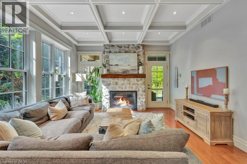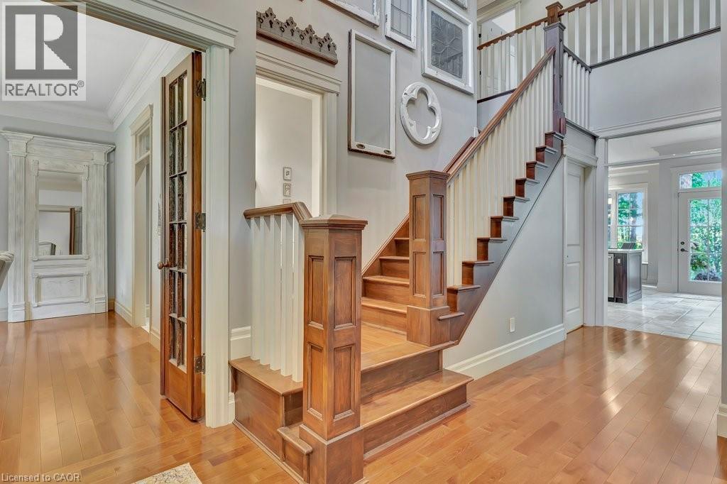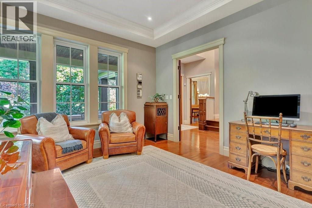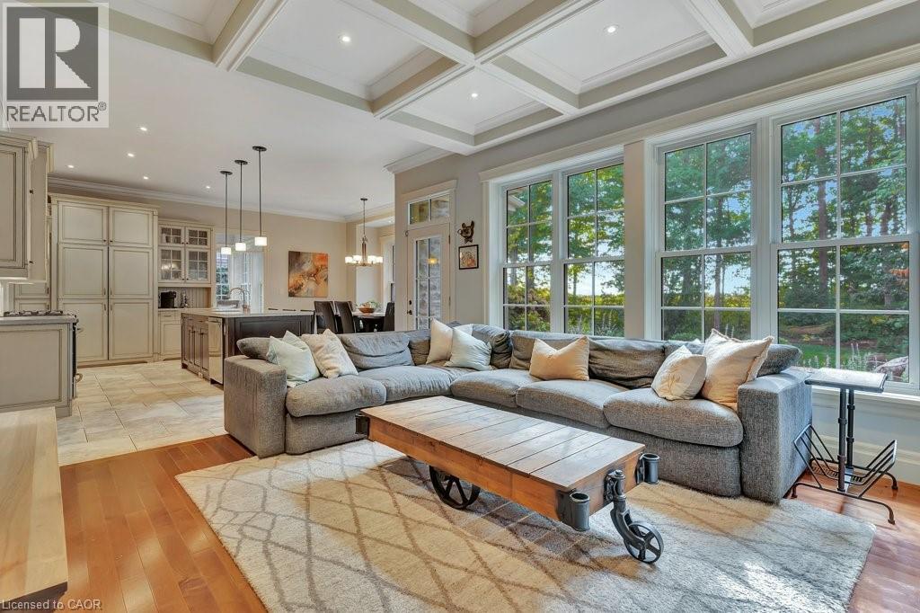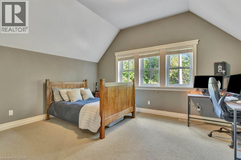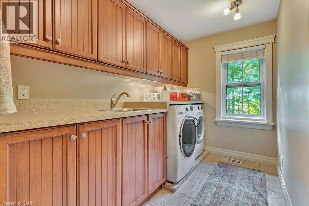 Welcome to this exceptional executive home offering almost 6 acres of privacy and luxury, just minutes from the City of Cambridge. More than 3,850 sq. ft. above grade plus an unspoiled walk-up basement with 10-foot ceilings. This home blends sophistication, functionality, and future potential. The main level features a spacious kitchen with a large pantry, a sunroom filled with natural light, a screened-in porch, and multiple living spaces perfect for family gatherings or entertaining. You’ll also find a separate dining room, a study, two fireplaces, and in-floor heating throughout much of the home. Upstairs, discover four generous bedrooms, including a primary suite with ensuite bath, and an additional bedroom with a rough-in for a 3-piece bathroom.There is a 3-piece rough-in in the basement providing even more opportunity for customization—ideal for a future in-law suite, complete with a walk-out to the garage. Outside, enjoy the fire pit area, irrigation system, and expansive driveway leading to the attached 2-car garage. A second detached 2-car garage includes a fully equipped studio apartment and additional space suited for a home-based business. The property also features a chicken coop, offering a touch of country charm. This rare offering combines the best of country living with convenient city access—perfect for multi-generational families, professionals working from home, or those seeking a peaceful retreat without compromise. See attached floor plans and full video under sales brochure. (id:64974)