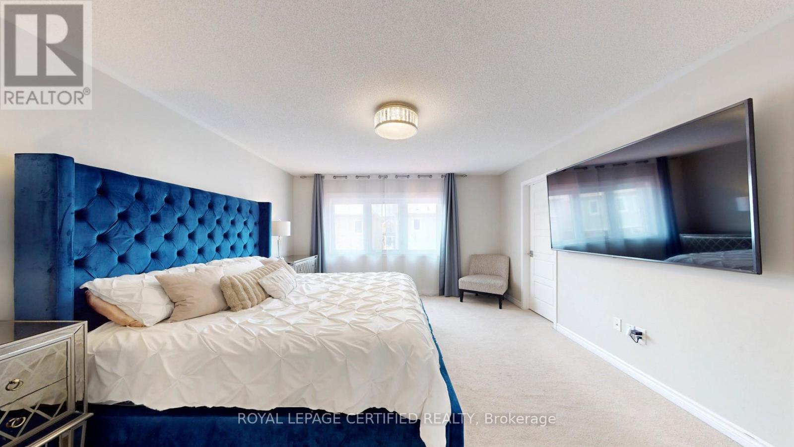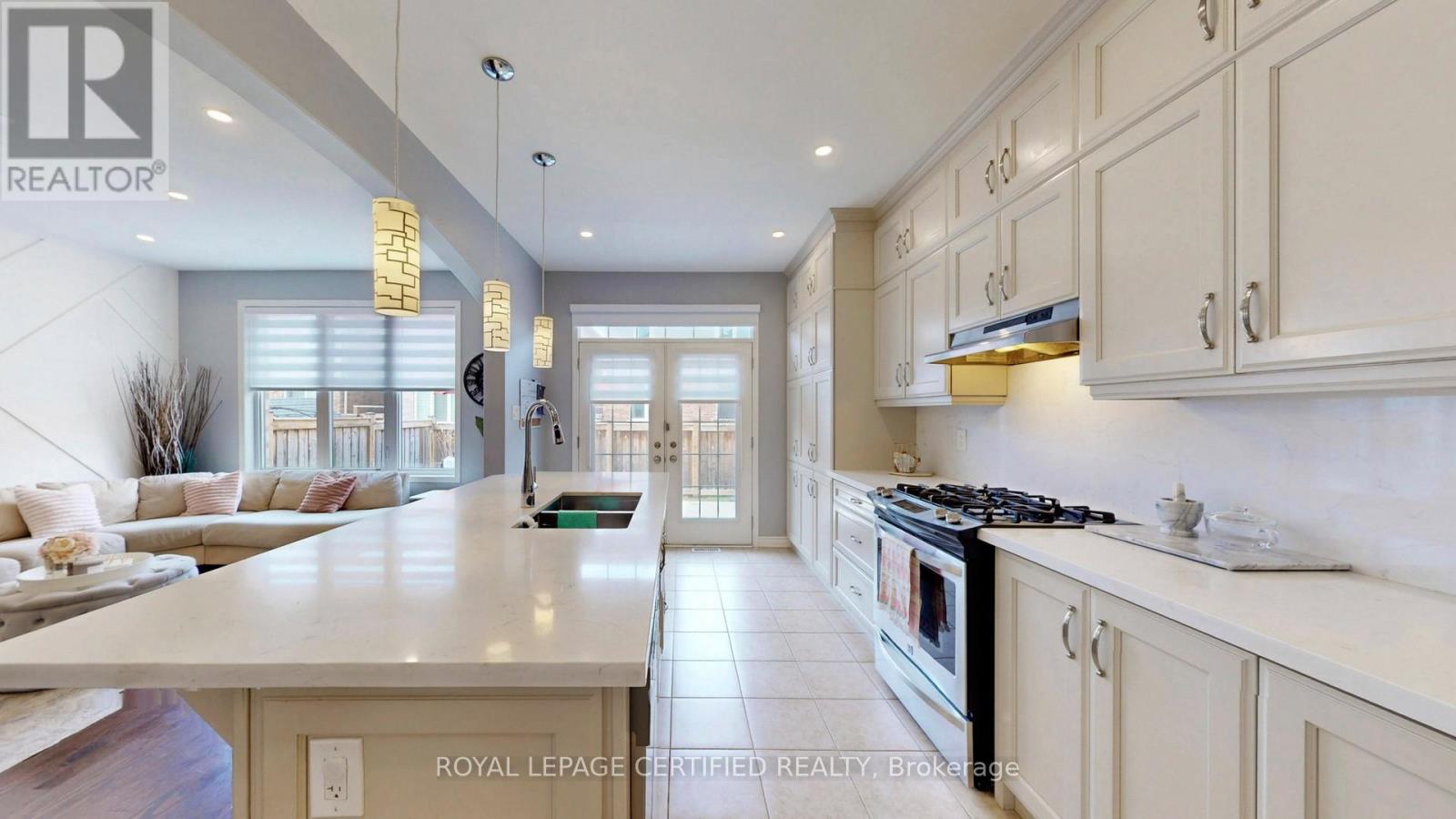Stunning Mattamy-built "Trenton" French Chateau model offering 4 bedrooms and 4 bathrooms in a highly sought-after Milton community. This beautifully maintained detached home features 9-ft smooth ceilings on the main floor and a functional, well-designed layout ideal for modern family living.The main level includes a separate dining room and a versatile den, perfect for a home office. The family room, featuring a large window overlooking the backyard, offers a bright and inviting space. Pot lights throughout the main floor enhance the home's warm and contemporary feel.The upgraded chef's kitchen showcases a large centre island, quartz countertops, and a stylish backsplash, seamlessly connecting to the main living areas. A rare and highly desirable feature, this home offers TWO PRIMARY-STYLE BEDROOMS WITH ENSUITES-the spacious primary retreat includes a 4-piece ensuite with extended glass shower enclosure and walk-in closet, while a second bedroom also enjoys its own private ensuite. Two additional well-sized bedrooms and a full bathroom complete the upper level, making it ideal for multi-generational living or growing families.Additional highlights include oak stairs with iron pickets, direct garage access, and a basement with plumbing rough-in offering future potential.The backyard features a concrete patio, providing a low-maintenance outdoor space for entertaining and relaxation. Conveniently located close to parks, top-rated schools, and everyday amenities, this home delivers exceptional comfort, flexibility, and value in a family-friendly neighbourhood. Water softner system, gas stove, new window coverings (id:64974)