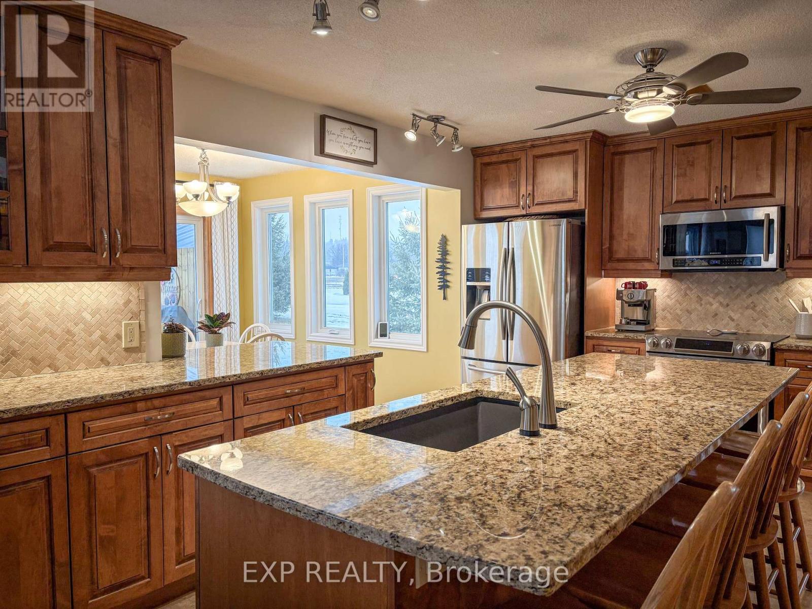 Set on a generous 96 x 200 ft lot on a quiet dead-end street, this beautifully maintained 1.5-storey family home offers space, privacy, and a location that's hard to beat-just across from the Bonnechere River and steps to the Algonquin Trail for year-round recreation including hiking, biking, ATVing, and snowmobiling. With approximately 2,000 sq ft of living space, this home is ideal for growing families or those seeking a peaceful setting with convenient access to Highway 17 for commuting. The main level features a well-designed layout with a welcoming family room anchored by a cozy gas fireplace, a separate formal living room, and a dedicated dining area for entertaining. The updated kitchen (2015) showcases rich maple cabinetry, granite countertops, and a bright breakfast nook overlooking the private backyard. A main floor laundry room and convenient 2-piece powder room add everyday functionality, while the attached double car garage offers direct access. Upstairs, you'll find three comfortable bedrooms and a spacious 4-piece bathroom. The fully finished lower level extends your living space with a large rec room featuring an additional fireplace, a fourth bedroom, and a 3-piece bathroom-perfect for guests, teens, or a home office setup. This home has seen extensive updates over the years, including all windows and garage doors replaced in 2022, patio doors in 2021, gas furnace and central air (2014), tankless hot water system (2012), and roof shingles (2011), providing peace of mind for years to come. Enjoy the privacy of a large backyard, the tranquility of a quiet street, and the convenience of being located on the edge of town with quick access to amenities and commuter routes. A wonderful opportunity to own a move-in ready home in a sought-after Renfrew location. Call now for your private viewing 🙂 (id:64974)