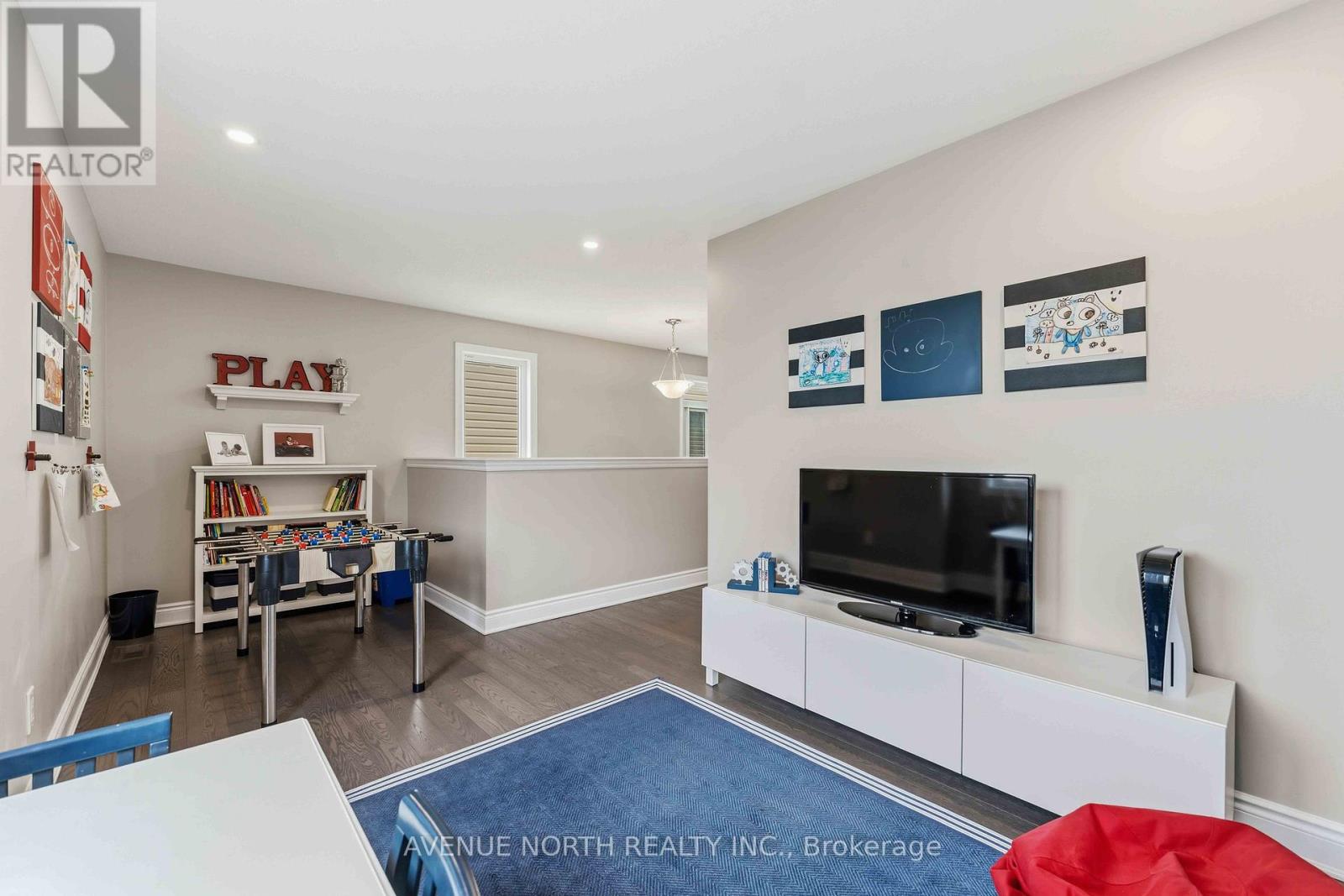 Welcome to this beautifully upgraded and well-maintained family home offering a perfect blend of style, functionality, and modern comfort. With great curb appeal, a double-car garage, and a thoughtfully designed layout, this home is move-in ready. Step inside to a bright and inviting foyer featuring a striking curved staircase and 9-foot ceilings on the main level. The open-concept layout showcases hardwood flooring and well-defined living spaces, including a formal dining area and a comfortable living room highlighted by a custom stone feature wall and cozy gas fireplace. Large windows throughout bring in an abundance of natural light. The kitchen is both stylish and functional, featuring white cabinetry, quartz countertops, stainless steel appliances, a modern backsplash, and a centre island with seating-ideal for everyday living and entertaining. The adjacent breakfast area overlooks the backyard. Upstairs, you'll find four bedrooms plus a versatile playroom, offering flexible space for family living, a media area, or a kids' zone. The primary bedroom provides a comfortable retreat, while the bathrooms are thoughtfully designed with quartz countertops and double vanities, offering both style and convenience. The main floor also includes a private office, perfect for working from home or quiet study. The unfinished basement offers excellent potential to customize additional living space to suit your needs. Located in a desirable, family-friendly neighborhood close to schools, parks, and amenities, this home offers a great balance of space, upgrades, and everyday practicality. (id:64974)