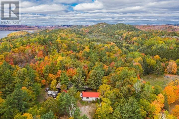 Privacy, room to roam and breathtaking views over Rock Lake are just a few highlights of this incredible 34-acre country property! Nestled in the hardwood trees is a 1273 sq. ft. raised bungalow and a huge garage and truck maintenance shop with 14 foot door. The main floor of the home includes a kitchen, dining area, large laundry room, 4-piece bathroom, three bedrooms, and French doors lead to the bright living room. A 3-piece bathroom, craft room and storage or rec room space make up the unfinished full basement with block foundation and wood floor. An outdoor wood furnace and newer propane forced air furnace heat the home and the 44 x 24 garage/workshop can also be heated. The gorgeous property has much to offer including trails that wind through the mixed bush and lead up to a look-out where a cozy, insulated older one-room cabin overlooks Rock Lake. The panoramic views are magazine worthy, any time of the year! Close to Old Mill Road and the Rock Lake beach and boat launch, just 15 minutes North from the town of Bruce Mines! (id:64974)