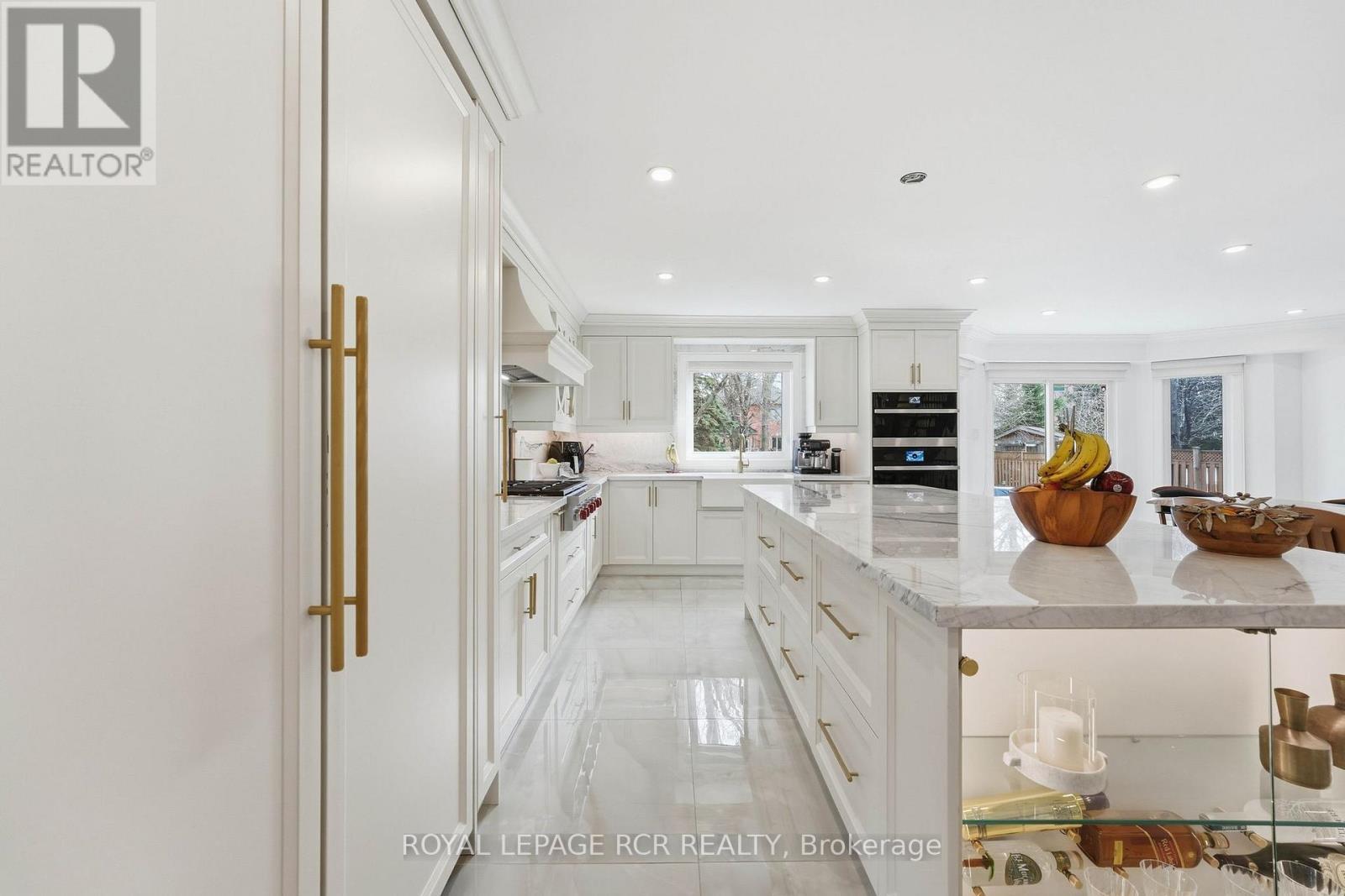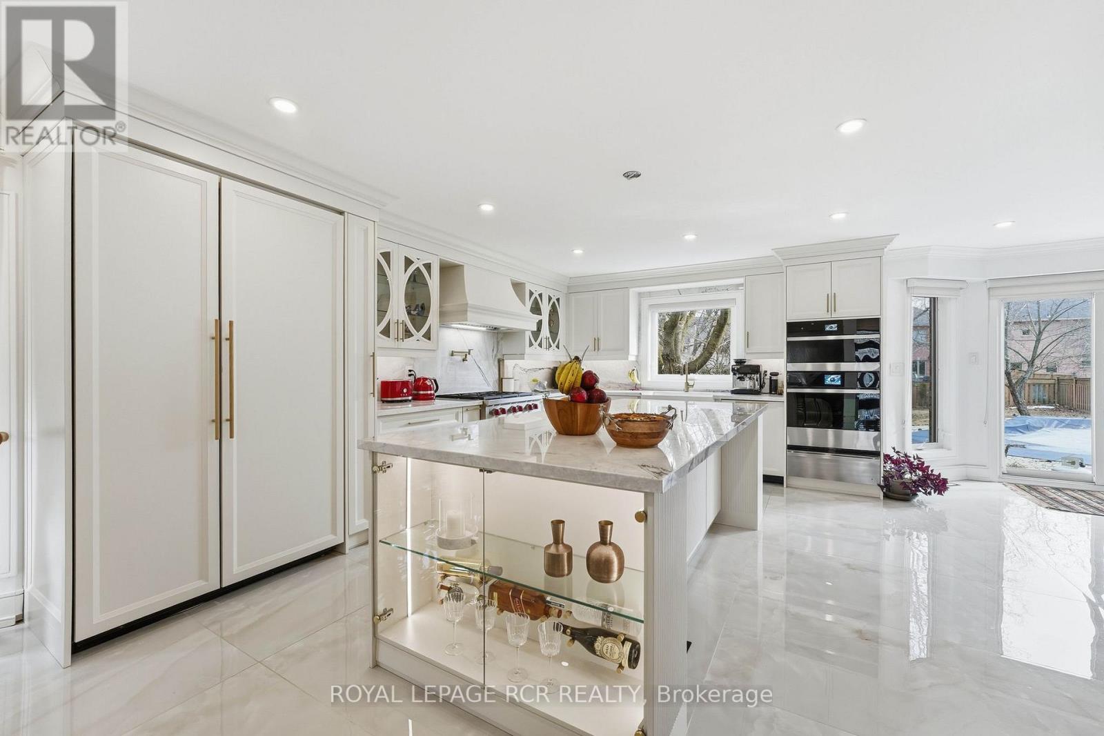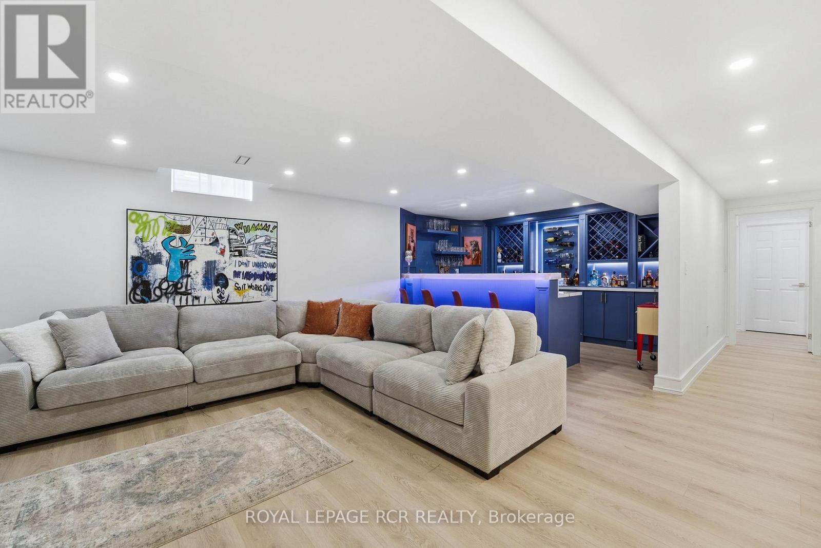 Welcome to 369 Kennedy Street West, Aurora. Completely reimagined in 2025 with a full $500,000 renovation, this home offers over 4,500 square feet of refined living space, finished with a cohesive, high-end design throughout. The main floor is thoughtfully opened to create seamless flow, anchored by large-slab tile flooring, smooth ceilings, and pot lights that enhance the home's bright, modern feel. A striking open riser Scarlett O'Hara staircase with hardwood treads and wrought iron pickets serves as a true architectural focal point. At the heart of the home, the custom kitchen is both functional and elevated, featuring marble countertops and backsplash, a large eat-in centre island, ceramic farmhouse sink, Wolf range, built-in oven and microwave, and a fully integrated cabinet-front refrigerator and dishwasher. The dining area transitions effortlessly to the backyard, where a walkout leads to a generous fully fenced yard with an in-ground pool, ideal for summer entertaining and everyday enjoyment. Upstairs, the primary suite offers a quiet, well-appointed space with hardwood floors, a bay window, two walk-in closets, and a spa-inspired 5-piece ensuite complete with clawfoot tub, glass shower, bidet, and double vanity. Three additional bedrooms provide flexibility for growing families or guests, including one with a private 3-piece ensuite and another with a semi-ensuite. For added convenience, the home features laundry on both the main floor and second floor. The fully finished basement extends the living space with intention, offering a den, full wet bar, dedicated gym area, additional bedroom, and a 3-piece bathroom. A rare offering that combines scale, craftsmanship, and thoughtful design in one of Aurora's most coveted and established neighbourhoods. (id:64974)