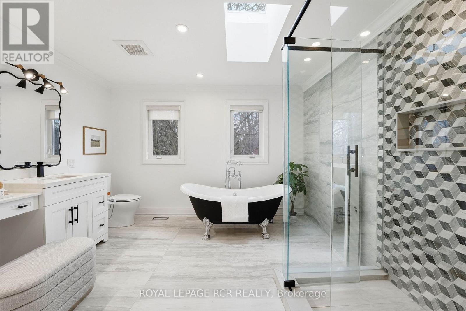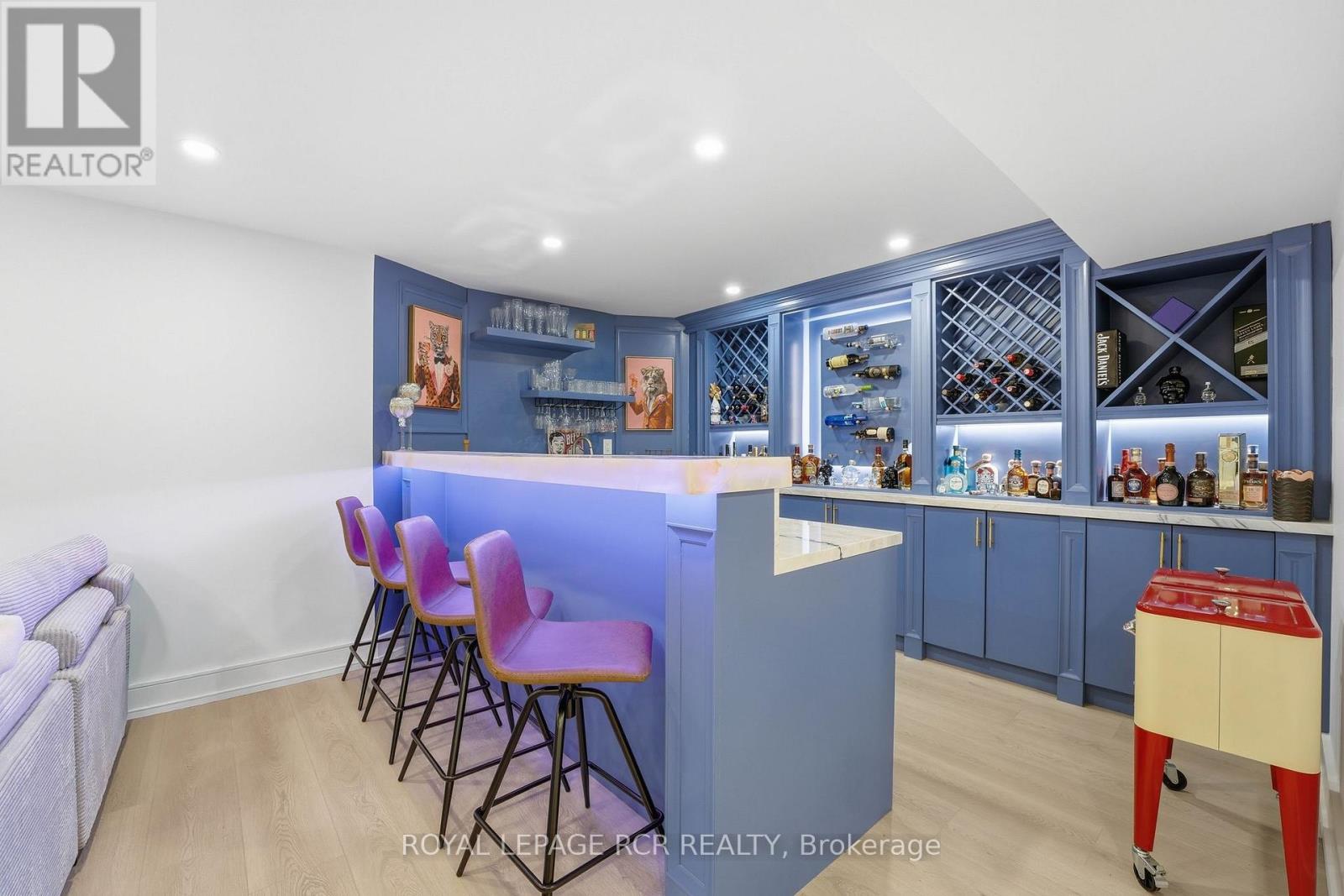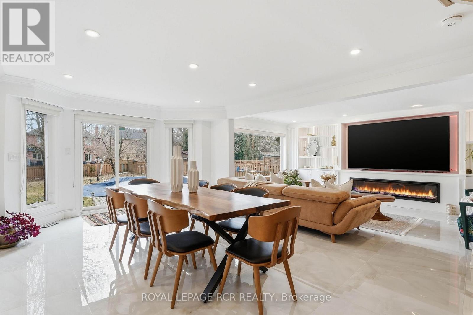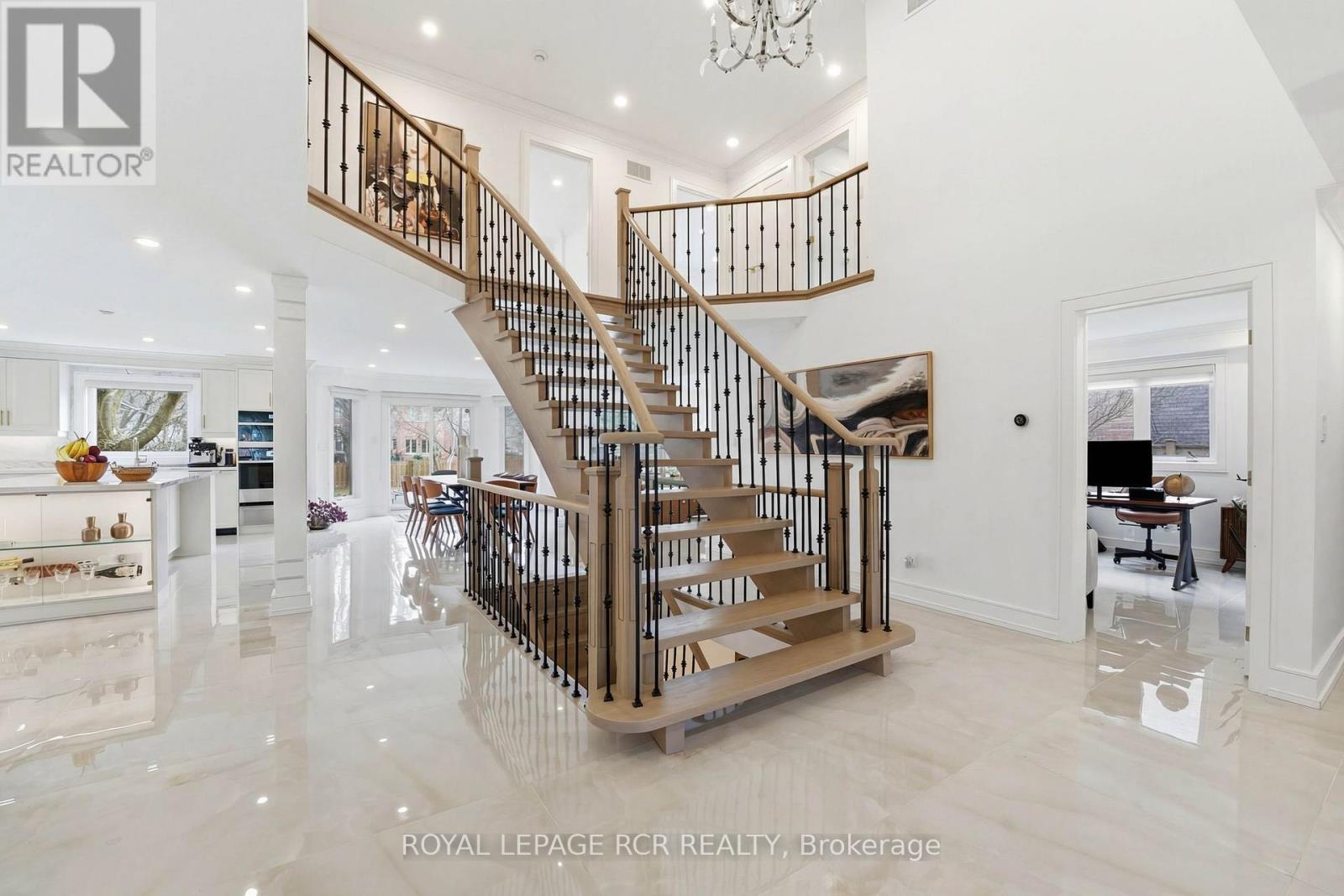 Welcome to 369 Kennedy Street West, Aurora. Completely reimagined in 2025 with a full $500,000 renovation, this home offers over 4,500 square feet of refined living space, finished with a cohesive, high-end design throughout. The main floor is thoughtfully opened to create seamless flow, anchored by large-slab tile flooring, smooth ceilings, and pot lights that enhance the home's bright, modern feel. A striking open riser Scarlett O'Hara staircase with hardwood treads and wrought iron pickets serves as a true architectural focal point. At the heart of the home, the custom kitchen is both functional and elevated, featuring marble countertops and backsplash, a large eat-in centre island, ceramic farmhouse sink, Wolf range, built-in oven and microwave, and a fully integrated cabinet-front refrigerator and dishwasher. The dining area transitions effortlessly to the backyard, where a walkout leads to a generous fully fenced yard with an in-ground pool, ideal for summer entertaining and everyday enjoyment. Upstairs, the primary suite offers a quiet, well-appointed space with hardwood floors, a bay window, two walk-in closets, and a spa-inspired 5-piece ensuite complete with clawfoot tub, glass shower, bidet, and double vanity. Three additional bedrooms provide flexibility for growing families or guests, including one with a private 3-piece ensuite and another with a semi-ensuite. For added convenience, the home features laundry on both the main floor and second floor. The fully finished basement extends the living space with intention, offering a den, full wet bar, dedicated gym area, additional bedroom, and a 3-piece bathroom. A rare offering that combines scale, craftsmanship, and thoughtful design in one of Aurora's most coveted and established neighbourhoods. (id:64974)