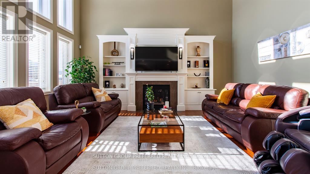 Ground to ceiling big windows give the beautiful sunlight to brighten your day . you will also appreciate the warmth and charm of hardwood flooring on the main level upper level hallway has hardwood and elegant overlook to the family room below. Upper level offers an expansive primary bedroom with tray ceiling and 5-piece spa ensuite, walk-in closet, rest of the bedrooms are all good size make a great living space for the family Finished basement includes a large recreation/family area and a huge gym space, perfect for entertainment and wellness. A beautifully designed, luxury home with exceptional layout and premium model-home details throughout. Total sq. Ft 3937of living finish space (id:64974)