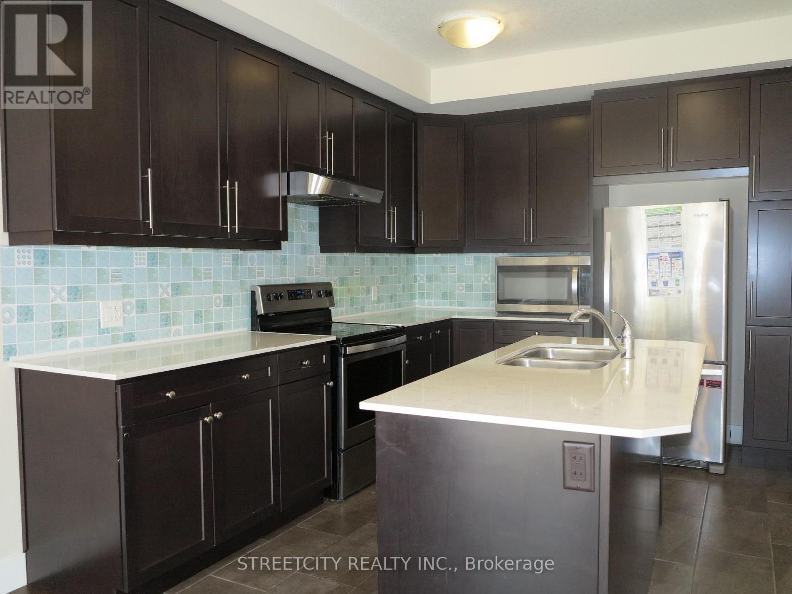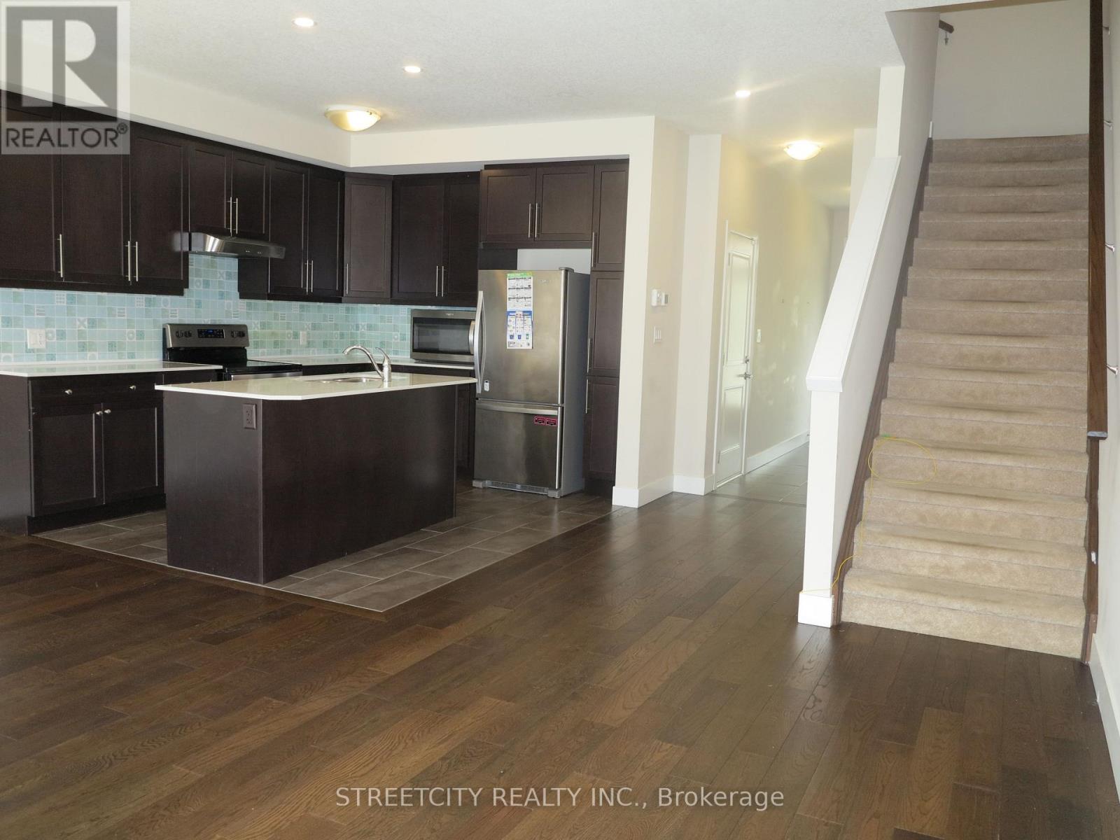 Introducing the luxury Ironstone Homes LUNA Model townhouse with 2024 sqft of finished space. This2-story home features a south-facing backyard. The main level offers open-concept living room, kitchen and dining room with upgrades like quartz countertops, wood flooring, ceramic tiles in wet areas and extra pot lights. The second level includes a spacious primary bedroom with an ensuite, two additional bedrooms sharing a bathroom and a laundry room. The fully finished basement features a large recreation room and a 4-piece bathroom. Enjoy the backyard deck for BBQs and ample visitor parking. Only steps to shopping center, banks, parks and bus stops. Short driving distance to Western University, university hospital and Masonville Mall. The photos were taken before the tenant moved in. (id:64974)
