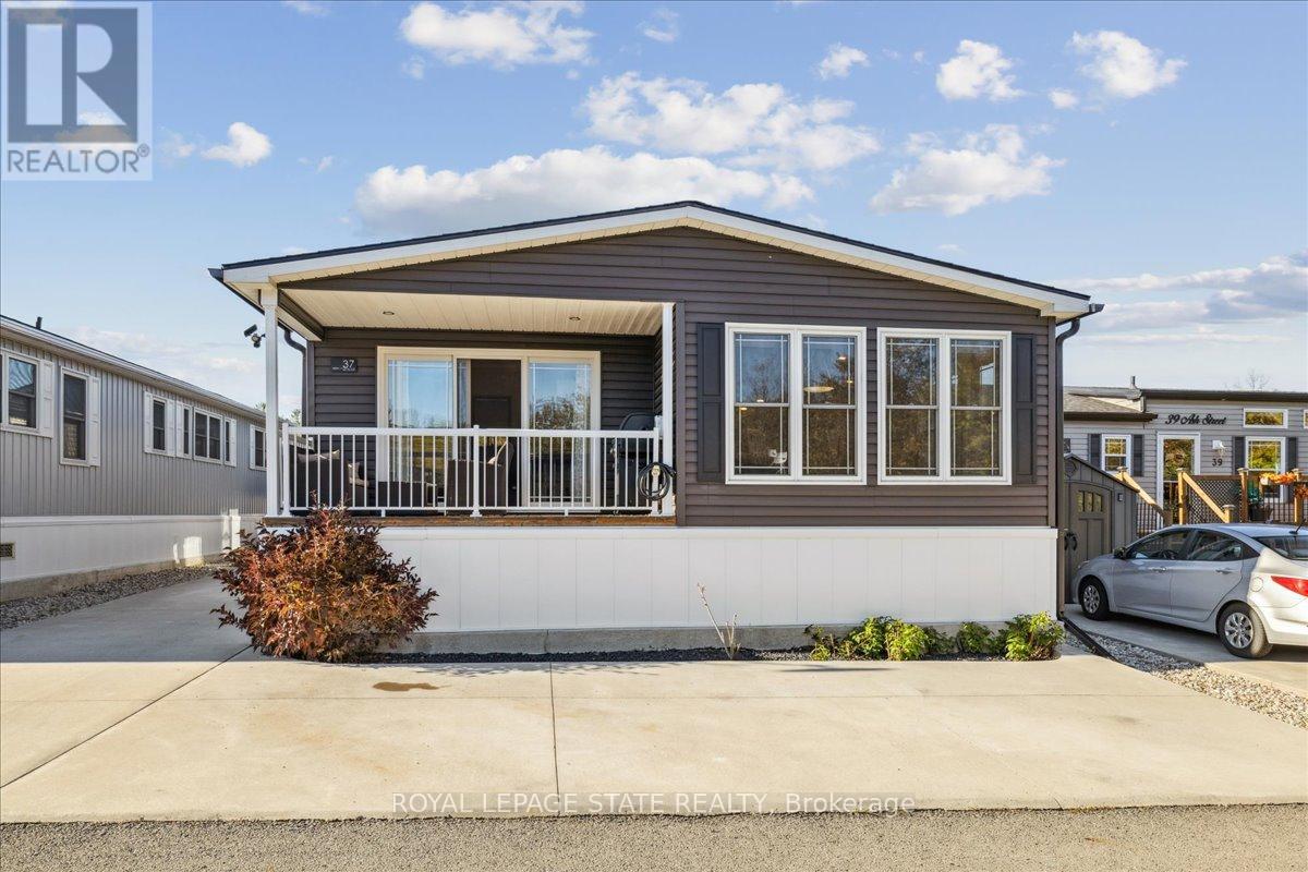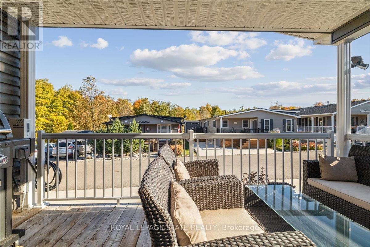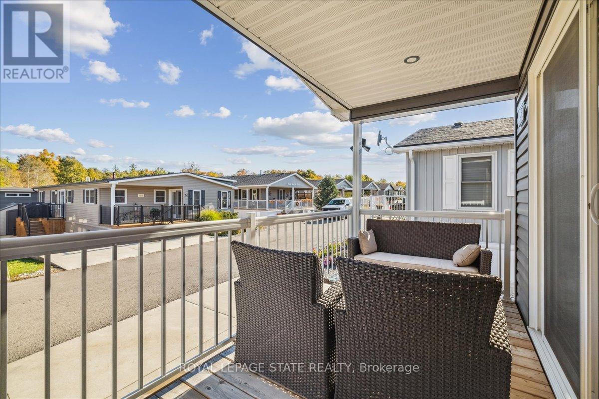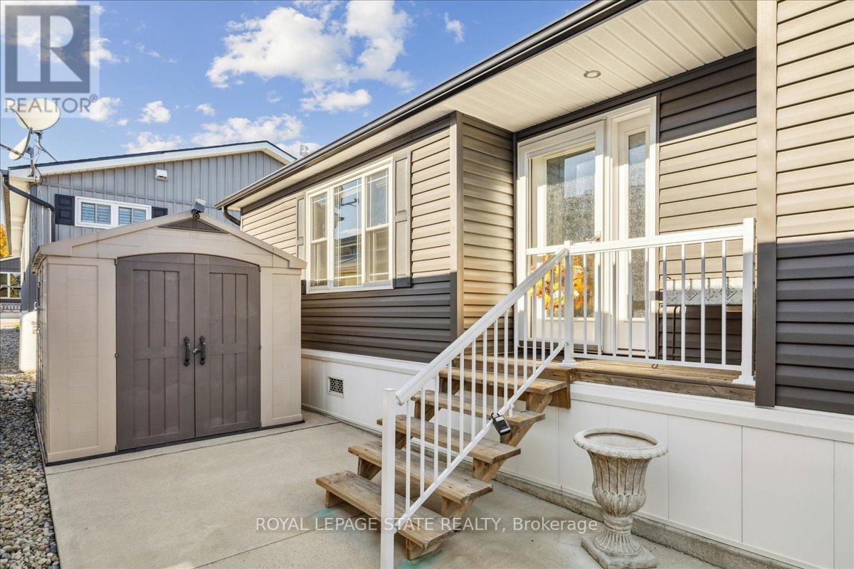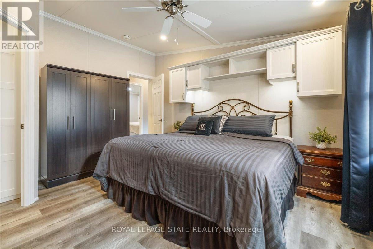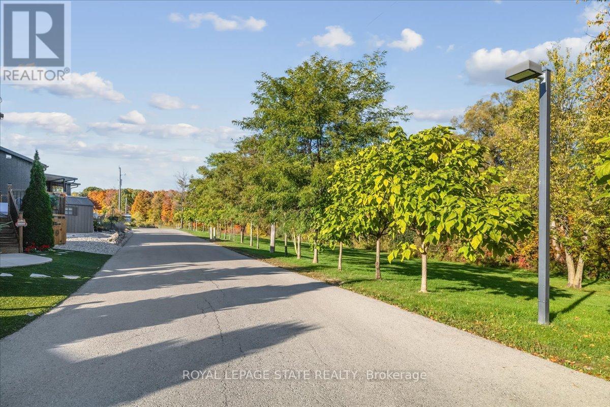 Welcome to this exceptional modular home, perfectly situated on leased land within the exclusive gated community of Lost Forest in north Burlington. Offering year-round comfort and a resort-like lifestyle, residents enjoy interior luxury and fantastic site amenities, including a seasonal pool. Step into the charming foyer and into an open-concept, single-level design, featuring soaring ceilings, and offering one of the largest spaces at 1315 Sq ft. The great room is bright and spacious with triple doors leading out to a cozy covered porch. The sunshine dinette features corner windows with eight large panels of glass. Some many things to appreciate including an upgraded kitchen with crown molding and large island, luxury vinyl floors front back, built-in wall cabinets in the great room, and bedrooms, offering tons of storage, in suite laundry and parking for three cars on the concrete driveway. Come and enjoy everything this worry-free, unique lifestyle has to offer! (id:64974)