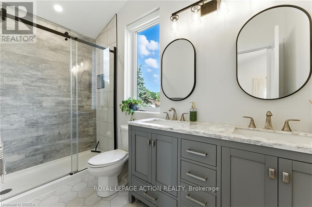 SHOWSTOPPING TWO-STOREY IN DESIRABLE HENDERSON! Welcome to this stunning 4-bedroom, 2.5-bathroom home offering over 1,728 sq. ft. of living space nestled in one of Brantford's most sought-after neighbourhoods. With exceptional curb appeal and a spacious interior this home is ideal for families and entertainers alike! Step inside to a warm and inviting main floor featuring a cozy living room and a formal dining room, perfect for hosting gatherings. The modern, open-concept kitchen is designed to impress with stainless steel appliances. A 2-piece powder room and a convenient laundry room with garage access complete the main floor. Upstairs, retreat to your spacious primary bedroom with vaulted ceilings, a private balcony, large walk-in closet, and a luxurious 4-piece ensuite. Three additional generous sized bedrooms and a 4-piece main bathroom provide plenty of room for family or guests. The finished basement with a large rec room, perfect for movie nights or games. Plus an additional office space and plenty of storage in the furnace room. Step outside to enjoy the expansive lot, ideal for summer evenings, gardening, or entertaining in your private backyard. An attached 1.5 car garage adds everyday convenience with ample parking. Located just minutes from schools, parks, trails, and amenities, this exceptional home truly offers it all. (id:64974)
