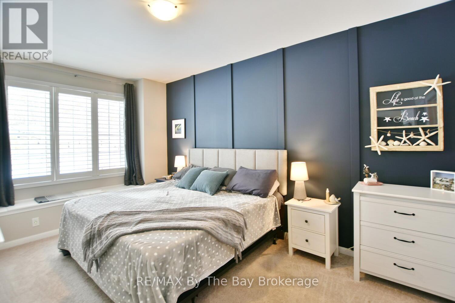 Enjoy private, peaceful living in the sought-after neighbourhood known as New England Village at the east end of Wasaga Beach. With its charming architecture and tucked away with no rear neighbours this spacious and beautifully maintained townhome backs onto a quiet walking trail with a treed setting and provides a sense of privacy and calm. The backyard is a true retreat, featuring mature trees, stunning perennial gardens, armored stone landscaping, stamped concrete walkways (2022), and inviting patio and deck spaces perfect for relaxing or entertaining. This bright and inviting townhome offers private parking with visitor parking close by, a single -car attached garage with inside entry and a true sense of community. As you enter the 1,700 sf living space plus fully finished lower level you will enjoy the thoughtful touches including a custom fireplace feature wall in the living room, high vaulted ceilings, main floor powder room, adjacent kitchen with stainless steel appliances and dining area with direct backyard access all blending comfort with elevated style. A spacious main floor primary suite offers comfort and privacy which includes a large walk in closet and 5pc bath. Upstairs a cozy loft offers lots of opportunity for office space or sitting area with the addition of two guest bedrooms and 4pc bath. Fully finished lower area provides more entertaining space with two media rooms, 4th bedroom and bathroom along with laundry facilities. This great family or lifestyle retreat is ideally located close to the new community arena and library, new high school with theatre, shopping and beaches meanwhile quick access to Barrie. Maintenance fees also provide worry-free living, covering lawn care, fall cleanup, common repairs, and exterior upkeep. This warm and welcoming year round home offers the perfect blend of space, style and thoughtfully designed for easy living. (id:64974)
