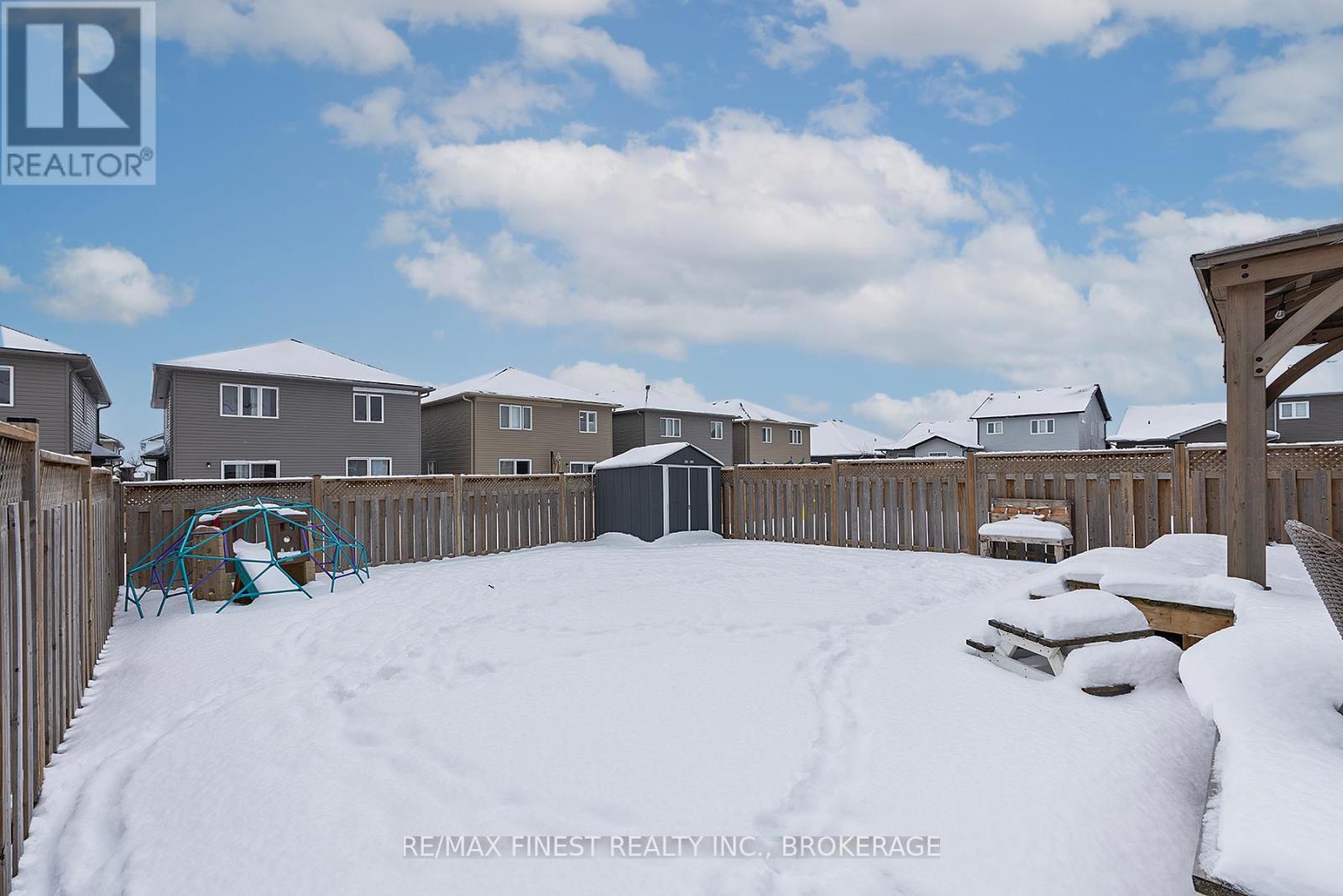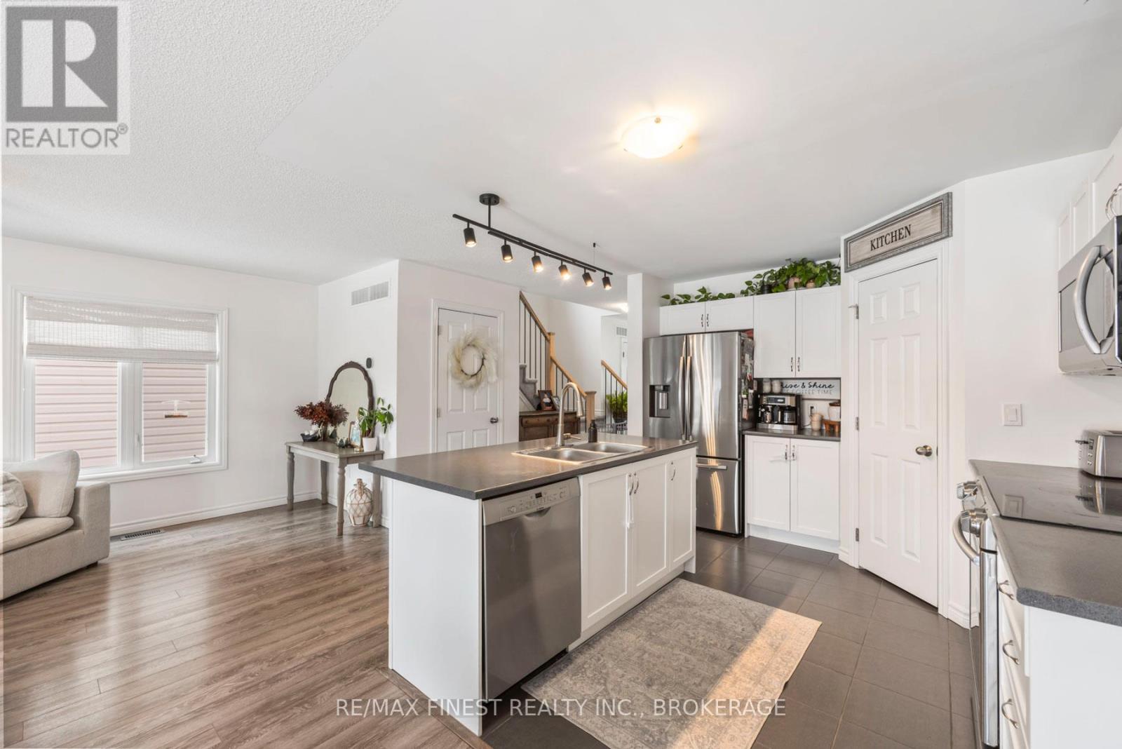 Welcome to 37 Brennan Crescent, a beautifully maintained home built in 2020, offering 3 spacious bedrooms and 2.5 bathrooms. The main level features a large, welcoming foyer with a convenient 2pc bathroom, leading into an open-concept kitchen with a generous pantry and an island with breakfast bar, all overlooking the bright living and dining areas. Upstairs, you'll find three large bedrooms, two full bathrooms, and a convenient laundry area. The primary suite boasts a walk-in closet and a luxurious 5-piece ensuite with a walk-in shower, double vanity and a tiled soaker tub surround. Step outside to enjoy a fully fenced backyard complete with a deck and gazebo, perfect for entertaining or relaxing. Located just minutes from Highway 401 and the amenities of Odessa, this move-in-ready home is waiting for you! (id:64974)