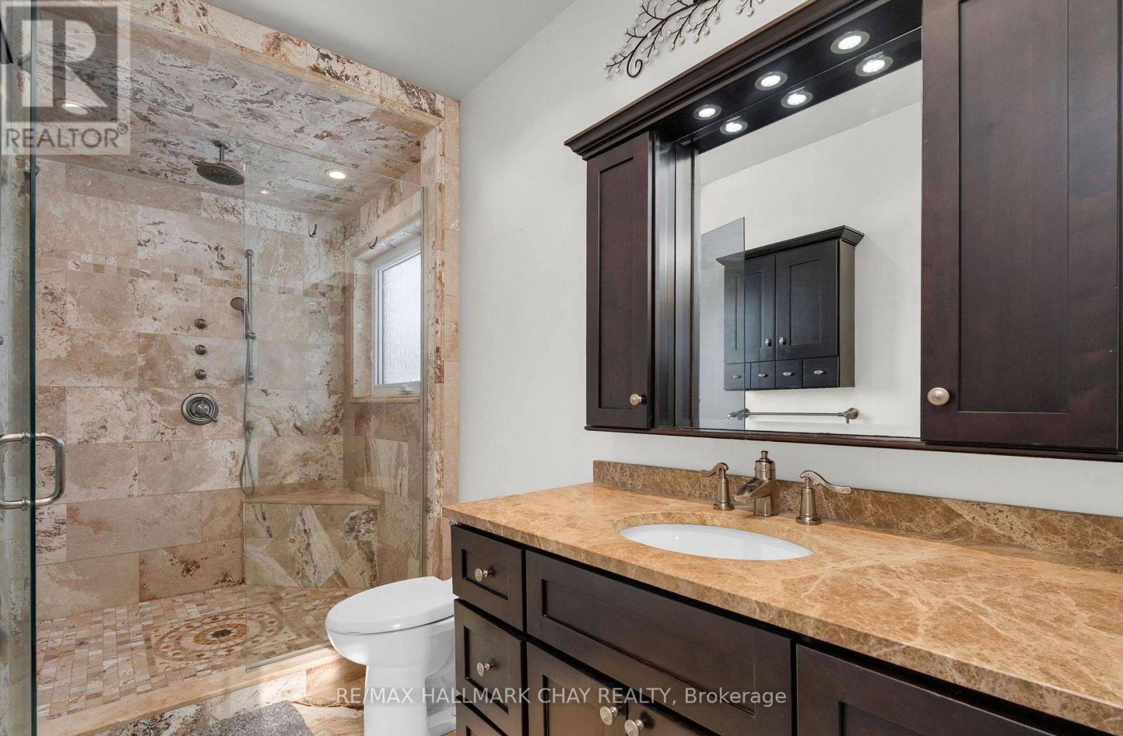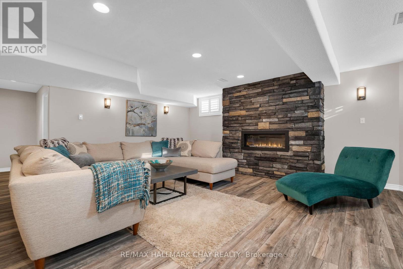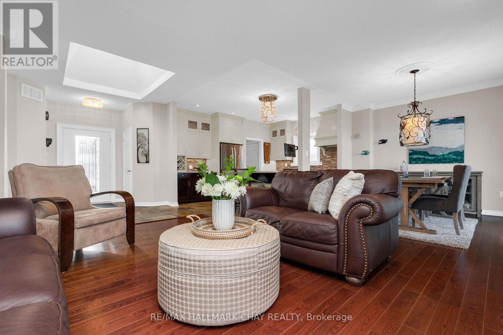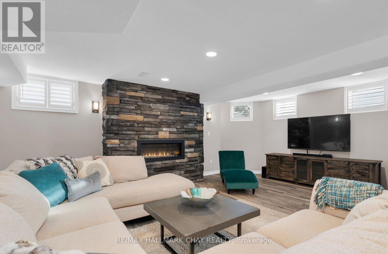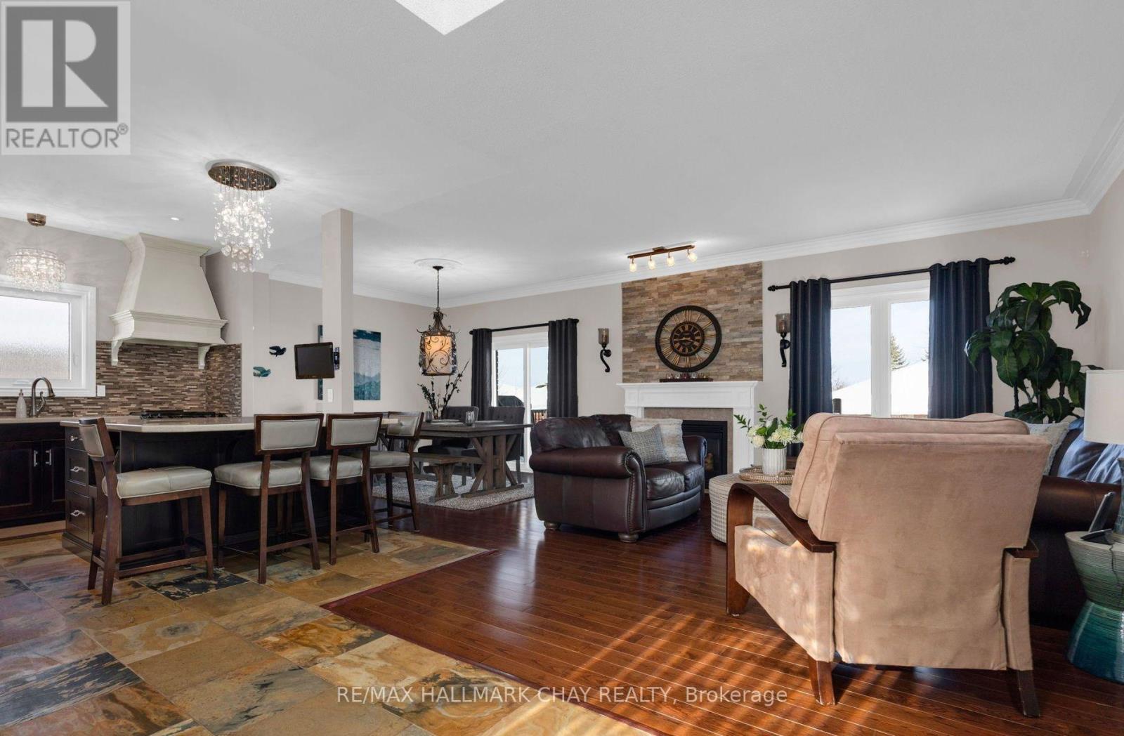 Welcome to 37 Brookfield Crescent - a one of kind customized all brick detached bungalow in Barrie's sought-after family-centric Kingswood neighbourhood. This ~2,700 sq.ft. immaculately maintained open concept home has been updated with tasteful, modern design elements - professionally finished top to bottom for maximum functional living space. From the moment you enter this home, along the custom stonework pathway to the front door entrance with glass insert detail, you are welcomed by the natural light flowing from the custom, oversized skylight in the foyer. The open floor plan of the main level is ideal for spending valued time with family, and perfect for hosting and entertaining. Spectacular custom kitchen with oversized granite island for prepping/serving. Formal dining room where memories are made around the table at festive meals. Seamless flow takes you into the living room with feature wall gas-burning fireplace, 9' ceilings, crown moulding - with walk out to the raised back deck and lower patio seating areas in the fully fenced rear yard. Private living space of this home includes primary suite with w/i closet, exceptional ensuite with glass-walled shower. Main 4pc bath, second bedroom (nursery, home office, study zone, etc) complete this private living zone. Full, finished lower level (~1300 sq.ft.) includes a multi-purpose rec room with feature wall fireplace, an additional 2 bedrooms, another full bath. Double garage with single garage door, as well as parking for four vehicles in the private paved driveway. Original owners customized the builder's plan to create this gem, situated in a quiet neighbourhood that offers a great community vibe. Walking distance to Algonquin Ridge Elementary School and Lake Simcoe's waterfront. Incredible hiking trails, plenty of dedicated green space to enjoy in all seasons. Close to all key amenities - shopping, services - and commuter routes - public transit, GO Train/Bus service, highways. (id:64974)