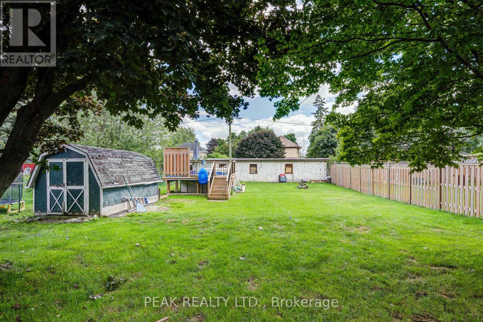 Welcome to this exceptional family home set in a highly desirable location! This charming 1.5-storey residence offers 3 bedrooms, 1.5 bathrooms, and nearly 2,000 sq. ft. of comfortable living space designed for everyday family living. Ideally situated within walking distance to downtown Tavistock, local schools, parks, and community amenities, this home combines small-town charm with convenient access to Kitchener-Waterloo and Stratford for an easy commute. Step inside to a spacious main floor featuring a warm and inviting living room that flows seamlessly into a bright, recently renovated kitchen with plenty of space for cooking and gathering. From here, step out onto the deck overlooking your private, deep, fully fenced backyard-complete with mature trees and an above-ground pool-perfect for summer entertaining and family fun. The main level also includes a beautifully renovated bathroom highlighted by a stylish walk-in shower. One of the home's most exciting and versatile features is the converted garage, now an expansive additional living area. Currently enjoyed as a recreation room, it also offers a walk-out to the backyard and could easily serve as a granny suite, home-based business space (such as a salon), or private home office. Upstairs, you'll find generously sized bedrooms, including an impressive primary bedroom with modern laminate flooring. Recent updates include fresh paint throughout the bedrooms, living room, and kitchen, creating a bright and move-in-ready feel. mechanicals are in excellent condition, including a furnace installed in 2015/2016 paired with a heat pump for efficient comfort year-round. This home offers the perfect blend of space, flexibility, and location-an outstanding opportunity for families looking to put down roots in the welcoming community of Tavistock. (id:64974)