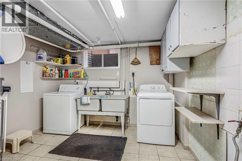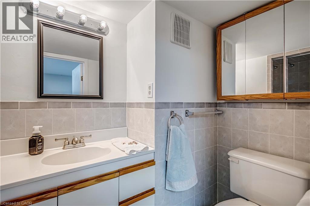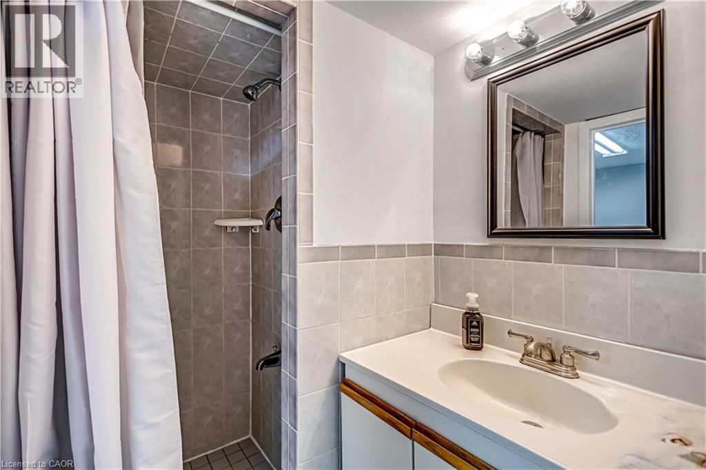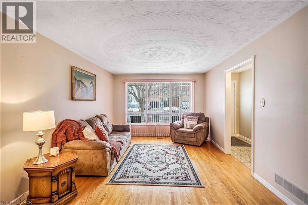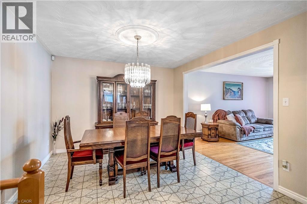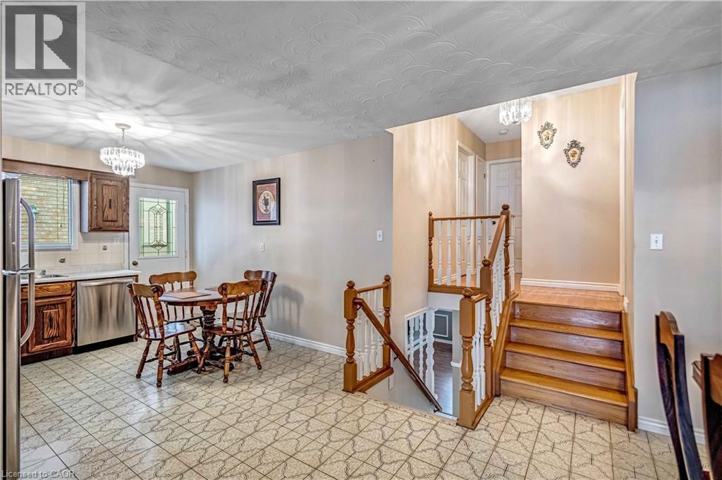 Solid all-brick 4-level backsplit with exceptional versatility, located in a sought-after neighbourhood of Stoney Creek. Flooded with natural light throughout, this well-cared-for home reflects a strong pride of ownership at every level. The upper level offers three generously sized bedrooms with spacious closets and a 4-piece bathroom, ideal for comfortable family living. The main floor features a bright, spacious eat-in kitchen, a large separate living room, and a formal dining room, complemented by original tile and hardwood flooring in excellent condition. The lower level provides outstanding flexibility with a separate entrance, second kitchenette, and a spacious family room—offering possibilities of an in-law suite or multi-generational living. The basement level adds a large recreation room and 3-piece bathroom, perfect for additional living space, a home office, or entertaining. Additional highlights include a 1-car attached garage with interior access, a double-wide concrete driveway with parking for up to four additional vehicles, and a fully fenced backyard. Conveniently located close to schools, shopping, public transit, restaurants, and everyday amenities. (id:64974)