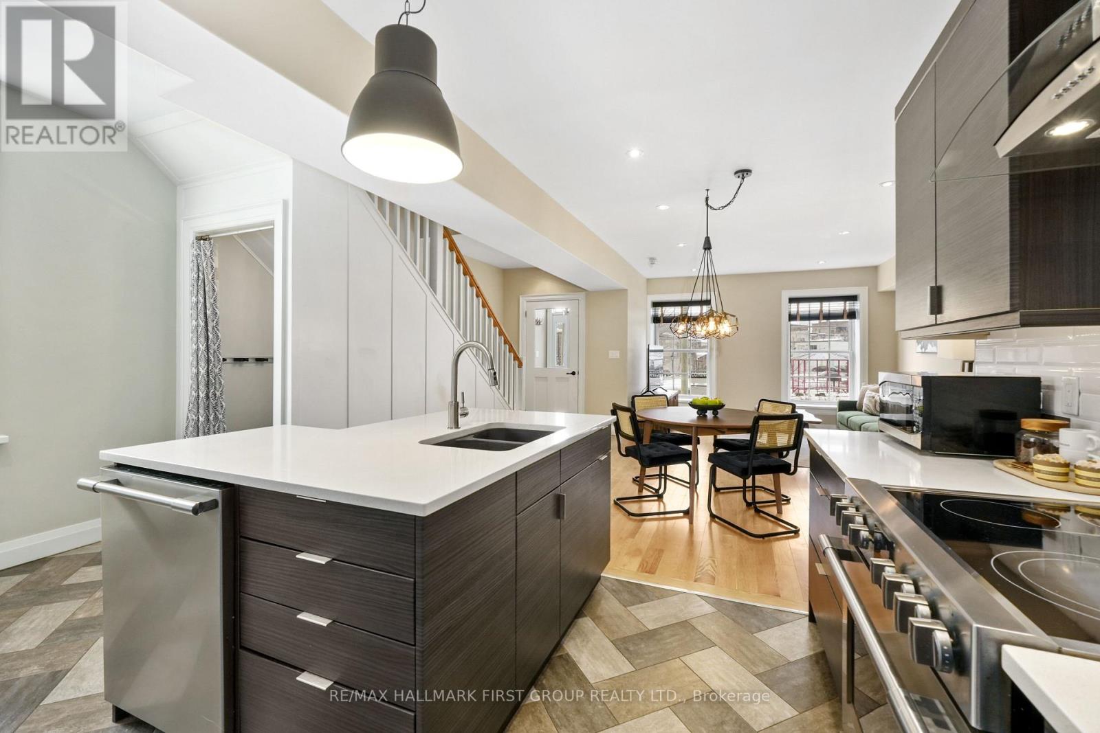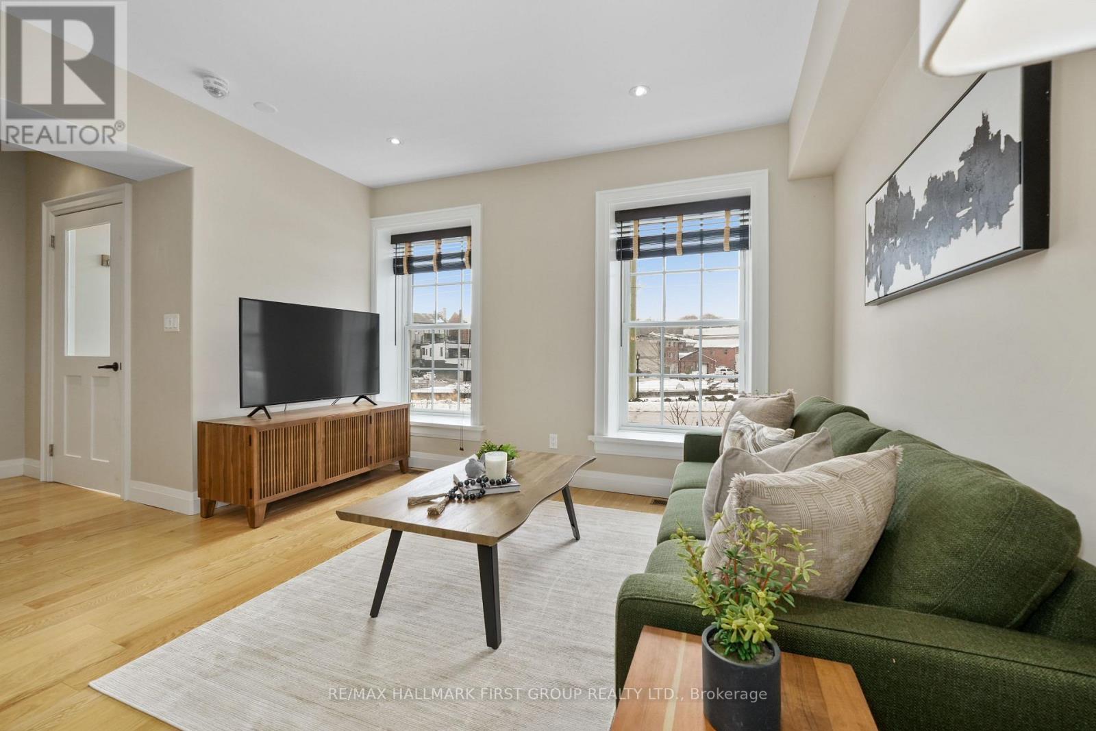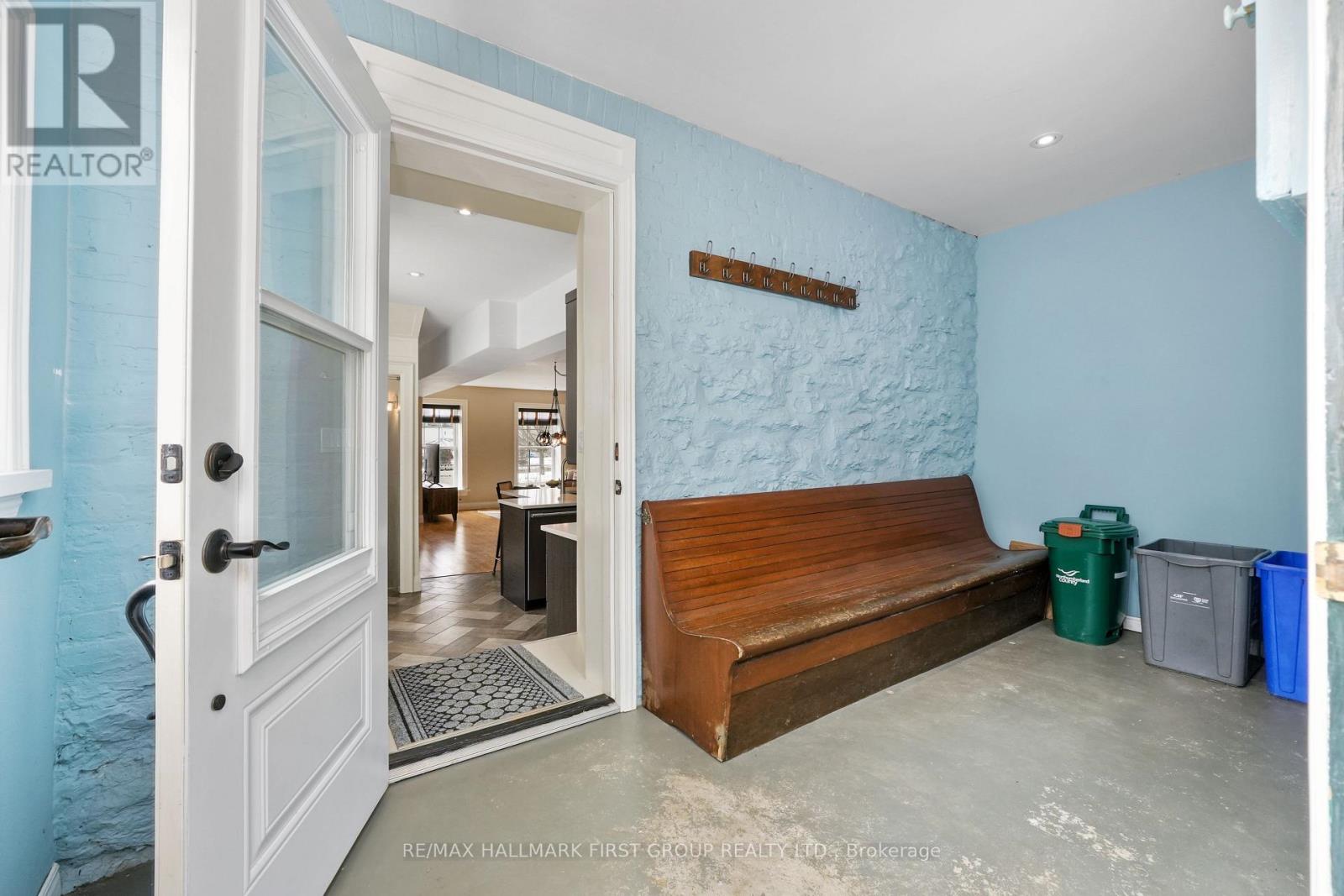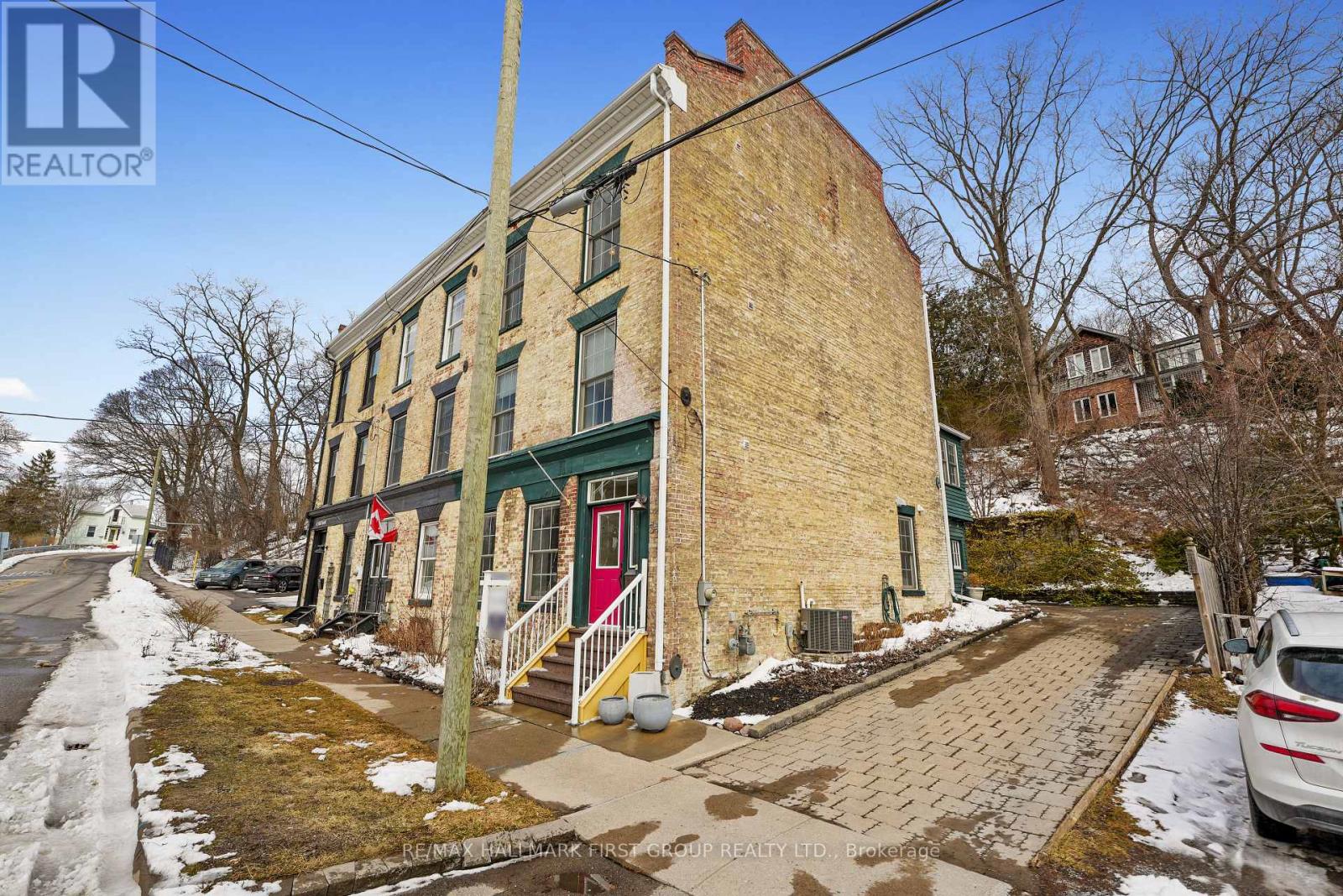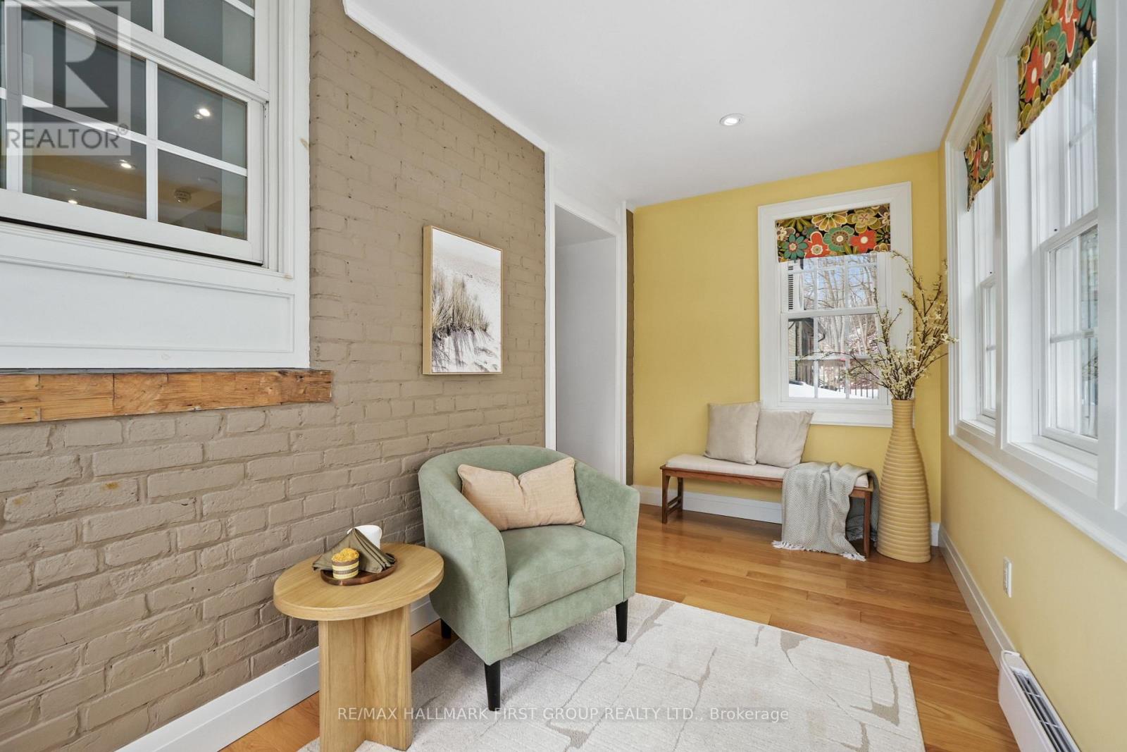 Set within a historic building in the heart of downtown Port Hope, directly across from the river, this beautifully updated home blends timeless character with thoughtful modern upgrades. The bright and open living room features a carpet-free layout that extends throughout the main level, complemented by recessed lighting and two large windows that fill the space with natural light. The dining area showcases contemporary lighting and flows seamlessly into the kitchen, creating an ideal setting for both everyday living and entertaining. Designed with style and function in mind, the kitchen offers a sleek modern aesthetic with dark cabinetry, intricate tile flooring, and an island with ample prep space and a breakfast bar. Pendant lighting, stainless steel appliances, and a hood vent complete the space, while a walkout to the mudroom provides additional storage and convenience. A powder room finishes the main level. Upstairs, the second level features two well-appointed bedrooms with generous closet space, a spacious bathroom with a glass shower enclosure, and the added convenience of second-level laundry. A charming sunroom with exposed brick offers the perfect spot for a home office or cozy reading nook. The upper level provides two additional bedrooms, each with double closets, along with a beautifully finished full bathroom. The lower level adds versatility with a dedicated gym or yoga space and ample storage. Outside, enjoy a private patio and dedicated parking, all just steps to downtown amenities and with easy access to the 401. Offering the perfect balance of historic charm and modern urban living. (id:64974)