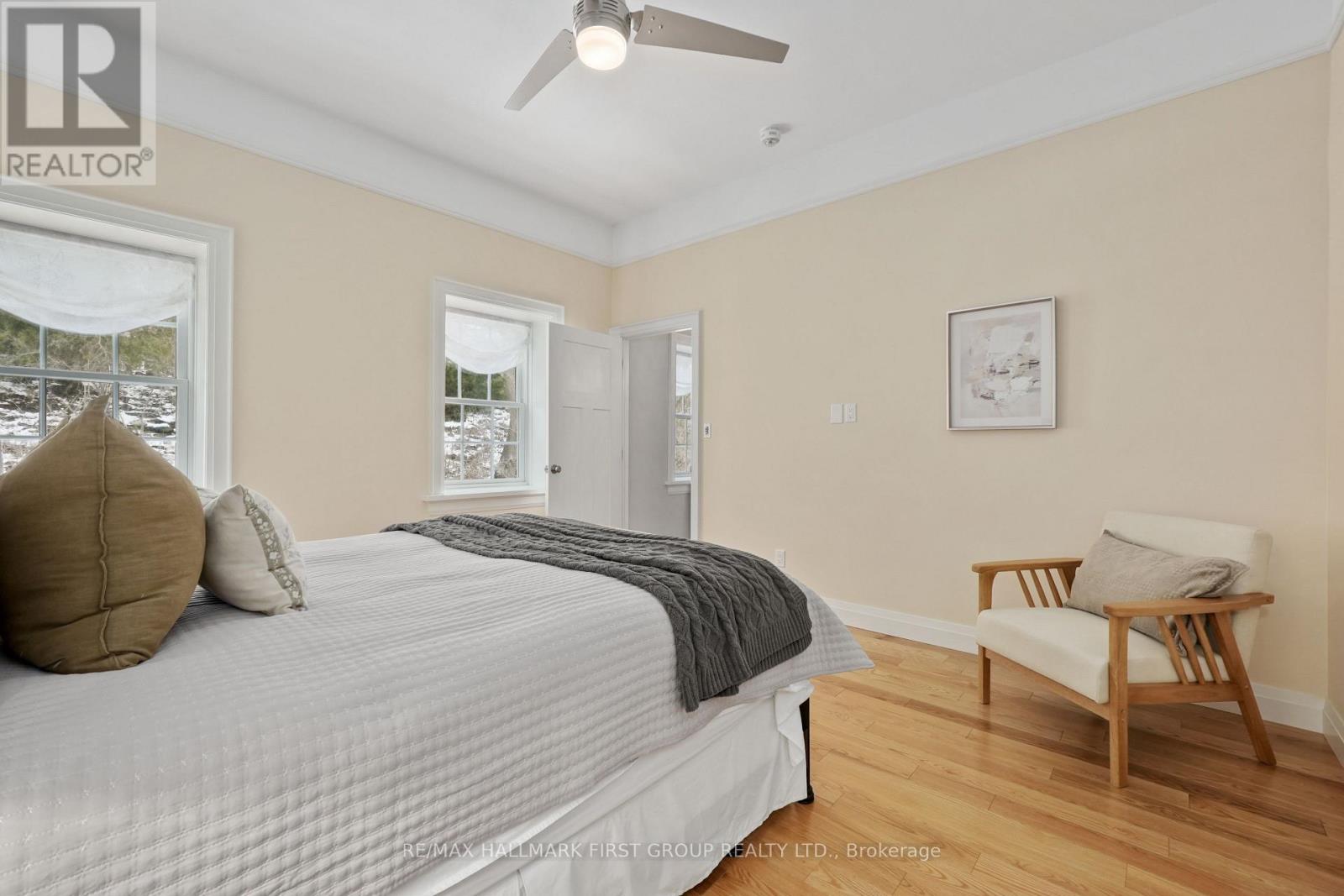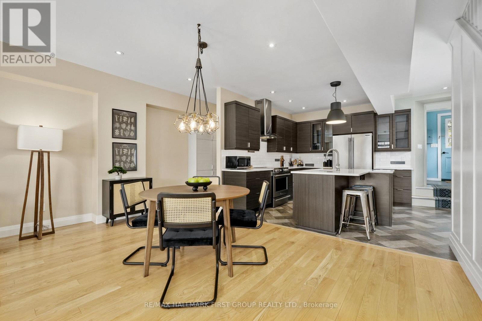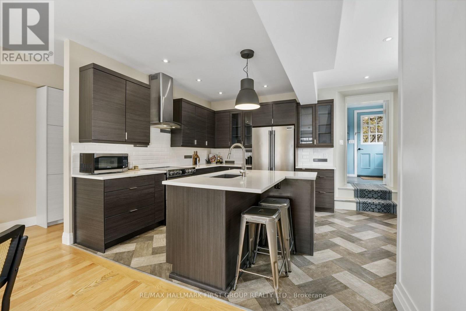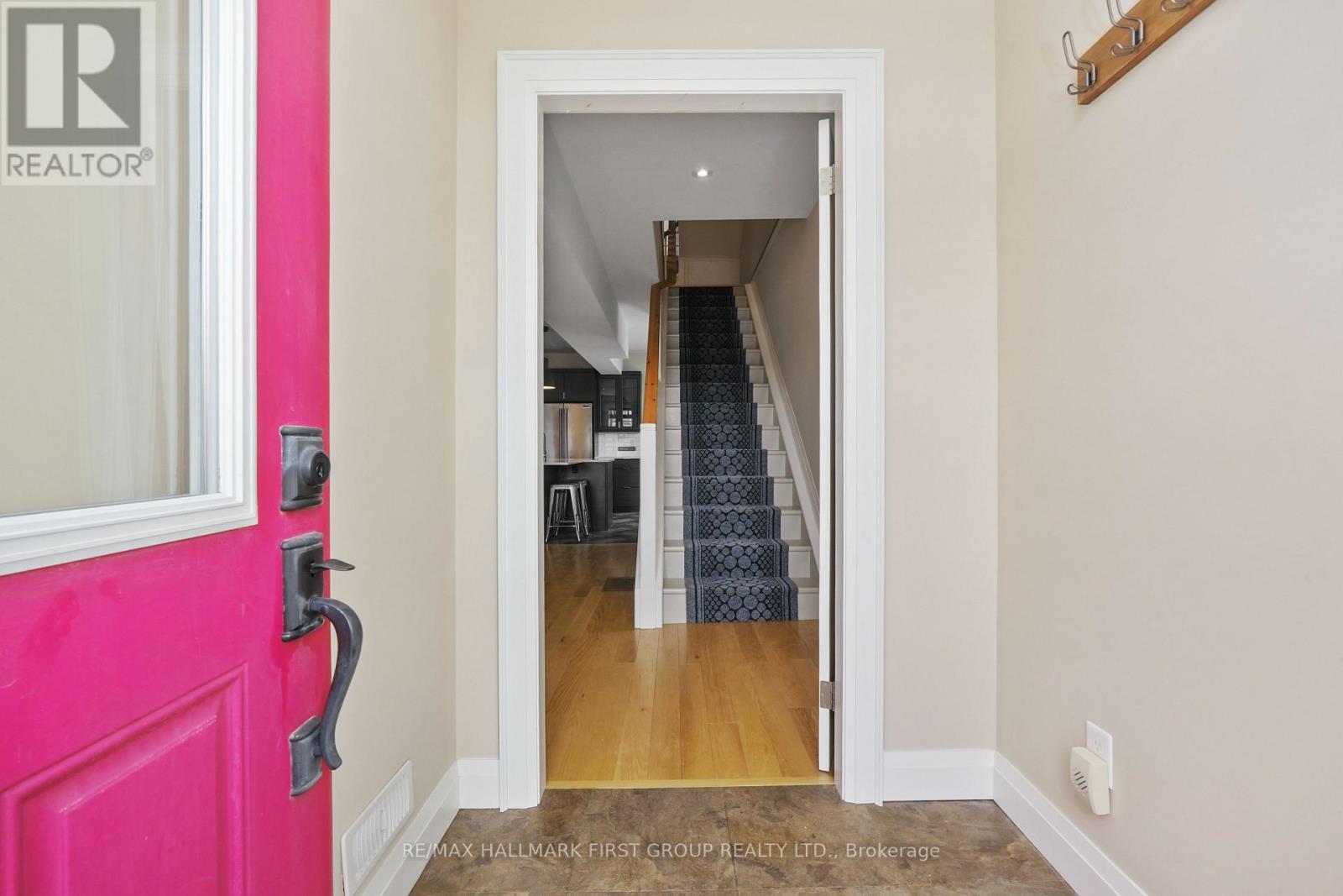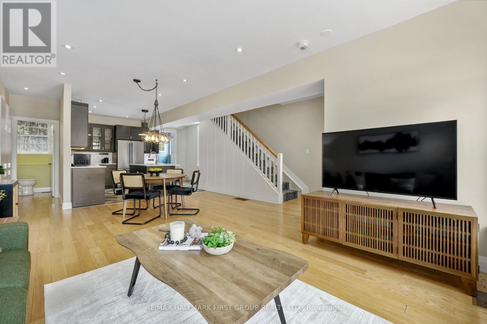 Set within a historic building in the heart of downtown Port Hope, directly across from the river, this beautifully updated home blends timeless character with thoughtful modern upgrades. The bright and open living room features a carpet-free layout that extends throughout the main level, complemented by recessed lighting and two large windows that fill the space with natural light. The dining area showcases contemporary lighting and flows seamlessly into the kitchen, creating an ideal setting for both everyday living and entertaining. Designed with style and function in mind, the kitchen offers a sleek modern aesthetic with dark cabinetry, intricate tile flooring, and an island with ample prep space and a breakfast bar. Pendant lighting, stainless steel appliances, and a hood vent complete the space, while a walkout to the mudroom provides additional storage and convenience. A powder room finishes the main level. Upstairs, the second level features two well-appointed bedrooms with generous closet space, a spacious bathroom with a glass shower enclosure, and the added convenience of second-level laundry. A charming sunroom with exposed brick offers the perfect spot for a home office or cozy reading nook. The upper level provides two additional bedrooms, each with double closets, along with a beautifully finished full bathroom. The lower level adds versatility with a dedicated gym or yoga space and ample storage. Outside, enjoy a private patio and dedicated parking, all just steps to downtown amenities and with easy access to the 401. Offering the perfect balance of historic charm and modern urban living. (id:64974)