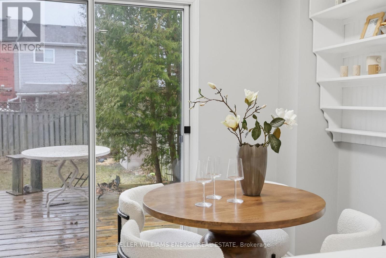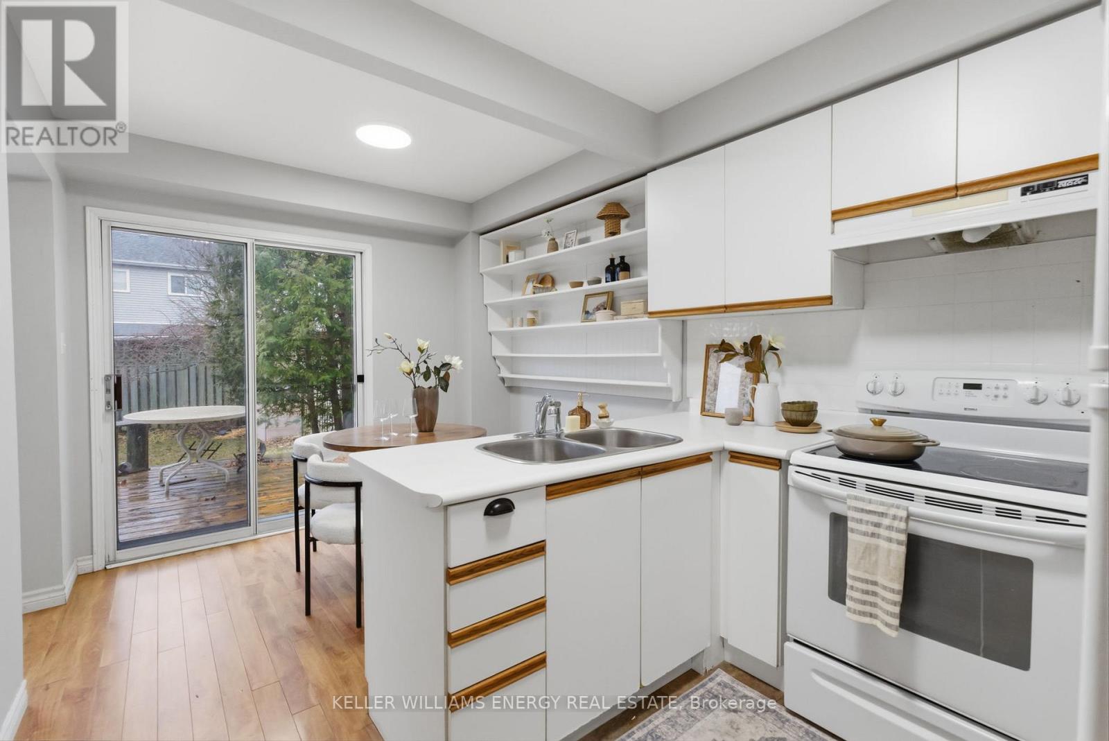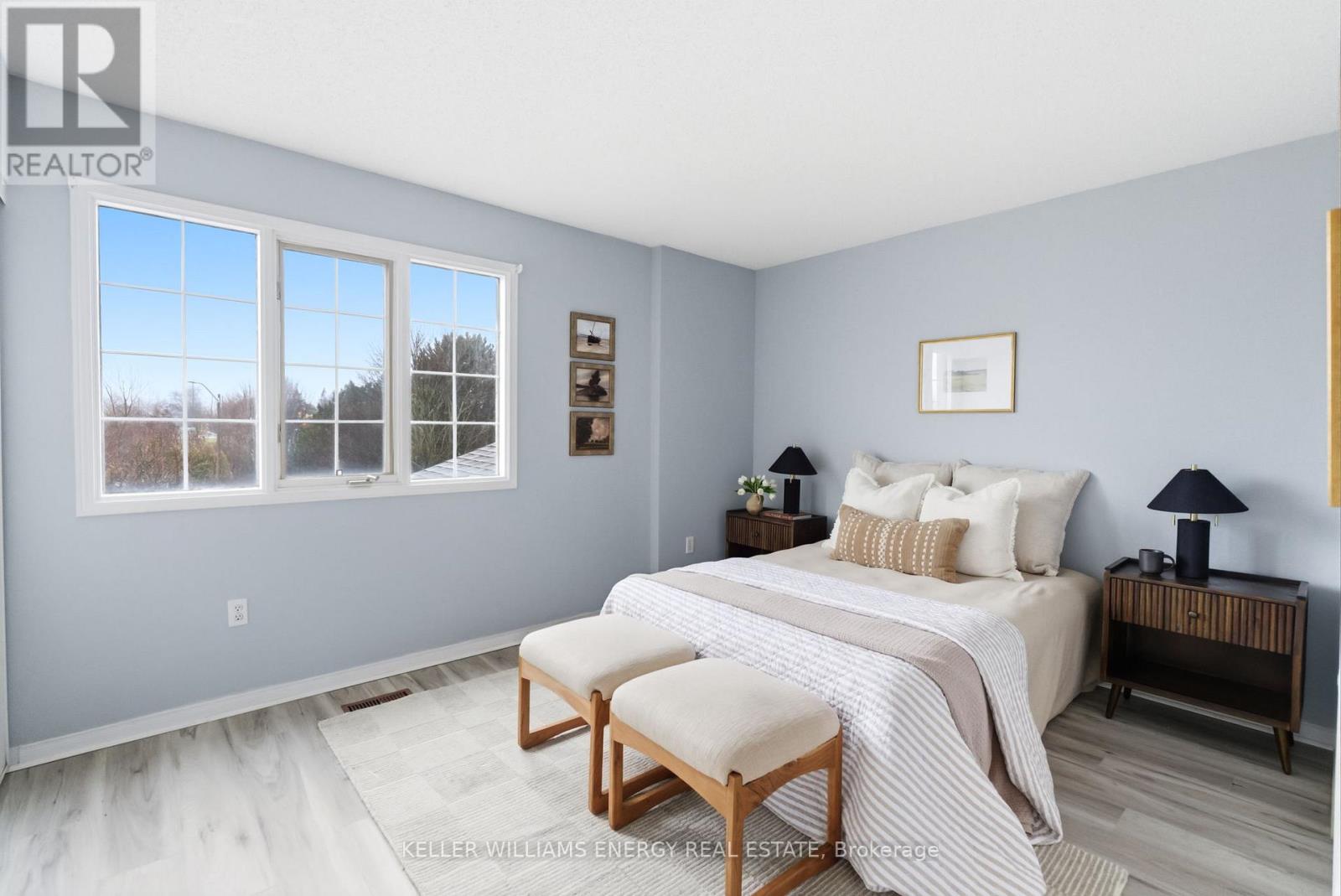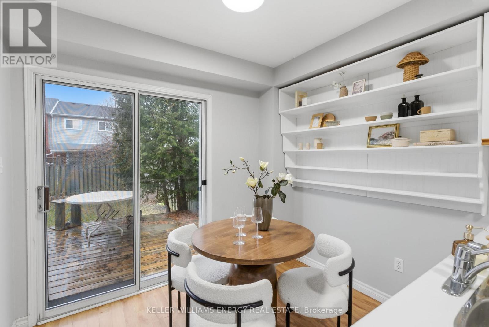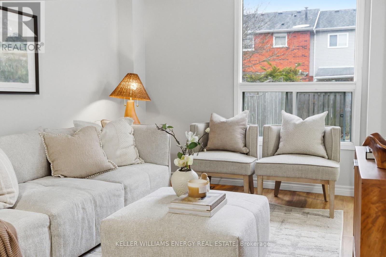 Perfectly situated at the end of a quiet court in one of Courtice's most sought-after neighbourhoods, this freehold townhome offers effortless, move-in-ready living. The bright, open-concept main floor features a combined living and dining area with a convenient powder room, newer laminate flooring, and fresh paint throughout. Large windows fill the home with natural light, creating a warm and inviting atmosphere. The sun-filled kitchen is ideal for family meals and everyday living, with walkout access to a spacious deck and a private backyard oasis, perfect for entertaining. Upstairs, you'll find three well-designed bedrooms, including a generous primary retreat with laminate flooring, a double closet, and a semi-ensuite bath. The second level also features laminate flooring in the additional two bedrooms. The partially finished basement offers added living potential along with ample storage space. Located in a prime Courtice location overlooking beautiful pond views, you're just minutes to top-rated schools, parks, the community centre, shopping, and all essential amenities. Commuters will appreciate quick access to Hwy 418, 407, 401 and nearby public transit. Updated for style and comfort, this turnkey home is a rare opportunity in a family-friendly community-perfect for first-time buyers or anyone looking for a low-maintenance lifestyle in a desirable neighbourhood. (id:64974)