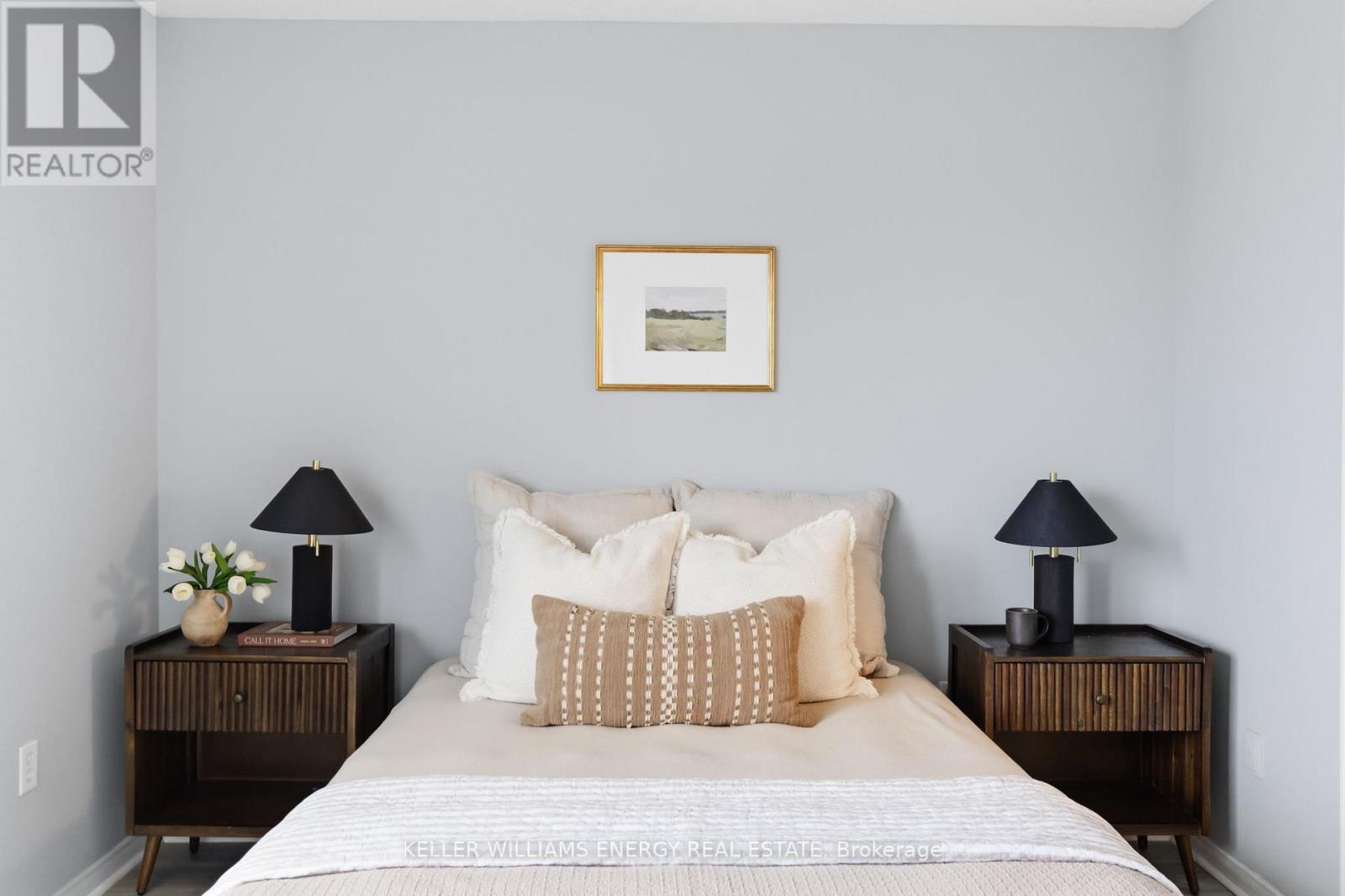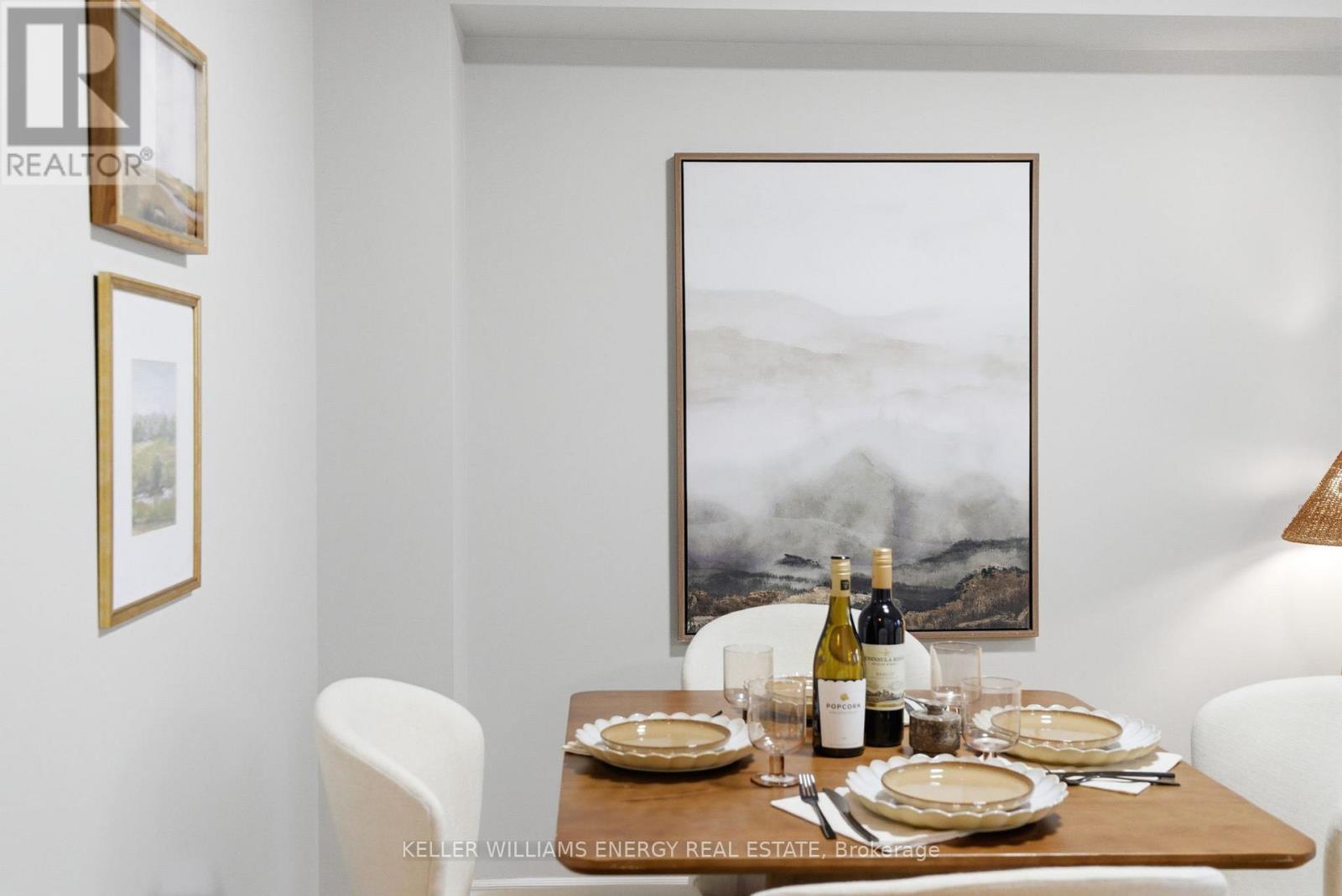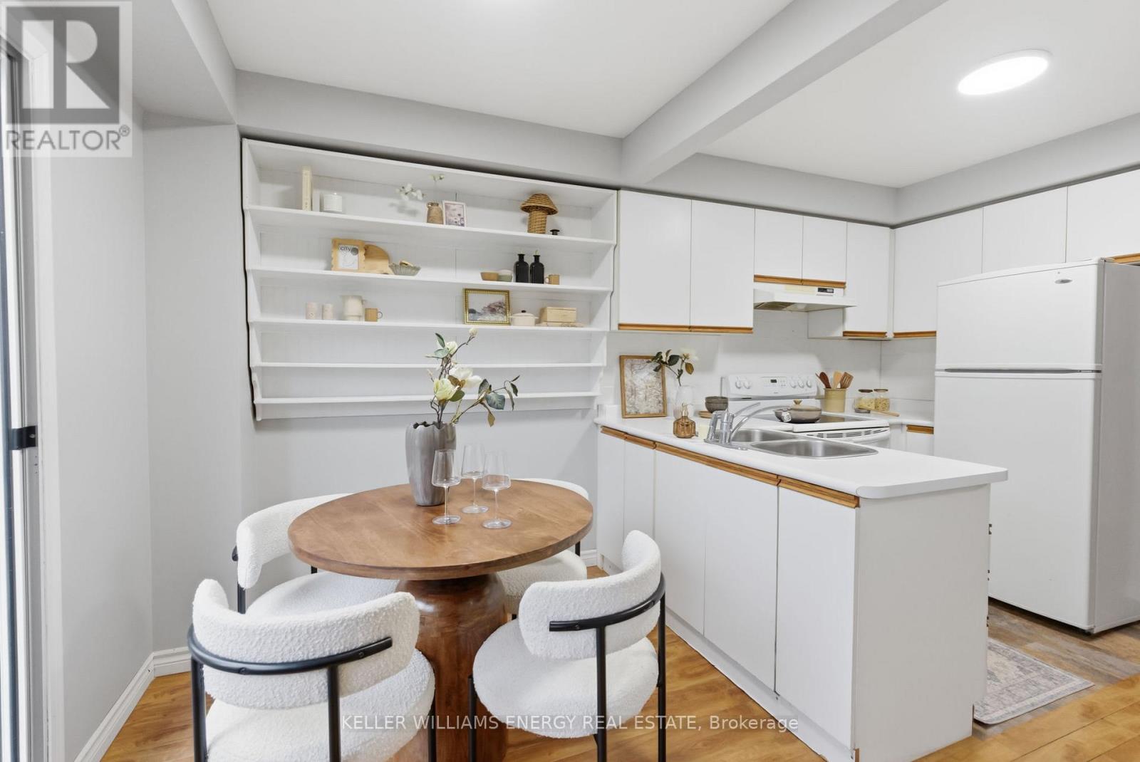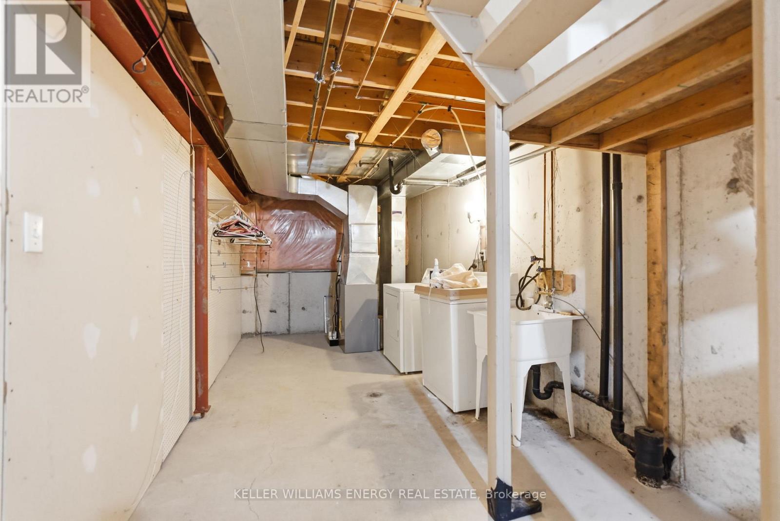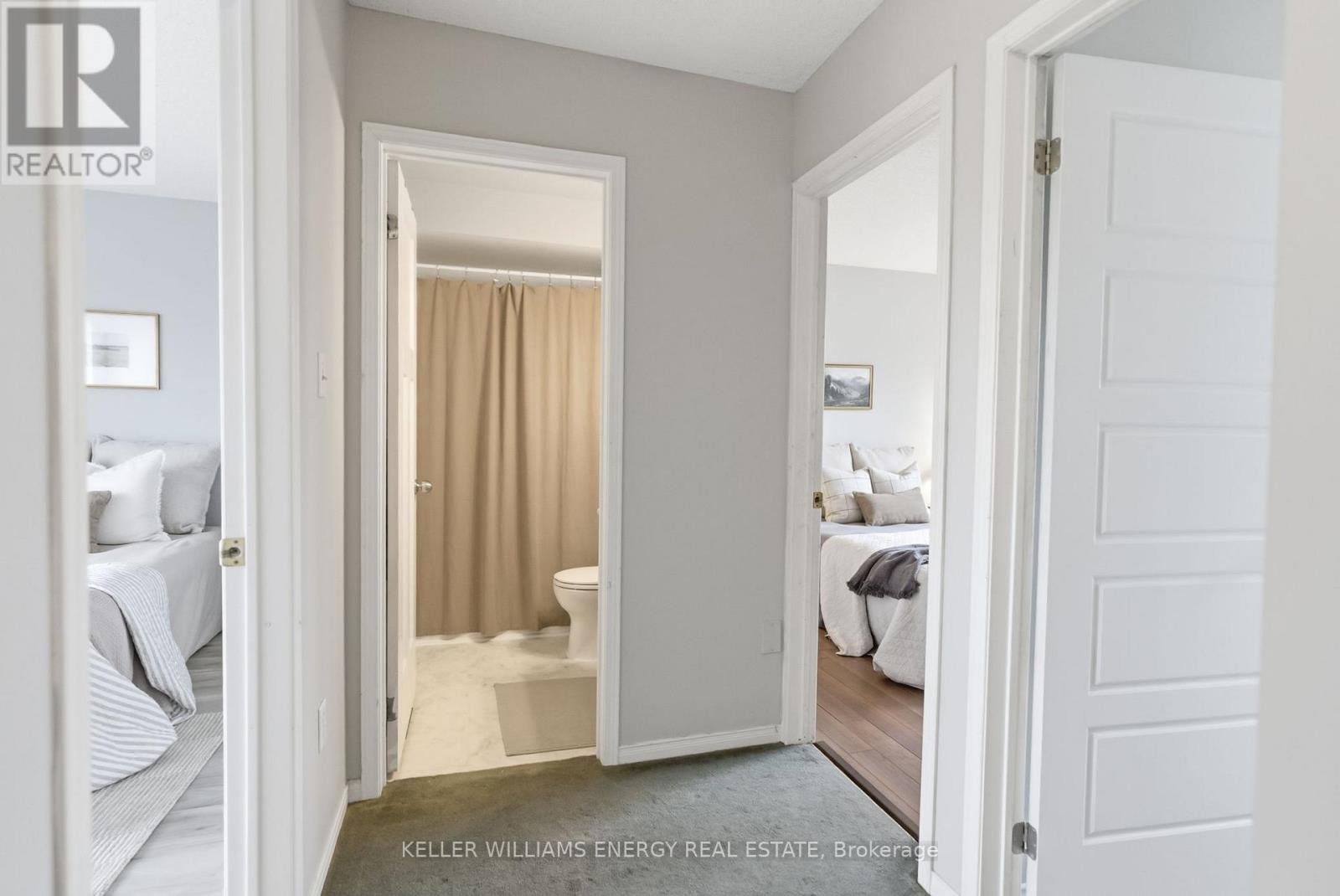 Perfectly situated at the end of a quiet court in one of Courtice's most sought-after neighbourhoods, this freehold townhome offers effortless, move-in-ready living. The bright, open-concept main floor features a combined living and dining area with a convenient powder room, newer laminate flooring, and fresh paint throughout. Large windows fill the home with natural light, creating a warm and inviting atmosphere. The sun-filled kitchen is ideal for family meals and everyday living, with walkout access to a spacious deck and a private backyard oasis, perfect for entertaining. Upstairs, you'll find three well-designed bedrooms, including a generous primary retreat with laminate flooring, a double closet, and a semi-ensuite bath. The second level also features laminate flooring in the additional two bedrooms. The partially finished basement offers added living potential along with ample storage space. Located in a prime Courtice location overlooking beautiful pond views, you're just minutes to top-rated schools, parks, the community centre, shopping, and all essential amenities. Commuters will appreciate quick access to Hwy 418, 407, 401 and nearby public transit. Updated for style and comfort, this turnkey home is a rare opportunity in a family-friendly community-perfect for first-time buyers or anyone looking for a low-maintenance lifestyle in a desirable neighbourhood. (id:64974)