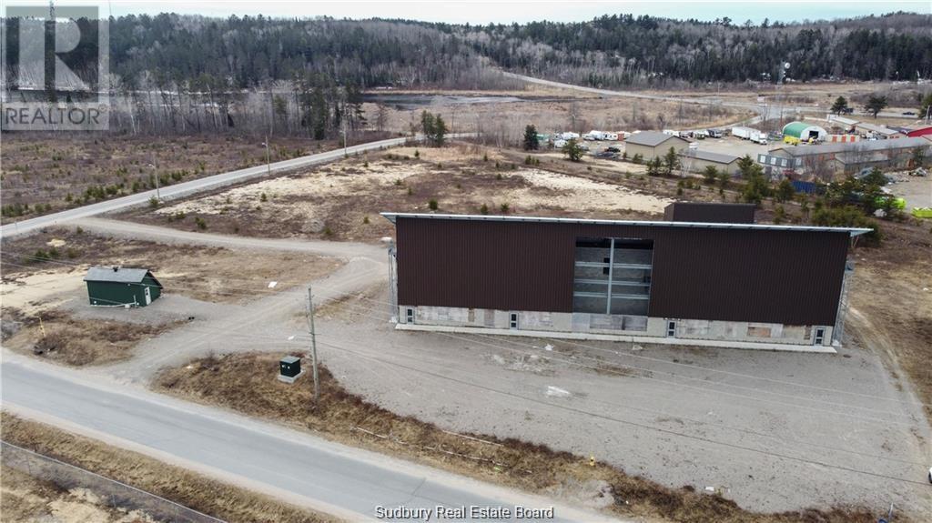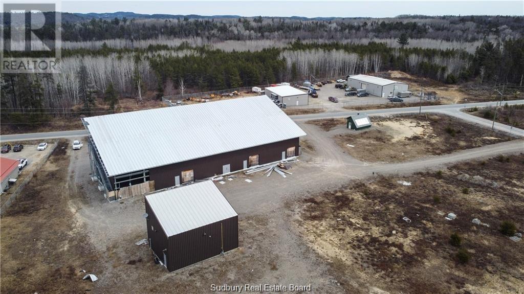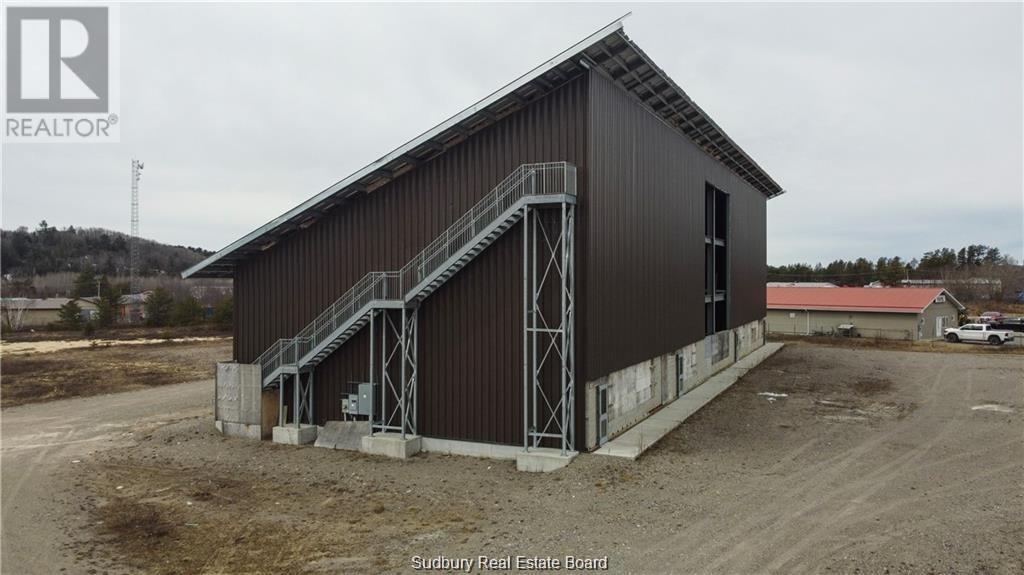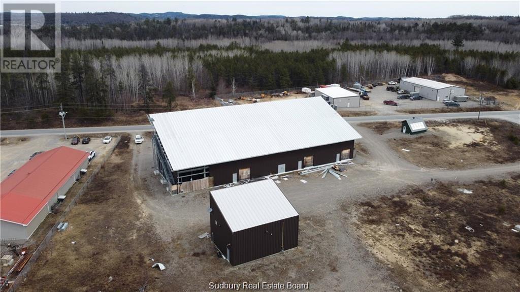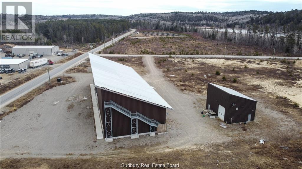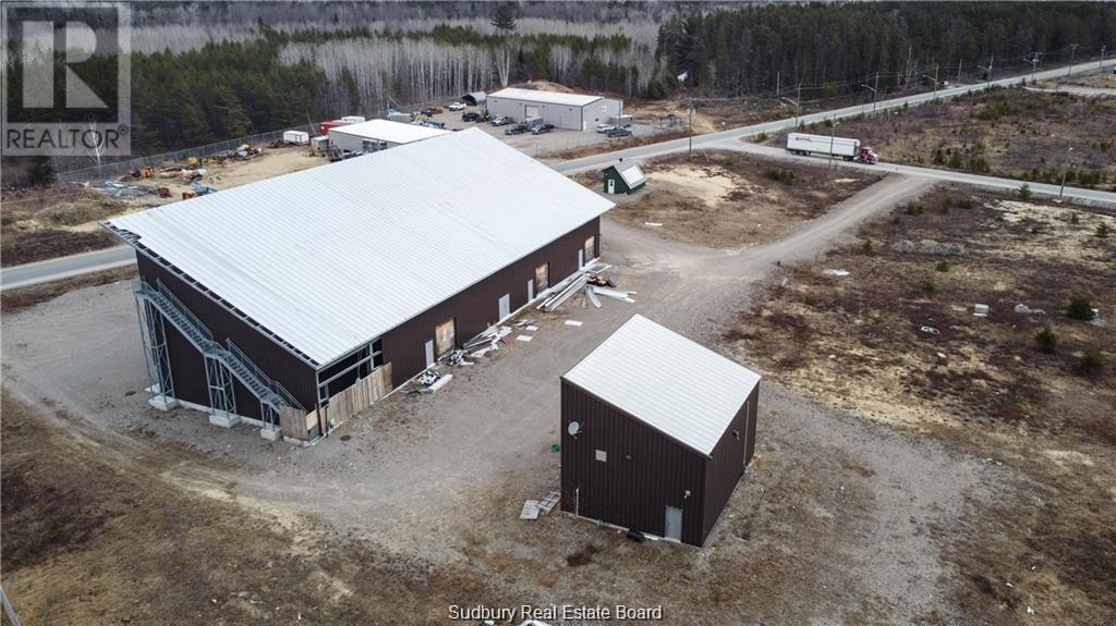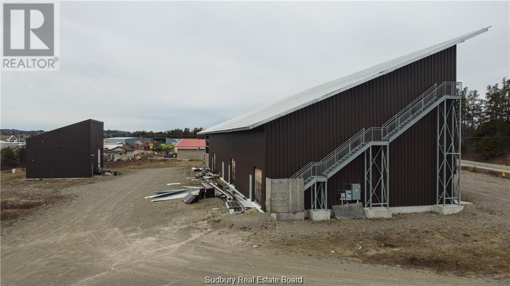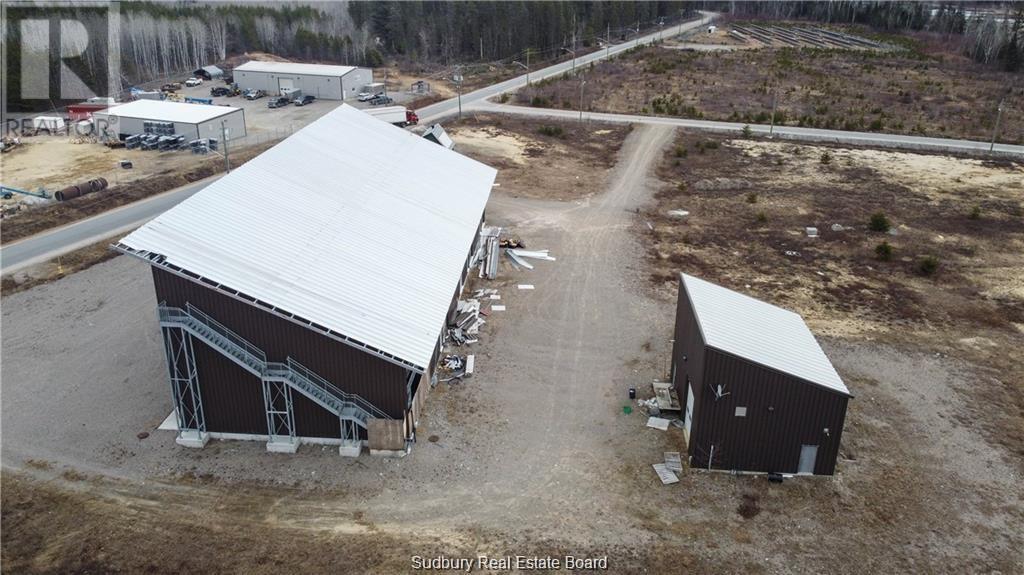 Excellent M2 - Light Industrial opportunity in Espanola. 4.56 acres of land and three buildings. The main building is a partially completed pre-engineered Varco Pruden (VP) 8500 square foot steel frame building that is designed for 3 floors to create a total of 17,806 square feet. 20 foot main floor ceilings. Outside dimensions are 53 x 162. It consists of 3 grade level overhead doors and 400 AMP, three-phase power. It has a south facing slanted roof designed for solar power panels. Second building is 1,200 square feet complete with grade level overhead door, 200 AMP, three-phase power, a washroom with shower. The third building is approximately 250 square feet with power and skylights. Rough-in plumbing is complete. Currently this project requires additional work including plumbing, lighting, drainage, concrete slab, insulation and finishing of second and third floors. (id:64974)