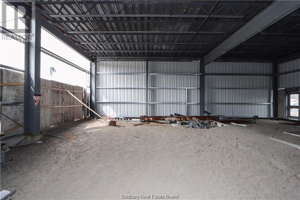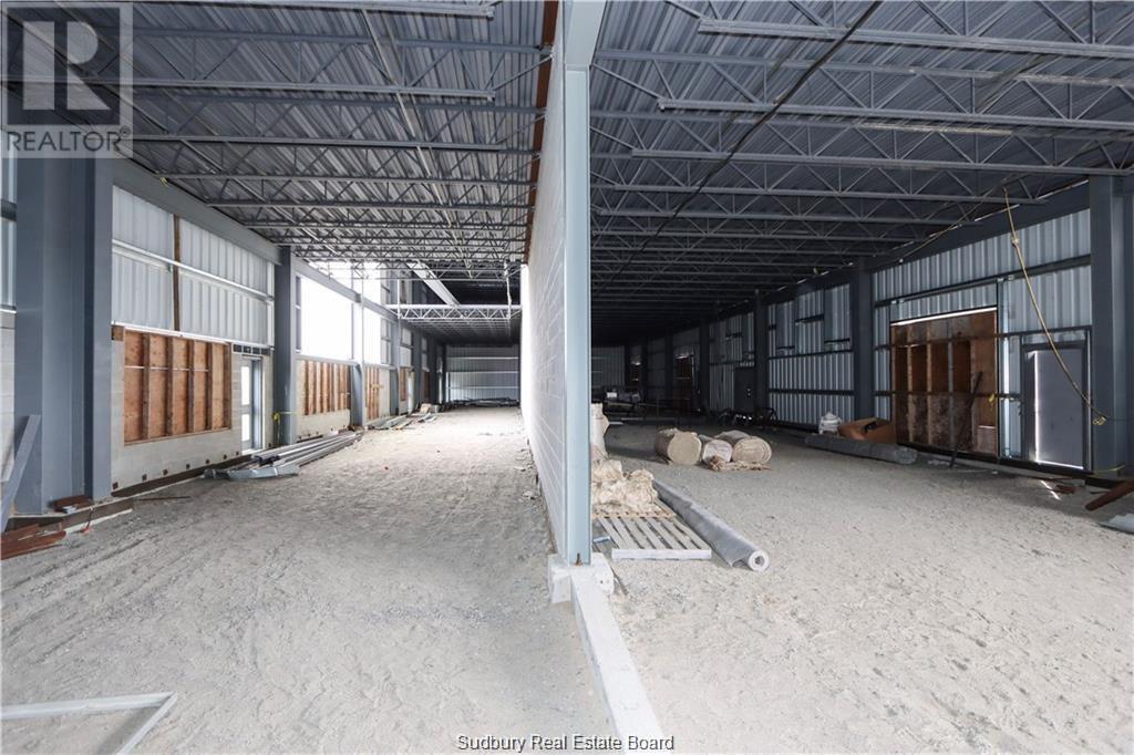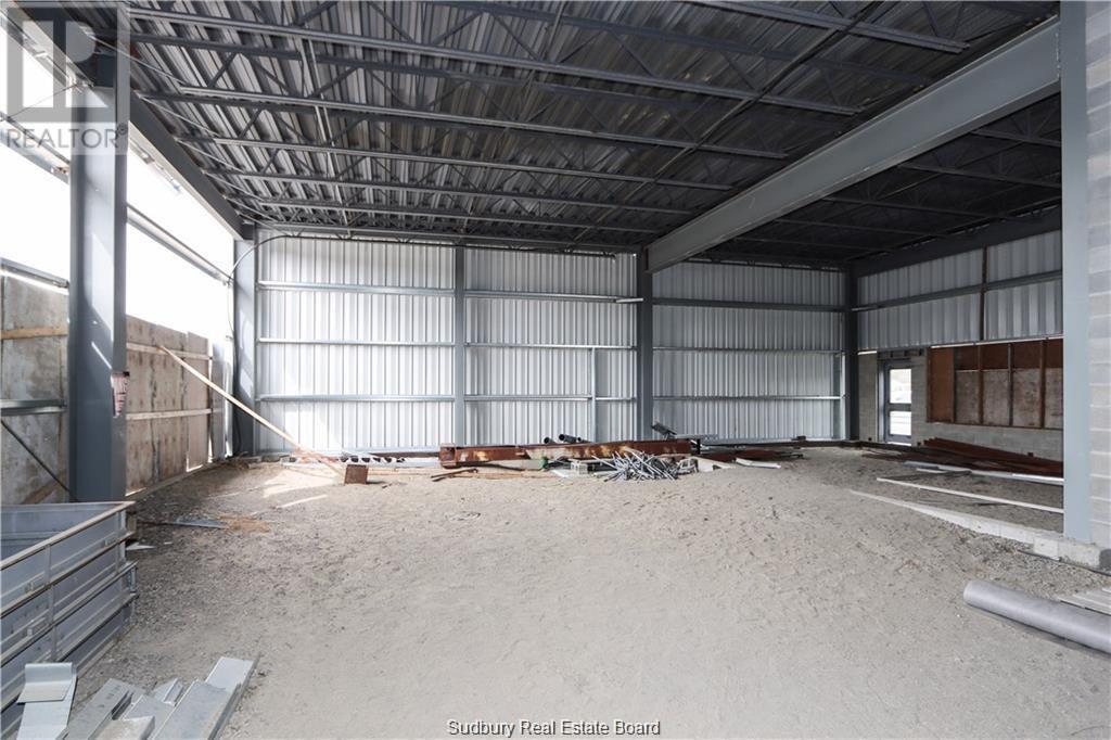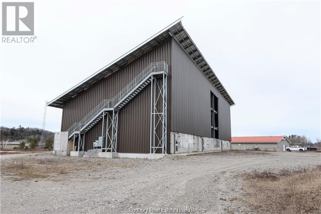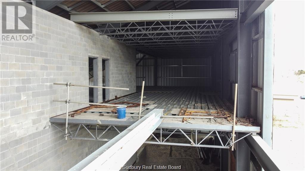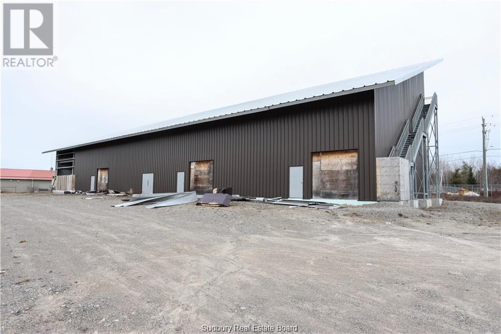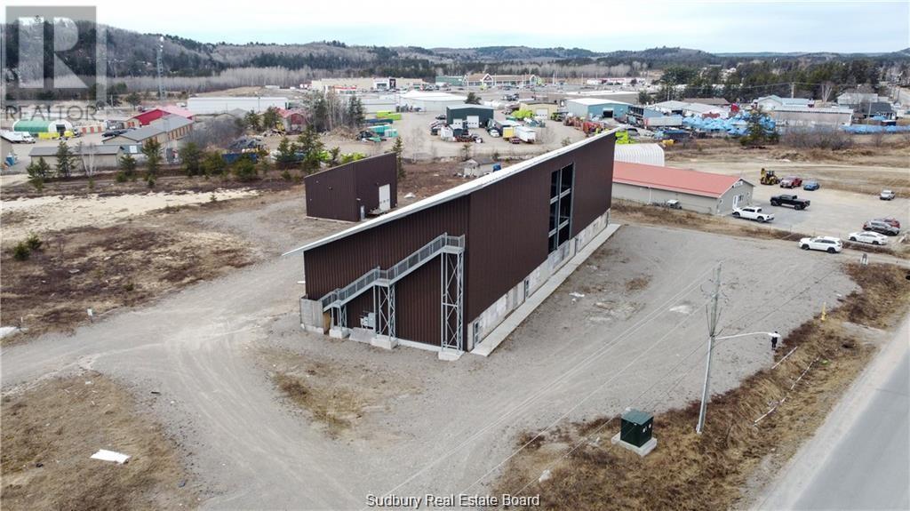 Excellent M2 - Light Industrial opportunity in Espanola. 4.56 acres of land and three buildings. The main building is a partially completed pre-engineered Varco Pruden (VP) 8500 square foot steel frame building that is designed for 3 floors to create a total of 17,806 square feet. 20 foot main floor ceilings. Outside dimensions are 53 x 162. It consists of 3 grade level overhead doors and 400 AMP, three-phase power. It has a south facing slanted roof designed for solar power panels. Second building is 1,200 square feet complete with grade level overhead door, 200 AMP, three-phase power, a washroom with shower. The third building is approximately 250 square feet with power and skylights. Rough-in plumbing is complete. Currently this project requires additional work including plumbing, lighting, drainage, concrete slab, insulation and finishing of second and third floors. (id:64974)