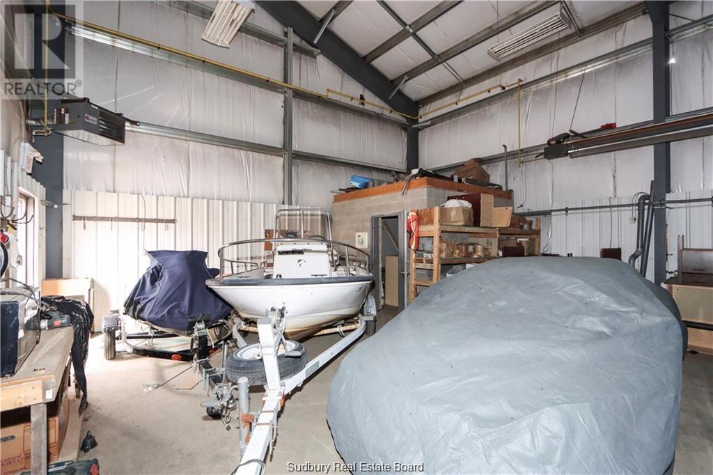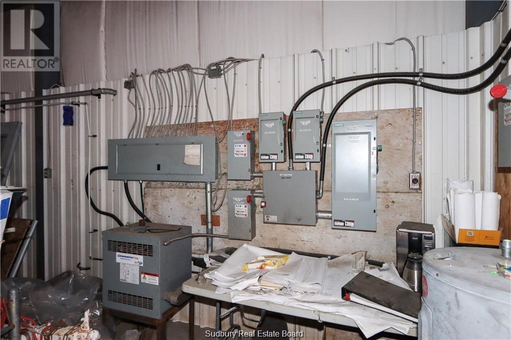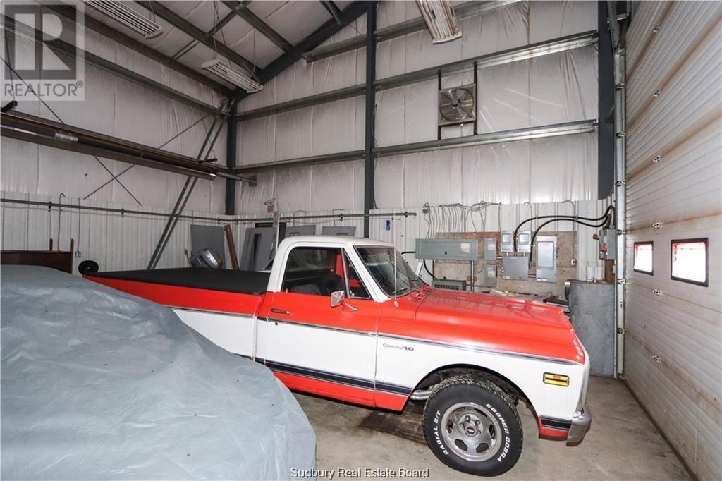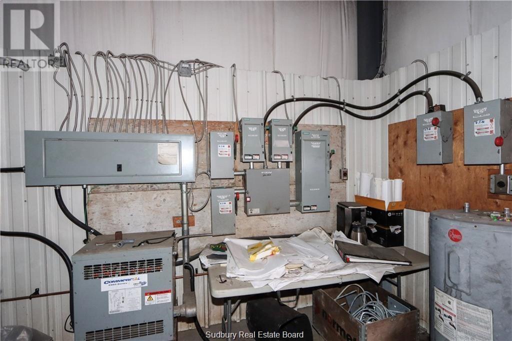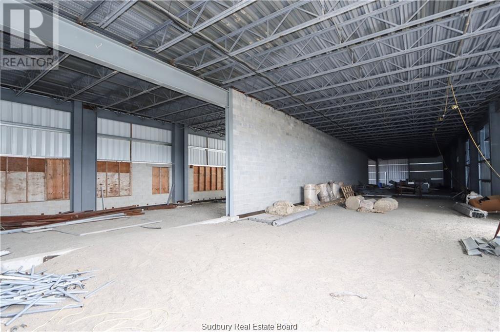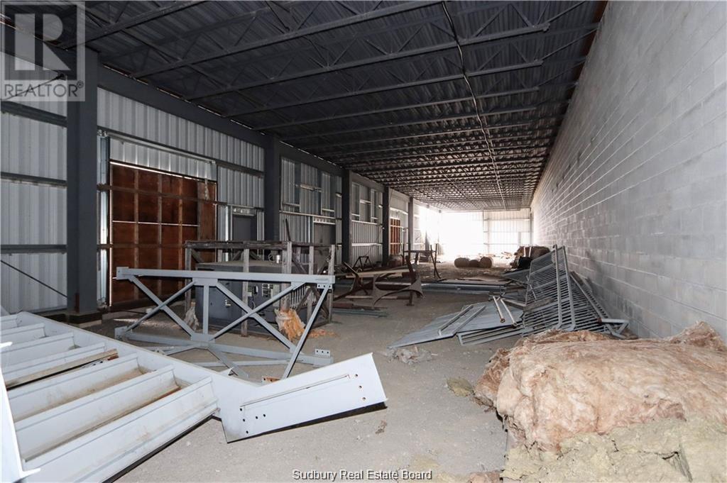 Excellent M2 - Light Industrial opportunity in Espanola. 4.56 acres of land and three buildings. The main building is a partially completed pre-engineered Varco Pruden (VP) 8500 square foot steel frame building that is designed for 3 floors to create a total of 17,806 square feet. 20 foot main floor ceilings. Outside dimensions are 53 x 162. It consists of 3 grade level overhead doors and 400 AMP, three-phase power. It has a south facing slanted roof designed for solar power panels. Second building is 1,200 square feet complete with grade level overhead door, 200 AMP, three-phase power, a washroom with shower. The third building is approximately 250 square feet with power and skylights. Rough-in plumbing is complete. Currently this project requires additional work including plumbing, lighting, drainage, concrete slab, insulation and finishing of second and third floors. (id:64974)