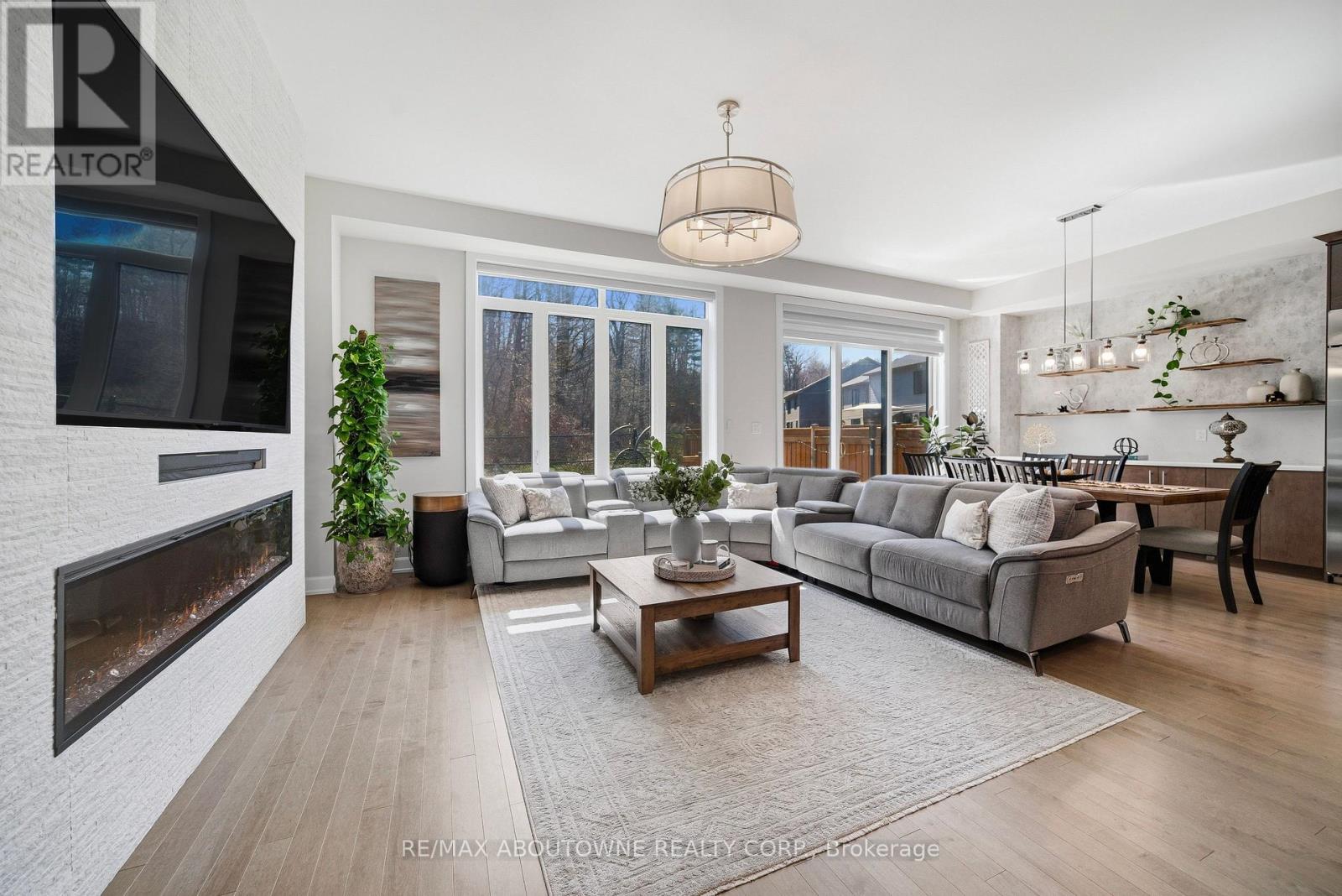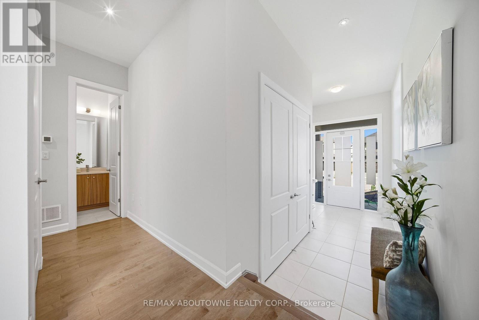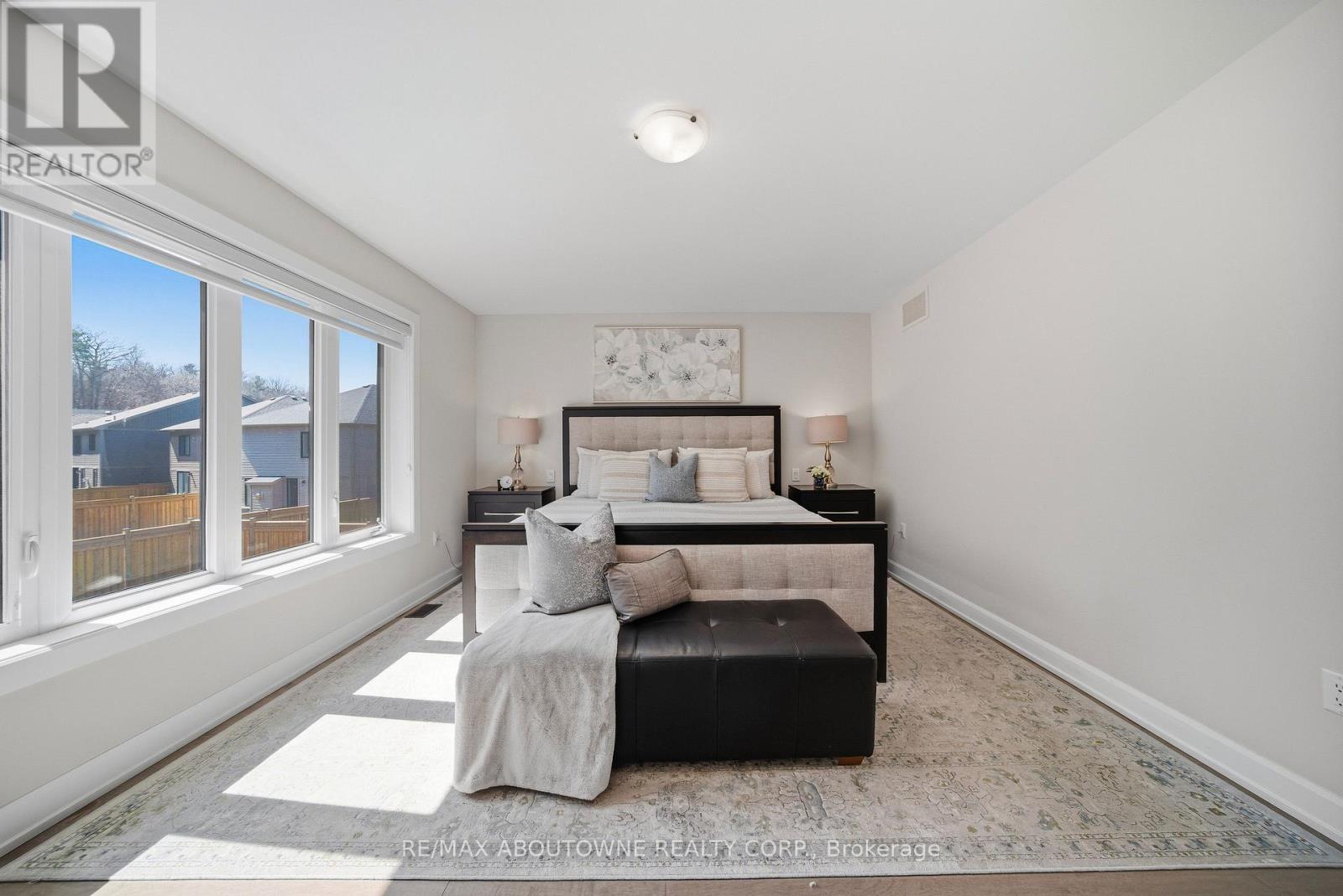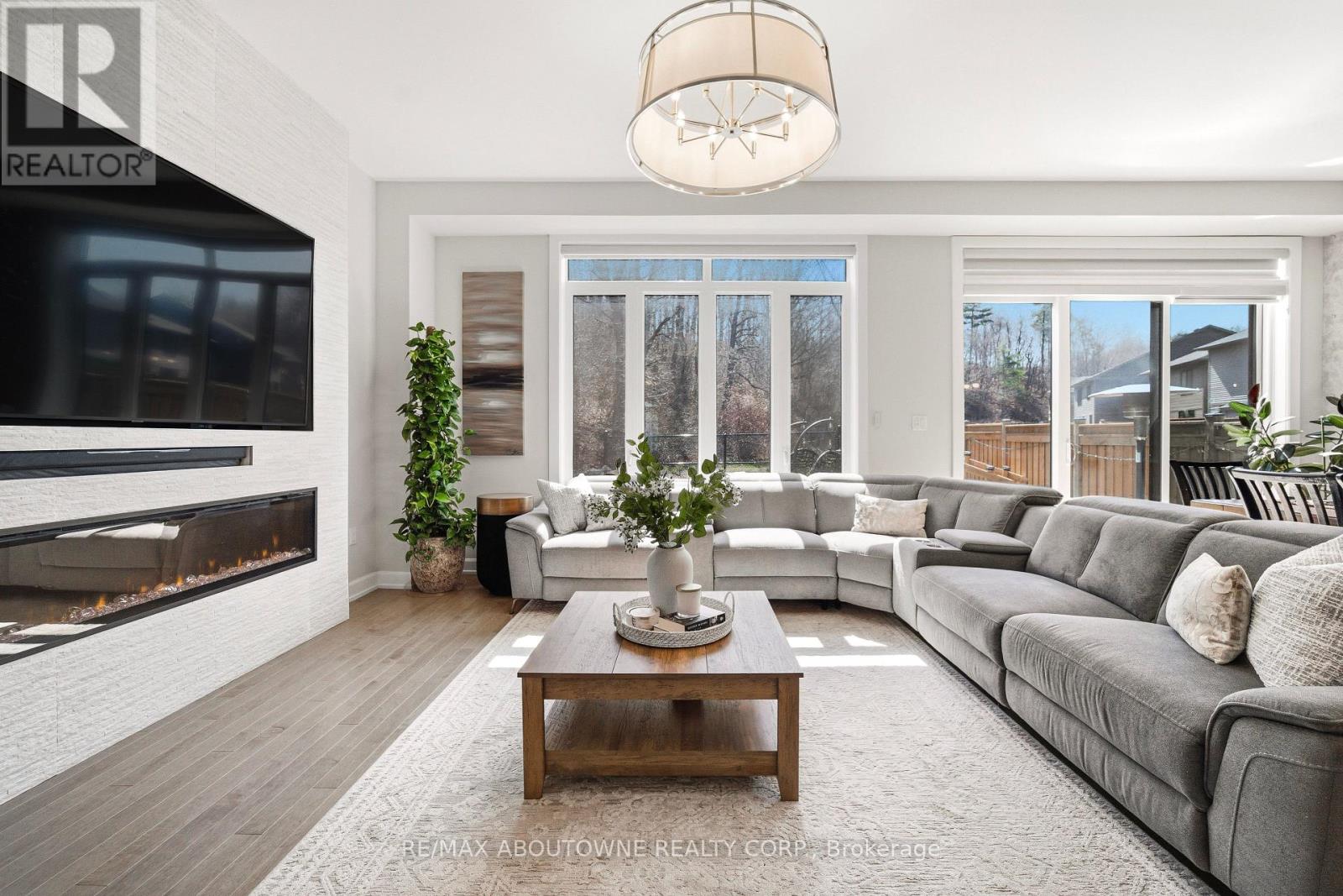 Stunning 3-bedroom, 3.5-bathroom detached home in sought-after Grimsby, offering the perfect blend of elegance, functionality, & modern design. This beautifully maintained property features a double garage & a welcoming foyer that leads into a practical mudroom, w/ a large closet & convenient powder room-ideal for busy families. The main level showcases a bright, spacious living room w/soaring 10-foot ceilings, floor-to-ceiling windows & patio door that flood the space with natural light, built in niche space for the large TV and surround sound speakers & a sleek electric fireplace. The open-concept dining area seamlessly connects to the backyard through sliding doors, creating an ideal setting for indoor-outdoor entertaining. The contemporary kitchen is thoughtfully designed with quality upgraded countertops, matching backspace, large island, additional upgraded cabinetry including waste, pull out racks for deep pots and spices, stainless steel upgraded appliances from Cafe, & ample storage space. A solid wood staircase leads to the second level, featuring 3 generously sized bedrooms, each w/ large windows and access to full bathrooms. The primary suite offers separate his & hers walk-in closets and a luxurious 4-piece ensuite w/double sinks. The 2nd bedroom includes a 3-piece ensuite & double closet, while the 3rd bedroom features oversized windows & a spacious closet. Enjoy the convenience of second-floor laundry. The basement boasts impressive 9-foot ceilings, large egress window included w/ 2 additional large windows, a freshly painted interior, a spacious rec. area, a partially finished bathroom, & rough-ins for a future kitchen-offering excellent potential for extended living or customization. Step outside to a private, fully fenced backyard O/L Niagara Escarpment allowing privacy and year round seasonal changes. Located close to schools, parks, shopping, & all essential amenities, this home is an exceptional opportunity in a family-friendly community. (id:64974)
