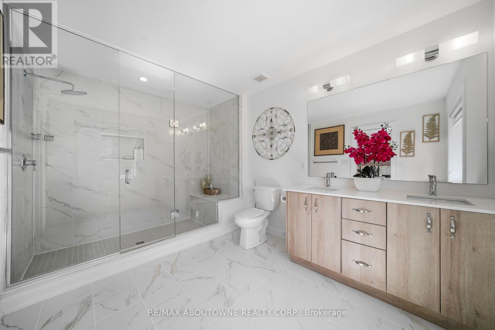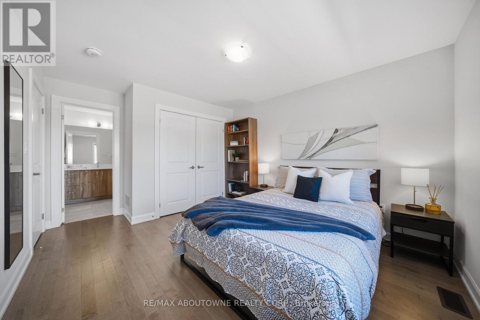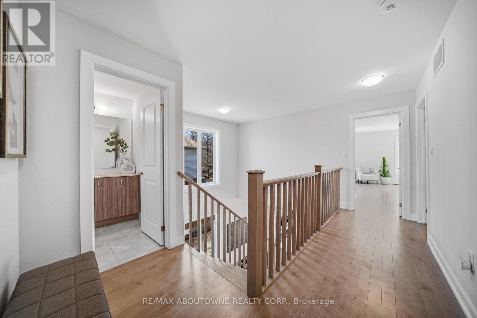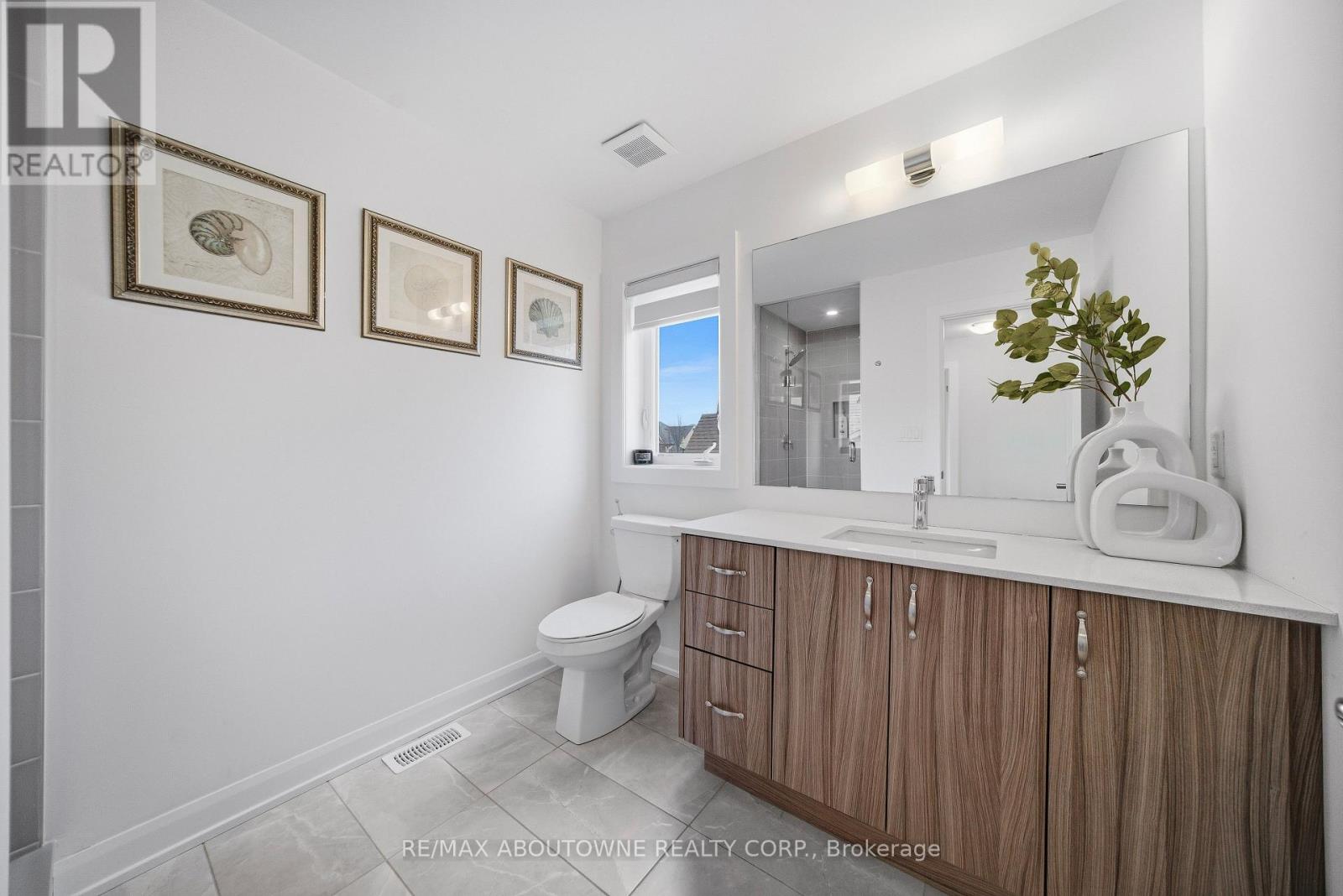 Stunning 3-bedroom, 3.5-bathroom detached home in sought-after Grimsby, offering the perfect blend of elegance, functionality, & modern design. This beautifully maintained property features a double garage & a welcoming foyer that leads into a practical mudroom, w/ a large closet & convenient powder room-ideal for busy families. The main level showcases a bright, spacious living room w/soaring 10-foot ceilings, floor-to-ceiling windows & patio door that flood the space with natural light, built in niche space for the large TV and surround sound speakers & a sleek electric fireplace. The open-concept dining area seamlessly connects to the backyard through sliding doors, creating an ideal setting for indoor-outdoor entertaining. The contemporary kitchen is thoughtfully designed with quality upgraded countertops, matching backspace, large island, additional upgraded cabinetry including waste, pull out racks for deep pots and spices, stainless steel upgraded appliances from Cafe, & ample storage space. A solid wood staircase leads to the second level, featuring 3 generously sized bedrooms, each w/ large windows and access to full bathrooms. The primary suite offers separate his & hers walk-in closets and a luxurious 4-piece ensuite w/double sinks. The 2nd bedroom includes a 3-piece ensuite & double closet, while the 3rd bedroom features oversized windows & a spacious closet. Enjoy the convenience of second-floor laundry. The basement boasts impressive 9-foot ceilings, large egress window included w/ 2 additional large windows, a freshly painted interior, a spacious rec. area, a partially finished bathroom, & rough-ins for a future kitchen-offering excellent potential for extended living or customization. Step outside to a private, fully fenced backyard O/L Niagara Escarpment allowing privacy and year round seasonal changes. Located close to schools, parks, shopping, & all essential amenities, this home is an exceptional opportunity in a family-friendly community. (id:64974)