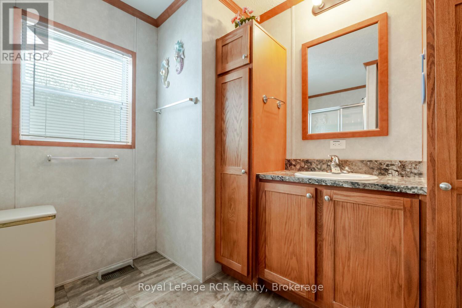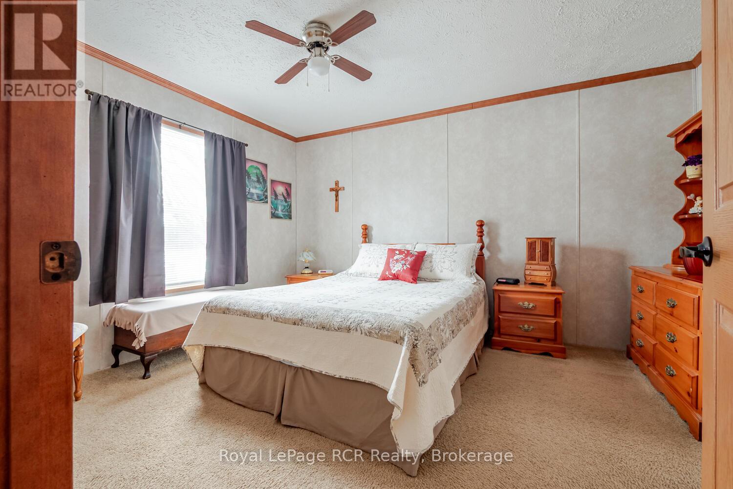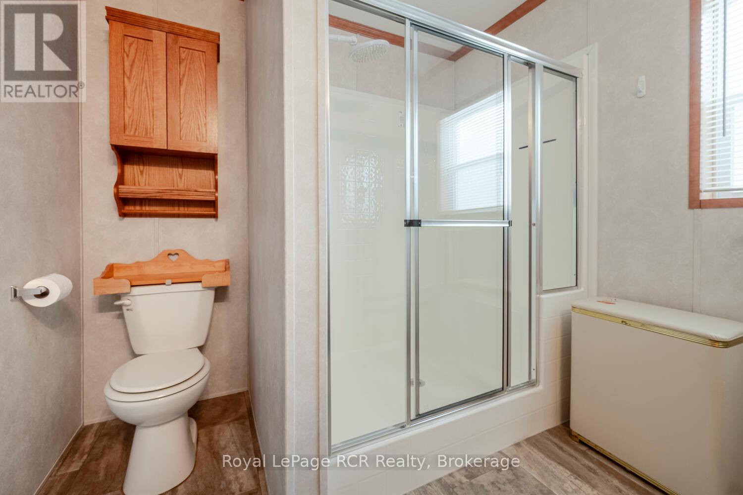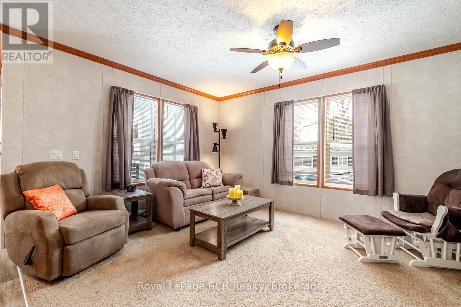 Peaceful Country Living Just Minutes from Owen Sound! Enjoy the tranquility of this well-maintained modular home located just 10 minutes south of Owen Sound in a quiet and friendly community setting. The bright living areas create a warm and welcoming atmosphere and open plan kitchen/living/diningroom make entertaining easy. This comfortable home features a spacious primary bedroom with ensuite bathroom and plenty of closet space. The guest bedroom/office/den offers a practical layout ideal for downsizers, retirees, or those seeking a peaceful retreat. Step outside to relax on the cozy front porch, perfect for enjoying morning coffee. The enclosed side porch provides easy access into the home from the private paved driveway . A mudroom/laundry room is conveniently situated by the side entrance. Surrounded by nature yet close to town amenities, this property offers the perfect balance of country charm and convenience. Lease fee $700.00 monthly, plus $45 water and $133.92 property tax. (id:64974)