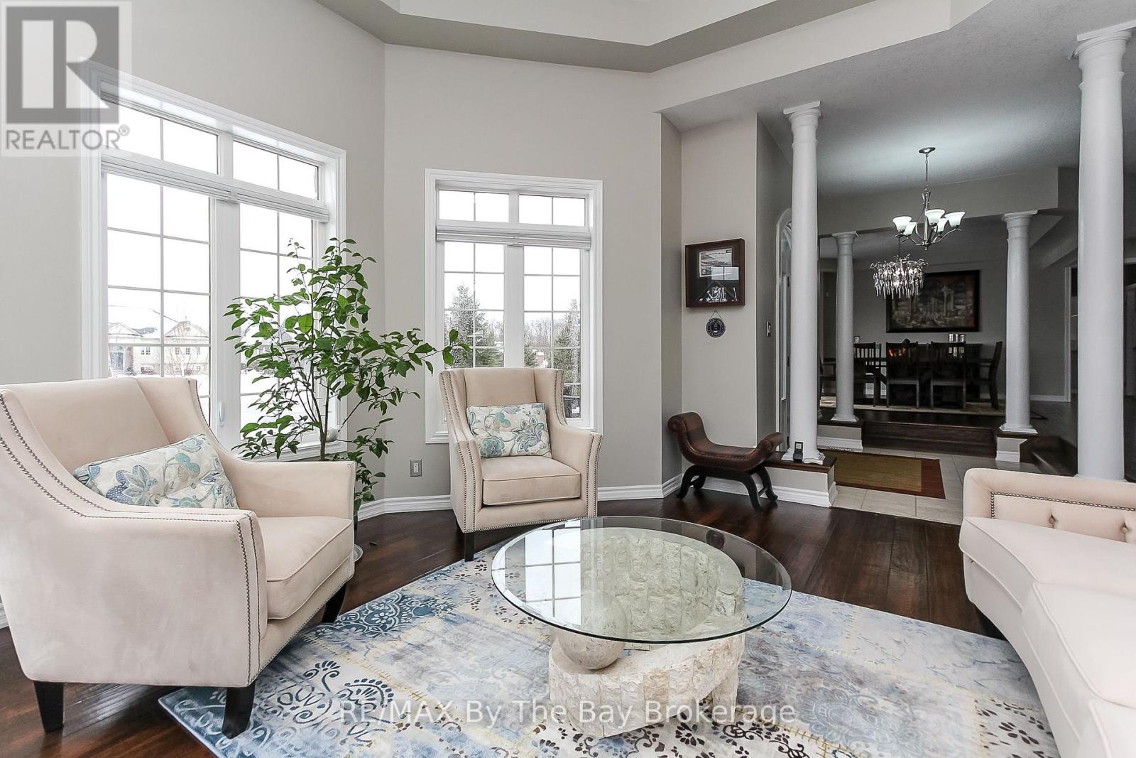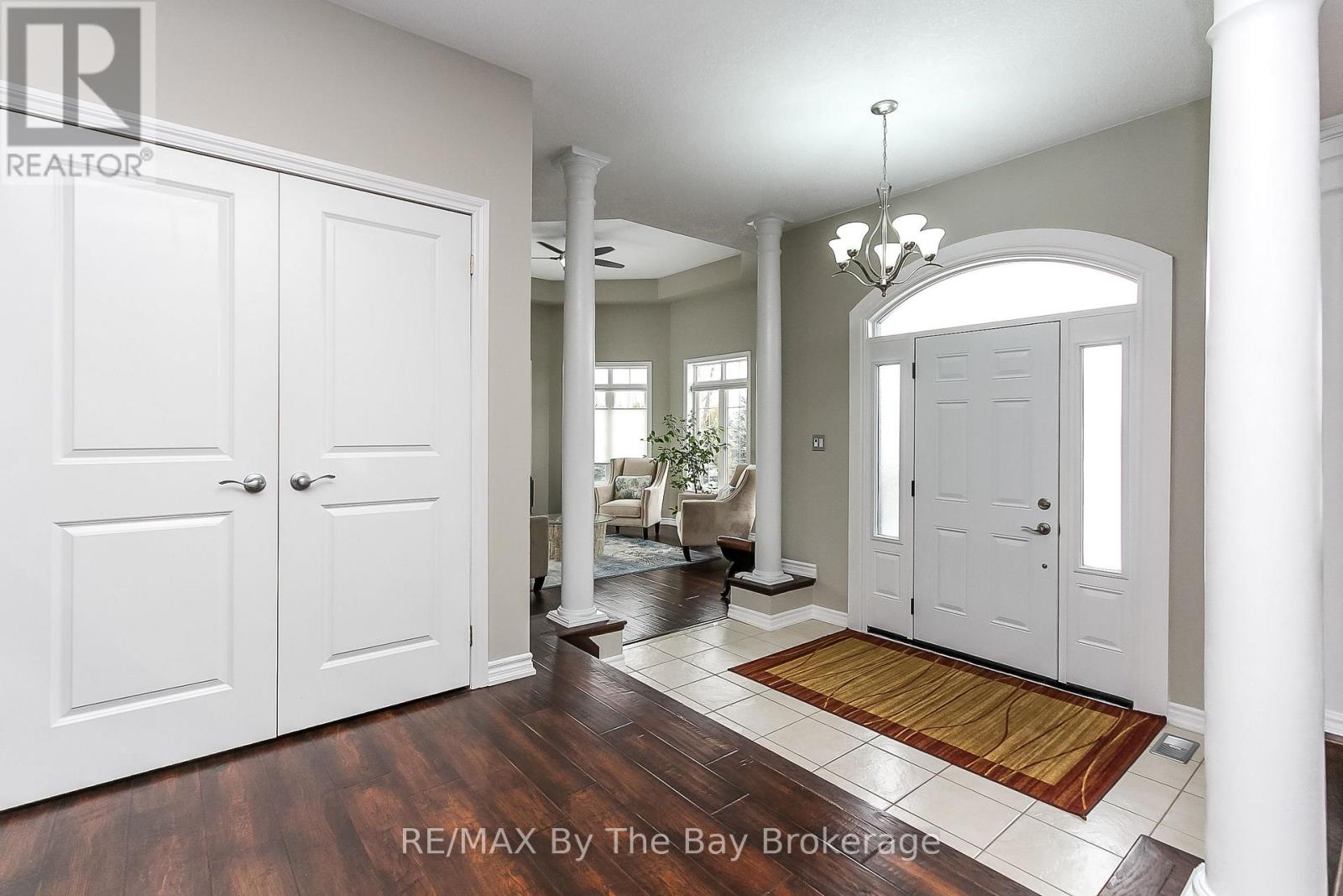 Are you looking for space, comfort, and a great location for your family? This beautiful home offers over 2,600 sq. ft. of living space on the main floor and an oversized triple garage with plenty of room for cars, toys, and storage.Set on a -acre lot in one of Wasaga Beach's most sought-after estate communities, this home is surrounded by other high-quality, luxury properties. You can enjoy a quiet country feel while still being just minutes from town.Step inside to bright, open living spaces designed for family life and entertaining. The recently updated kitchen features a large island and flows into the family room with soaring cathedral ceilings - the perfect place to gather. There is also a separate living room and dining room for more formal occasions.The primary bedroom is a private retreat with a walk-in closet, a second closet, double sinks, a relaxing soaker tub, and a glass shower. Two additional spacious bedrooms share a full bathroom, making this layout ideal for growing families.You'll love the 9-foot ceilings, large windows, and natural light throughout the home. The backyard offers plenty of space to play and relax, plus an extended deck that's perfect for outdoor dining and summer evenings.The partially finished basement is ideal for extended family or guests. It features two staircases, a full in-law suite with its own kitchen, three bedrooms, two full bathrooms, and a large recreation area. There is also a large unfinished space for storage or future plans.The location is hard to beat. Walk to MacIntyre Creek trails, drive just 5 minutes to shopping, dining, and the beach, 15 minutes to Collingwood, and 25 minutes to Blue Mountain Village.Recent updates include a new roof (2022) and new black front windows (2025).This is not a cookie-cutter home. It is a unique estate property in a well-established luxury neighbourhood - ready for your family to move in and enjoy. (id:64974)