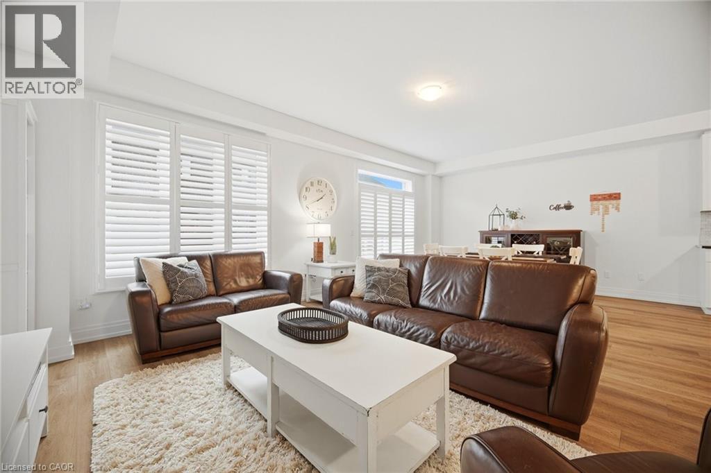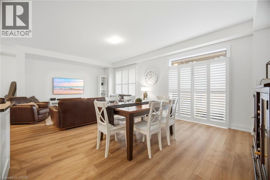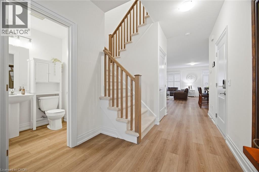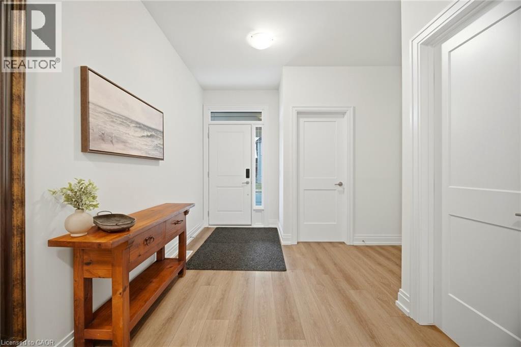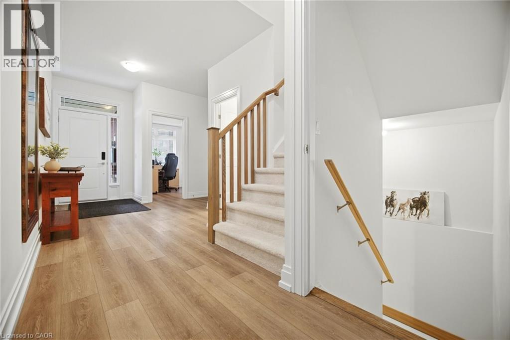 Beautifully maintained, move-in ready home in the heart of Waterdown. Just a few years new, this property offers a modern, clean aesthetic with thoughtful design throughout, set in a sought-after East Waterdown neighbourhood. Bright, open-concept main floor with seamless flow from the living and dining area into a crisp white kitchen with black quartz countertops, a stylish and functional space ideal for both everyday living and entertaining. Main floor office provides valuable additional space for those working from home. Upper level features four spacious bedrooms, three bathrooms, and convenient laundry. The primary bedroom offers a large walk-in closet and a well-appointed ensuite with double sinks and a glass walk-in shower. The second-largest bedroom includes a junior ensuite, while the third and fourth bedrooms have access to an additional full bathroom. Unfinished basement offers excellent potential with high ceilings to create additional living space, a home gym, or a rec room tailored to your needs. Inside entry from the garage with a single-wide driveway. Located on a quiet crescent in a newer, family-friendly neighbourhood, just minutes to Burlington, shopping, and everyday amenities. A well-cared-for home in a fantastic location, designed for easy living and ready for its next chapter. Over 3200 sq. feet of combined living space. (id:64974)