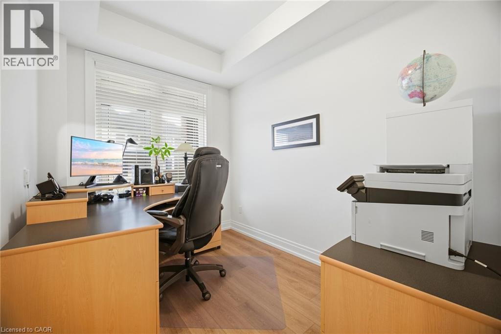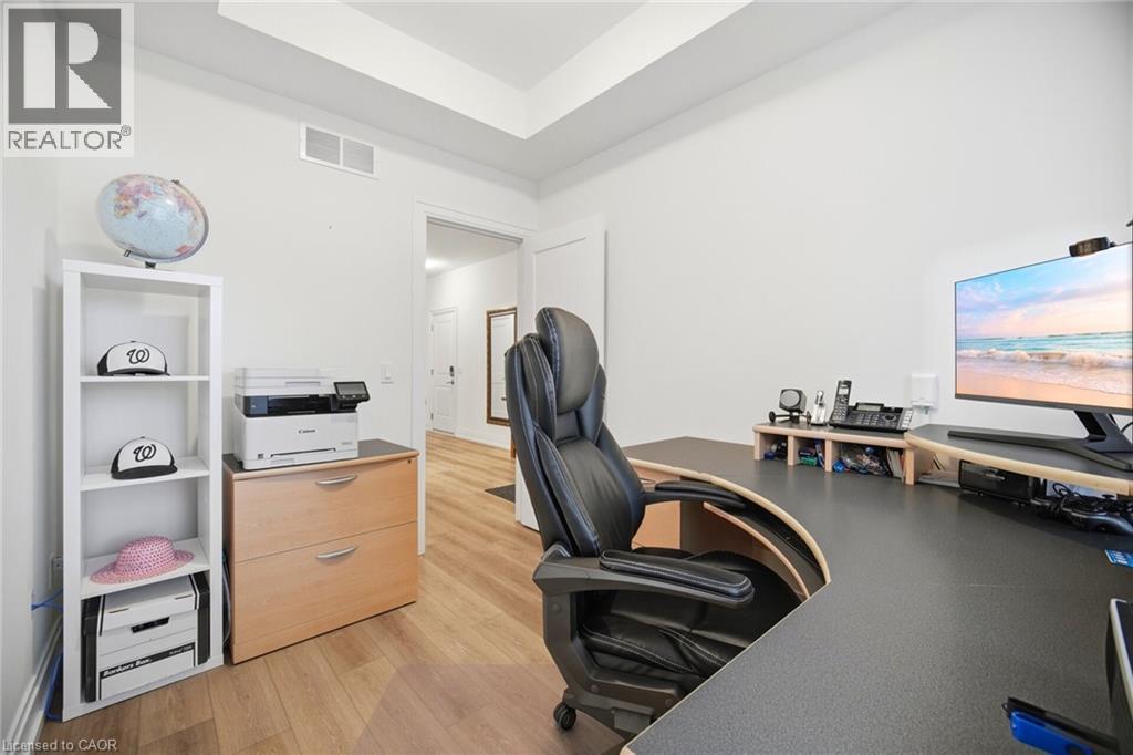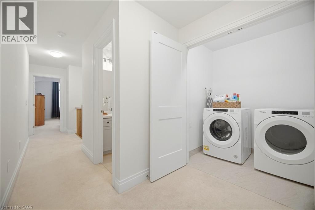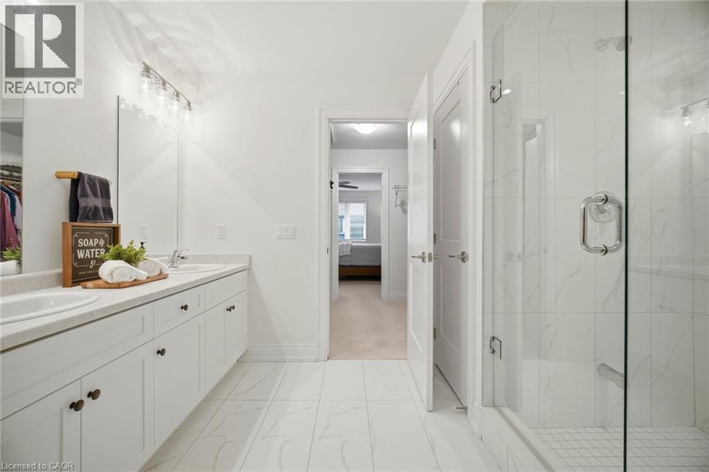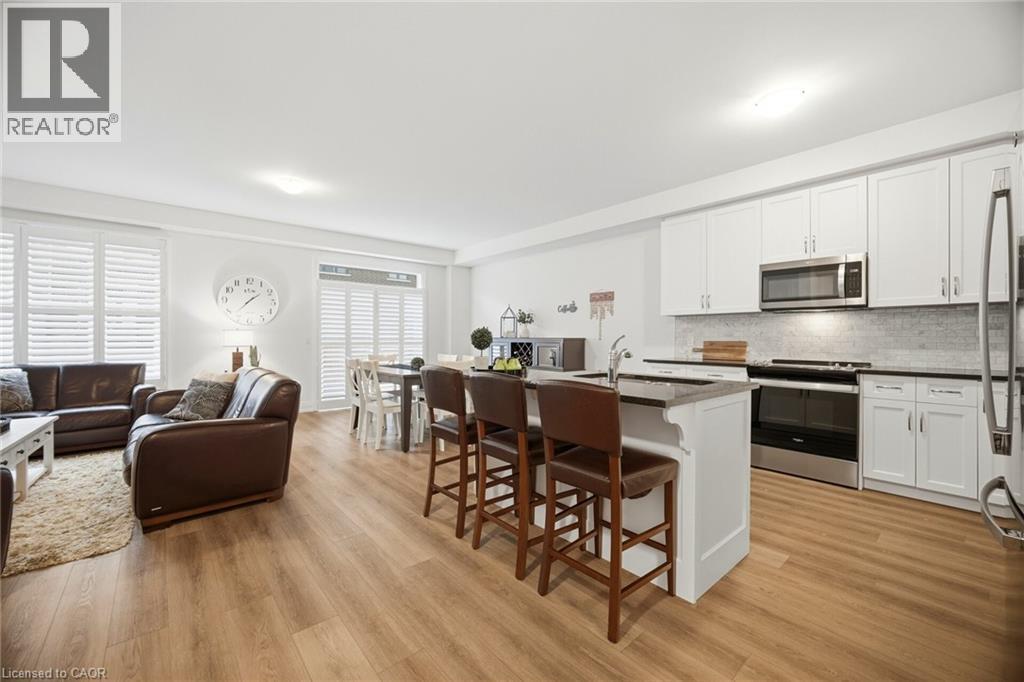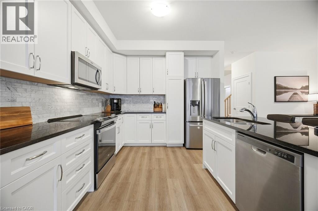Beautifully maintained, move-in ready home in the heart of Waterdown. Just a few years new, this property offers a modern, clean aesthetic with thoughtful design throughout, set in a sought-after East Waterdown neighbourhood. Bright, open-concept main floor with seamless flow from the living and dining area into a crisp white kitchen with black quartz countertops, a stylish and functional space ideal for both everyday living and entertaining. Main floor office provides valuable additional space for those working from home. Upper level features four spacious bedrooms, three bathrooms, and convenient laundry. The primary bedroom offers a large walk-in closet and a well-appointed ensuite with double sinks and a glass walk-in shower. The second-largest bedroom includes a junior ensuite, while the third and fourth bedrooms have access to an additional full bathroom. Unfinished basement offers excellent potential with high ceilings to create additional living space, a home gym, or a rec room tailored to your needs. Inside entry from the garage with a single-wide driveway. Located on a quiet crescent in a newer, family-friendly neighbourhood, just minutes to Burlington, shopping, and everyday amenities. A well-cared-for home in a fantastic location, designed for easy living and ready for its next chapter. Over 3200 sq. feet of combined living space. (id:64974)
