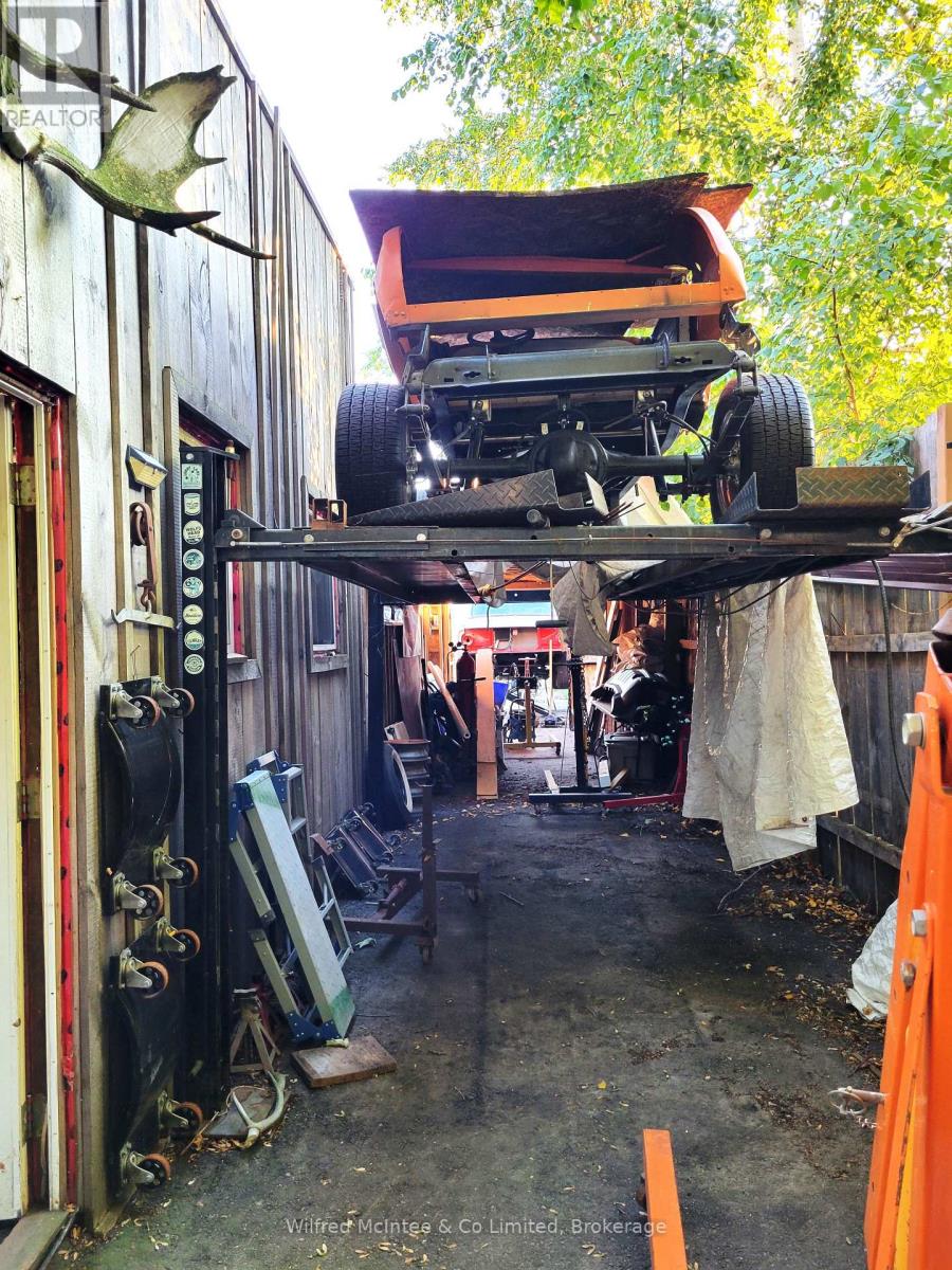 Rare opportunity to own a unique M1 multi-use property in a prime location just off Hwy 6 in Mount Forest! This is the perfect live-work solution, combining a charming, updated home with a high-powered industrial shop, all on a private, fully-fenced 0.254-acre lot. For the entrepreneur, tradesperson, or car enthusiast, the real magic lies at the rear of the property. Behind a secure gate and driveway, you'll find a car lover's dream: a 32' x 44' insulated and heated shop built to professional standards. Constructed by a previous owner as a full machinist's shop, this incredible space boasts 500-amp hydro service, a metal roof, and both overhead and man doors for easy access. This M1-zoned space is ready to bring your business to the next level or make your hobby dreams a reality. The cozy, two-bedroom, one-bathroom main floor residence offers comfortable living with modern updates including new windows and a durable metal roof. The partially finished basement allows you to double the home's square footage, with drywall already hung and a layout ready for your personal touches. Imagine a lovely new space with a laundry room, potential kitchenette, two additional bedrooms, a full bathroom, and tons of storage. Serviced by town water and sewer and has its own 100-amp hydro service for the home. Step outside and be greeted by your own private oasis. The beautifully landscaped and fully fenced yard is a true sanctuary, complete with mature trees, gardens, a clothesline, and a serene goldfish pond. Enjoy your morning coffee or evening drink on the front and rear decks, taking in the peaceful surroundings. Don't miss out on this one-of-a-kind property that perfectly blends residential comfort with industrial capability. It's more than a home; it's a launchpad for your future. Ready to grow your business or make your hobby dreams come true? This is your chance! (id:64974)