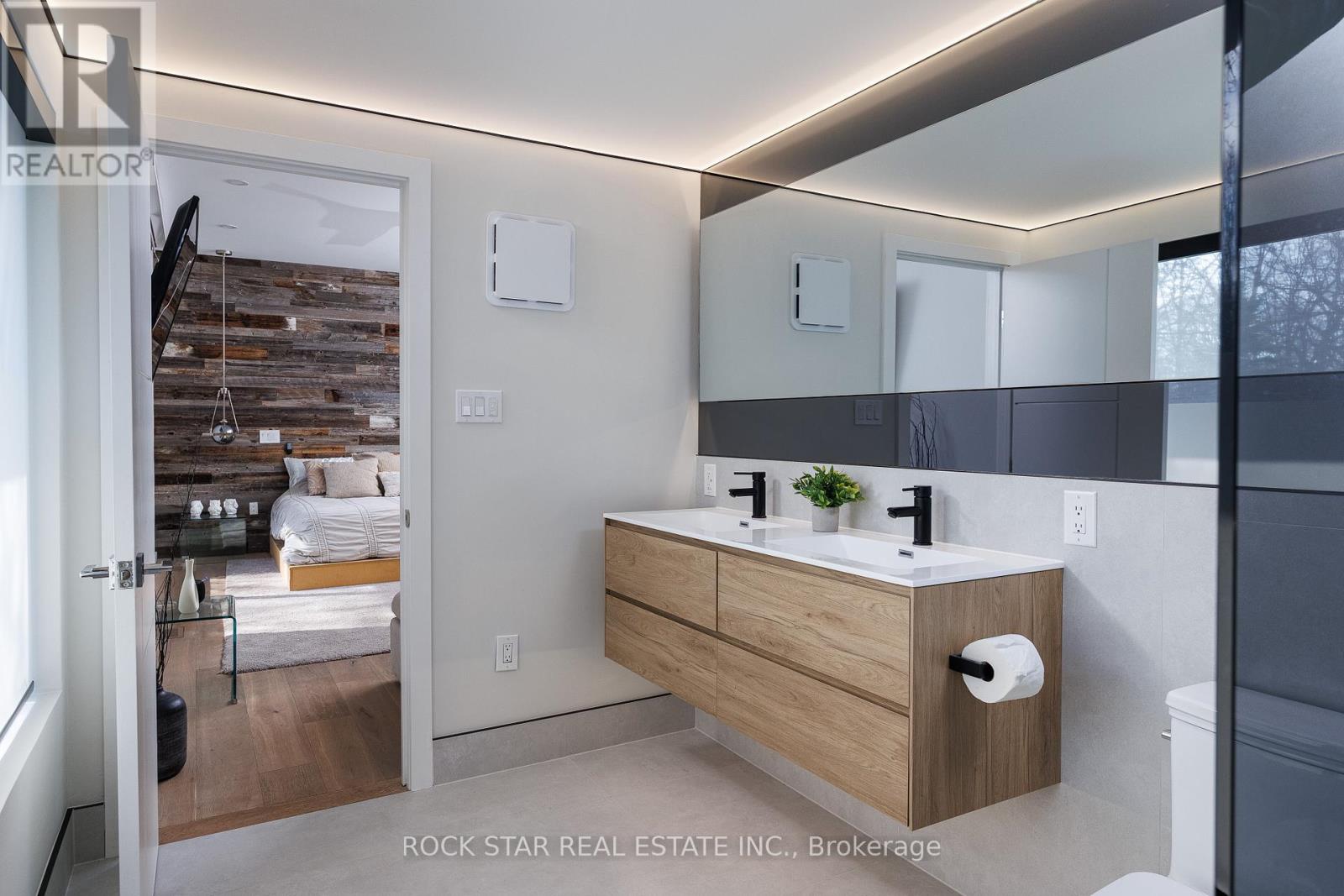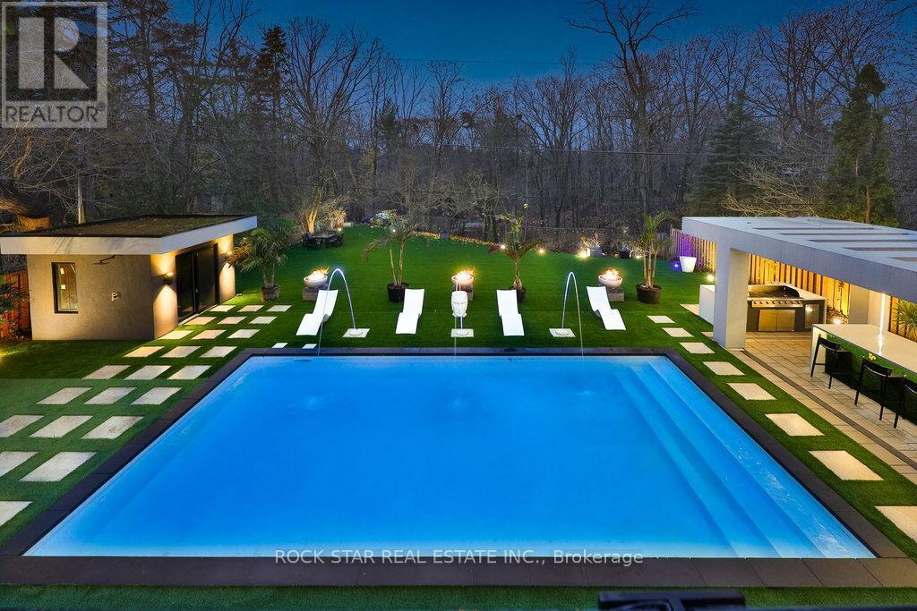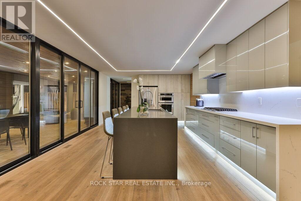 Modern Luxury Meets Architectural Brilliance at 370 Goodram Drive - Step into the pinnacle of modern design effortless entertaining at 370 Goodram Drive, a custom estate crafted by renowned luxury developer Alejandro Bauza & designer Marcia Bauza of Casa Bauza. This architectural masterpiece spans 4,282 SF of impeccably finished living space, situated on an oversized ravine lot that seamlessly blends nature with contemporary elegance.The exterior is a visual triumph with its sleek stucco, natural wood accents, & tinted glass garage door. The finished garage elevates functionality with epoxy floors & LED strip lighting. Inside, the home is an entertainers dream. A statement gas fireplace framed by striking porcelain slabs creates a dynamic focal point, dividing the living & family roomsboth adorned with engineered hardwood, integrated Bluetooth speakers, & automated blinds.The chefs kitchen is a masterpiece of form & function, anchored by a 10-ft dark grey quartz waterfall island. Complete with a wine display, high-end appliances, & LED accents, its the ultimate space to host or unwind. Ascend the dramatic iron staircase with quartz treads to a 20-ft ceiling, skylights, & oversized windows that flood the space with natural light.The primary suite redefines luxury, featuring white oak floors, a barn wood feature wall, & an en-suite sanctuary with double sinks, a large shower, & a soaking tub. Step out onto the private balcony to enjoy breathtaking views of your personal oasis below.Out back, the low-maintenance yard invites unparalleled relaxation & entertainment. Dive into the 16x32 pool with color-changing jets, host in the fully-equipped 20x16 cabana, or fire up the gas BBQ for an al fresco feast. A smart panel system lets you control outdoor settings effortlessly, ensuring every detail is perfect for gatherings or quiet retreats. A flawless blend of cutting-edge architecture, luxurious features, setting the stage for a lifestyle of sophistication style. (id:64974)