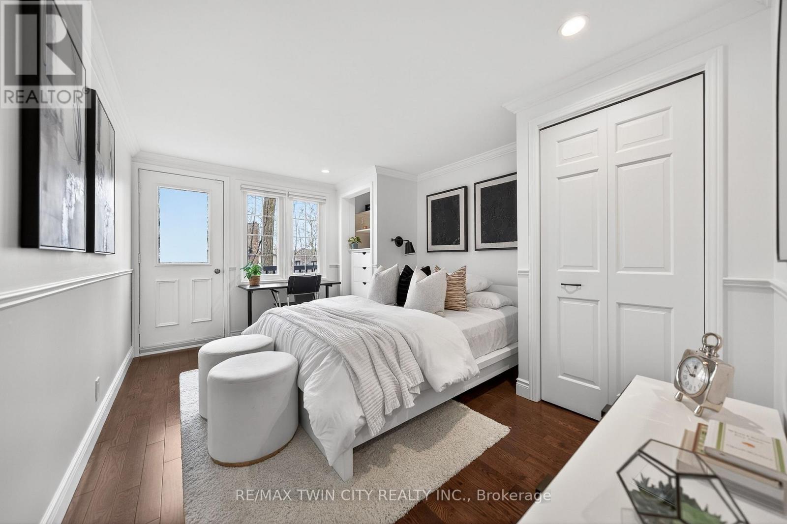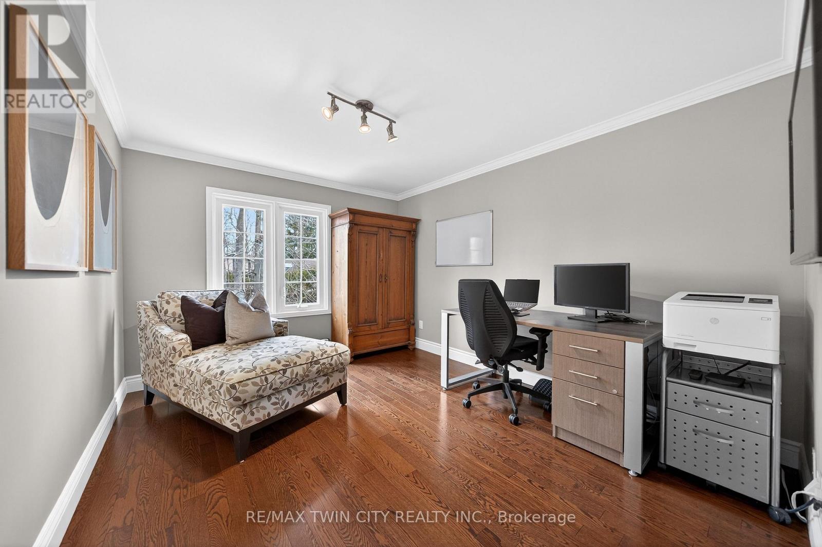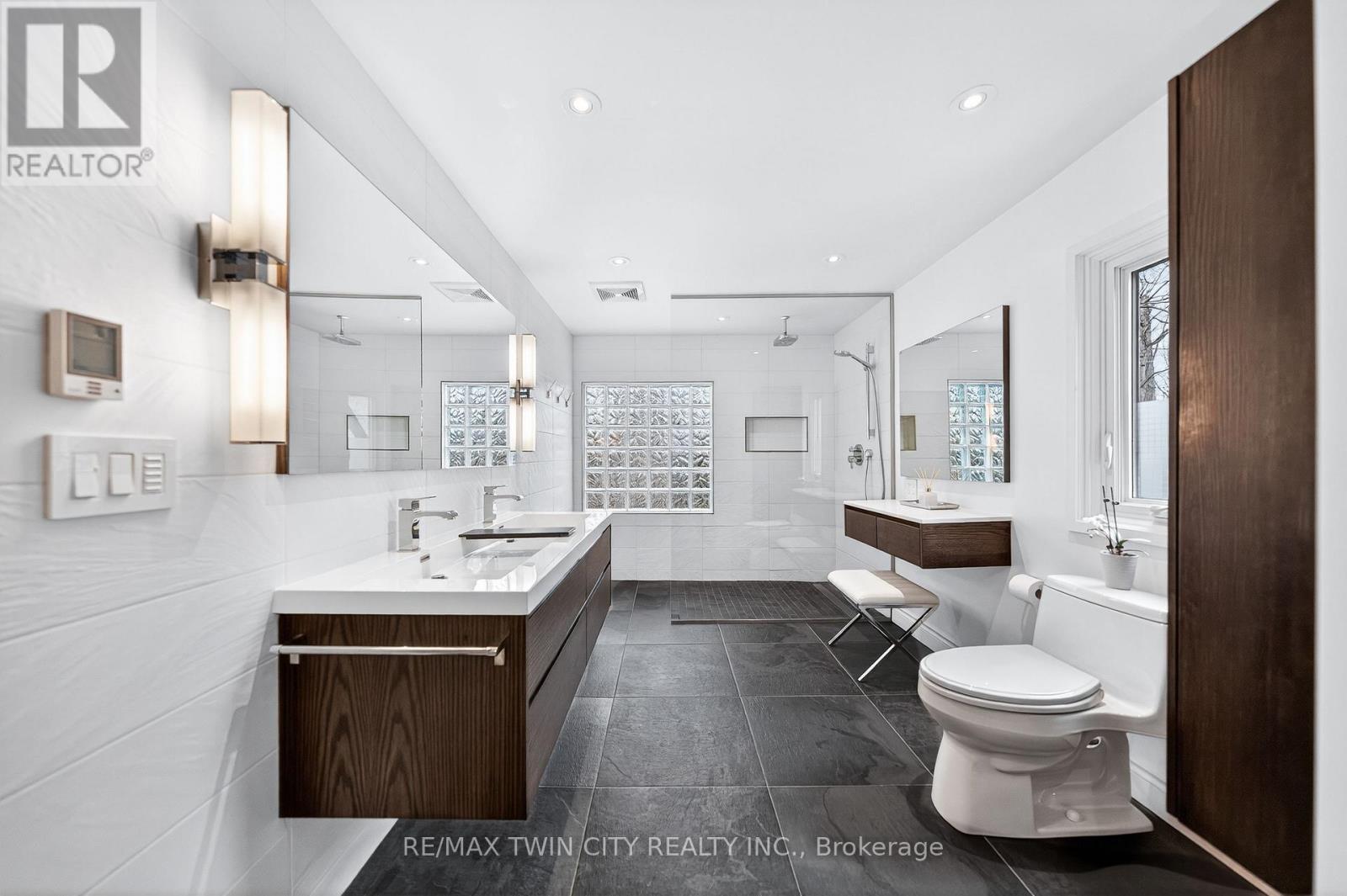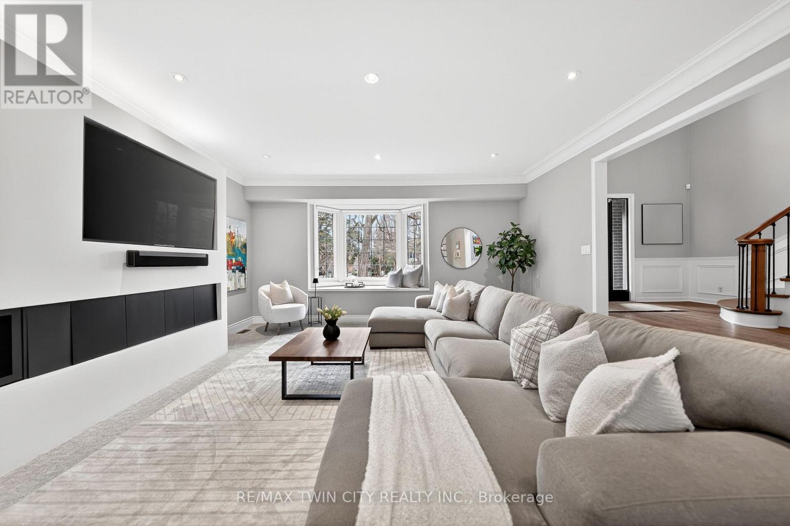 This is the home you have been waiting for. A rare & iconic offering in Old Colonial Acres, one of Waterloo's most prestigious & established neighbourhoods. Set on an expansive, mature, tree-lined lot of approx. acre, this timeless Tudor-style home offers 4,300+ SF of beautifully finished living space with 5 bedrms, 4 bathrms, extensive updates, exceptional privacy, & a backyard that feels like a private resort. Tucked away on a quiet court & surrounded by mature trees, this home offers a level of tranquility rarely found-true cottage-style living in the city, just mins to universities, major employers, & everyday amenities. Designed for both entertaining & everyday living, the bright & spacious layout features a grand 2-storey foyer, impressive great rm with gas FP & bay window, & a formal dining rm. The updated Country Lane kitchen is the heart of the home, complete with heated slate flrs, premium appliances, & oversized island with seating for 6, with direct backyard access for seamless indoor-outdoor living. A functional mudrm with built-ins, garage access, & a well-placed powder rm with backyard entry add convenience. The upper level offers 5 generous bedrms, highlighted by a hotel-inspired primary retreat, with custom feature wall with electric FP, sitting area, walk-in dressing rm with built-ins & laundry area, & a beautifully updated spa-like ensuite with double floating vanities & oversized glass walk-in shower. 4 additional bedrms (3 with balcony access), an updated 5-pc main bath, & 361 SF attic complete the upper level. The finished lower level adds valuable additional living space complete with a rec rm with gas FP, exercise area, games rm, & 2-pc bathrm. Outdoors, the private backyard features an inground pool, expansive patio, covered seating area, & multiple outdoor living spaces-creating a true oasis. This home blends privacy, timeless architecture, & a resort-like lifestyle just mins to universities, Conestoga Mall, parks, trails, & major routes. (id:64974)