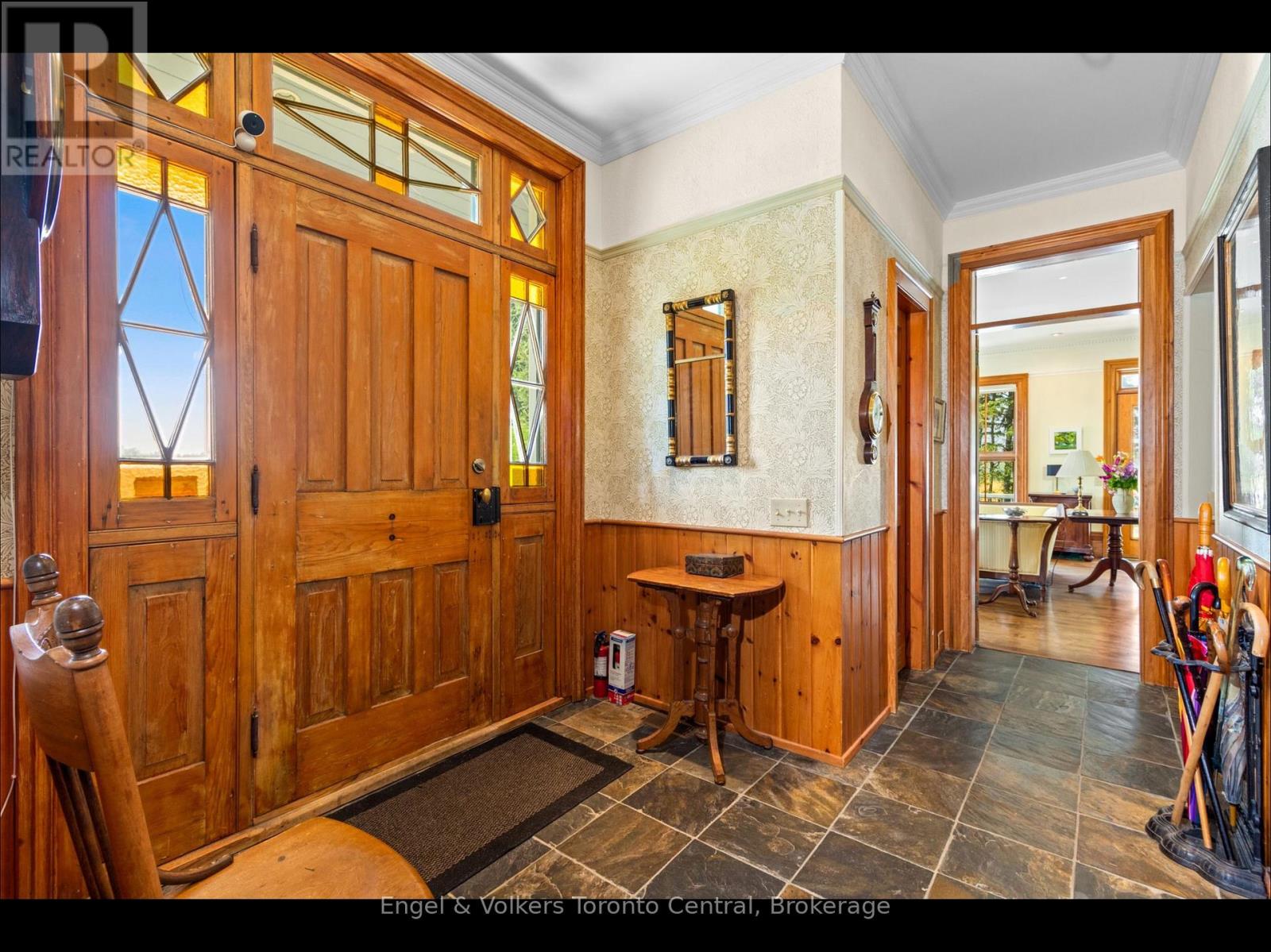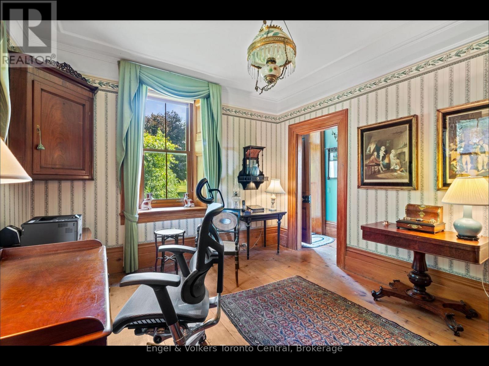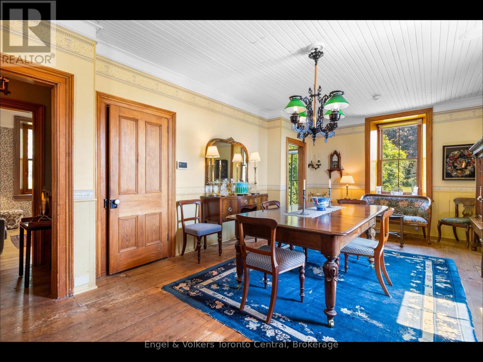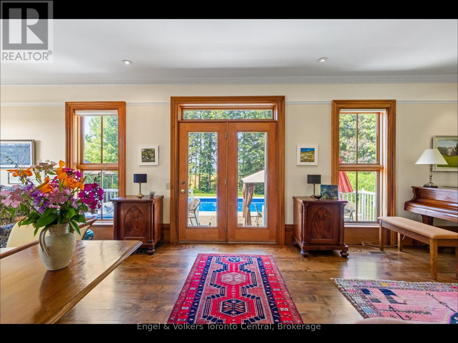Step into timeless elegance and refined country living on this extraordinary 10-acre estate. More than a hobby farm, this property has been thoughtfully curated into a serene, park-like retreat reminiscent of a classic English country house. At the heart of the property stands a remarkable 1876 stone residence, originally built by Thomas and Isabella Fraser and proudly referenced in the Sydenham Centennial History. This architectural gem showcases solid multi-coloured granite construction with finely tooled limestone coigning-an enduring testament to craftsmanship. The home has been meticulously maintained and restored, including expert repointing by a skilled stone mason, while preserving its original woodwork, deep-set windows, and historic charm throughout. A thoughtfully designed board-and-batten addition (2006), created by noted architectural designer George Yost blends seamlessly with the original structure-enhancing functionality while honouring the home's heritage. Carefully integrated reclaimed elements, including a circa-1876 front door from Tavistock and original interior details, add warmth and authenticity. The grounds are truly exceptional-offering a tranquil, landscaped setting framed by mature and rare trees including a magnificent 220-year-old maple, ginkgo, magnolia, chestnut, linden, and larch. Ideal for nature lovers, hobbyists or equestrian enthusiasts. Enjoy the best of Georgian Bay living with nearby access to the natural shoreline. A stony beach at Queen's Bush provides a quiet launch for kayaking, while the sandy shores and family-friendly amenities of Hibou Conservation Area are just a short 12-minute drive. This is a rare opportunity to own a piece of Ontario's architectural and cultural history-set within a private, storybook landscape that offers both tranquility and accessibility. A truly one-of-a-kind country estate where history, nature and refined living come together. Meaford is a 2 hr drive from Toronto with access to 4 season fun. (id:64974)