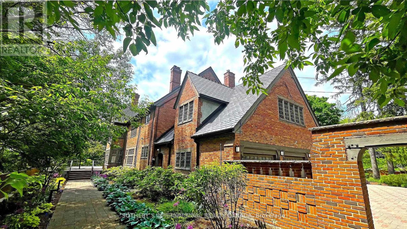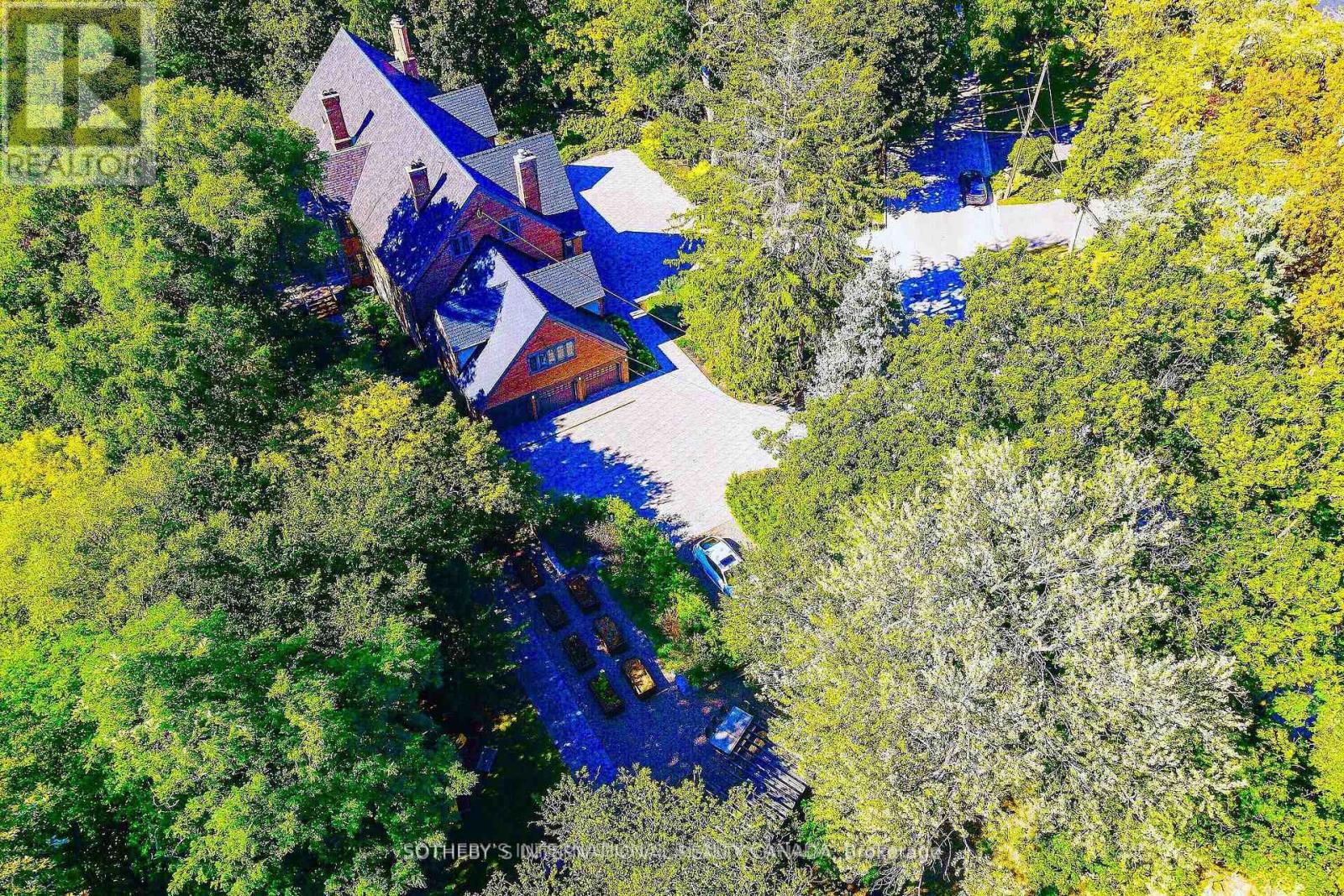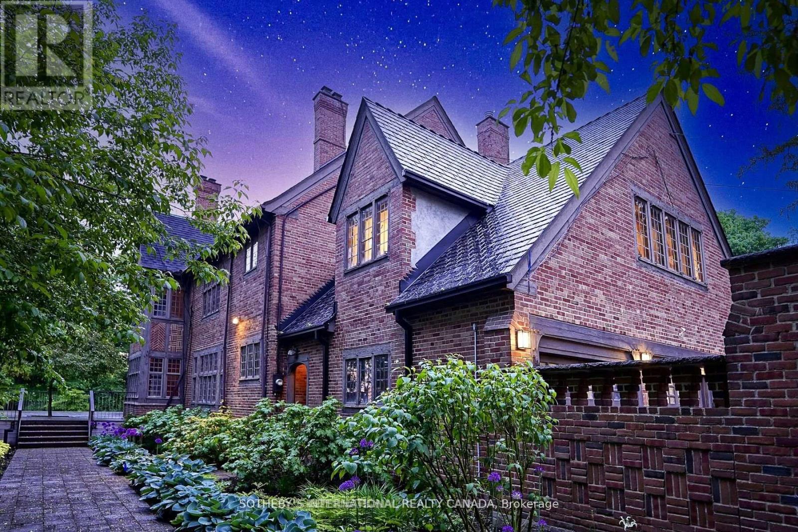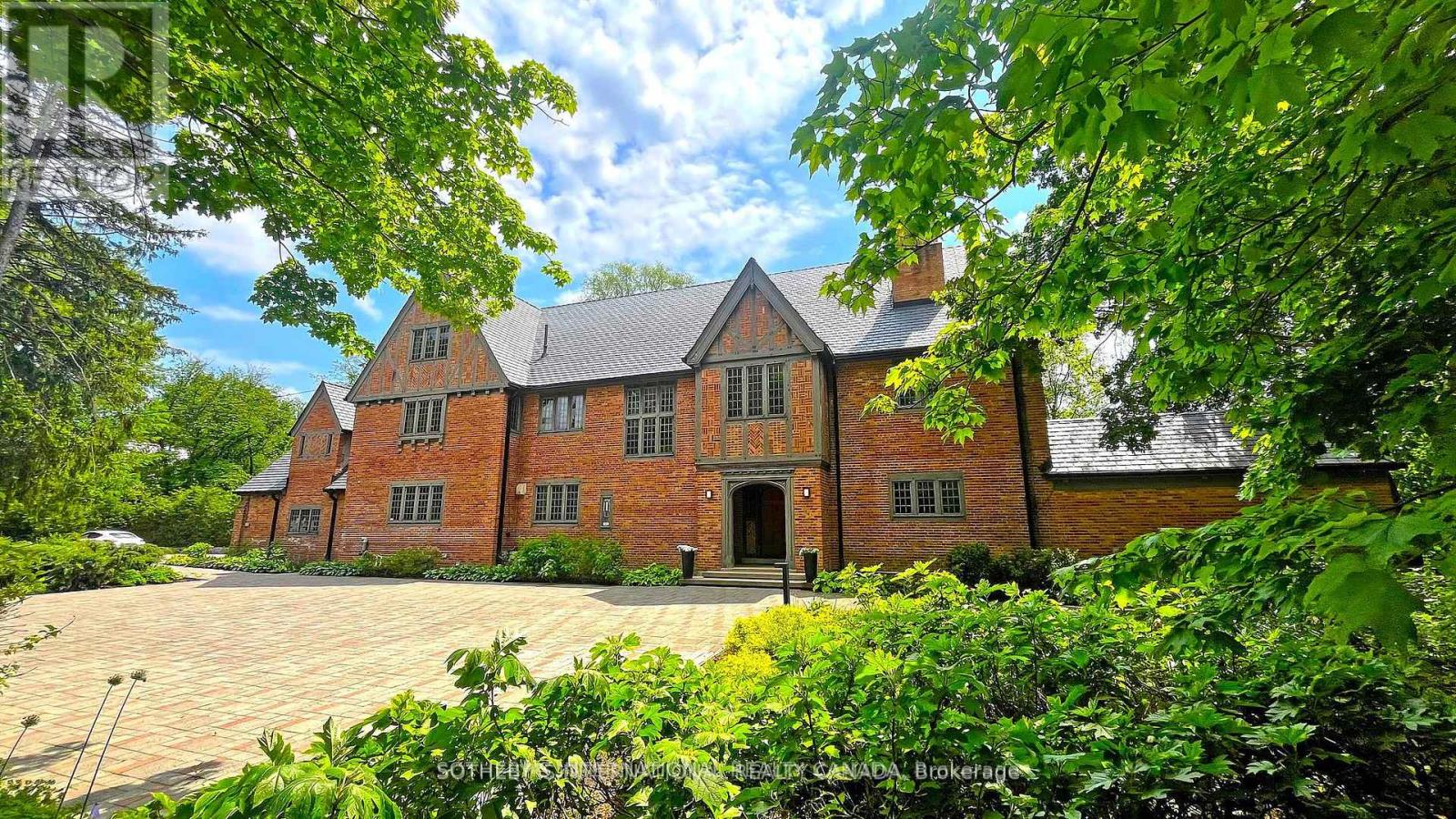 One and only. Nestled privately in Toronto's exclusive St Andrew enclave, appx 0.86-acre (37,507.72 sf) hillside ground adores the expansive tableland and magnificent residence that call for a unique and extraordinary estate collection. Appx 185ft frontage, 189ft west-depth, wider back 246ft, and exceptional 304 ft east-depth. An unparalleled geographical location provides breathtaking panoramic views and wraparound forest ravines. The Grand English Manor Revival Architecture boasts appx 10,000 sf sophisticated interior with 8,171 sf above grade. All three plus one storey encompasses 8 bdrm, 8 bath and a private chapel. Principal edifice rises tall with numerous entrances & three stairwells. Main foyer commands a significant open stair hall as first-class piece de resistance. Two-story windows grace opulent natural light. Gracefully pitched roofs, mullioned windows, and half-timbered facades. Antique fireplace with French imported fire-bench & hand-paint mantels. Allure of old world charm harmoniously coalesces with aristocratic refinement, intricate craftsmanship and sumptuous opulence. 2016 Bsmt Waterproof. Newer high-end appliances and high-efficiency equipment. Wolf 6-burner gas range, Sub-Zero fridge/freezer, dishwasher, LG washer/dryer, AQUECOIL hydronic heating, APRILAIRE humidifier, NTI water boiler, two owned HWT and two AC (2016). Redesigned STUDIO TLA landscape features easy to maintain sunny gardens & tremendous stone/ brick pavements. NICK DAY container cabana studio with bath & extensive deck. Multiple-level resistant wood/metal patios offer ample space for large gatherings. South golf greens broaden to wider land for potential pool & tennis court additions. Attach 3-car garage plus capacious driveway & courtyard to accommodate 33-cars.Two automated gates and custom corten steel panels enhance a secure and stylish outdoor living. A true masterpiece stands as a testament to discerning connoisseurs and the distinguished history of elite homeowners. (id:64974)