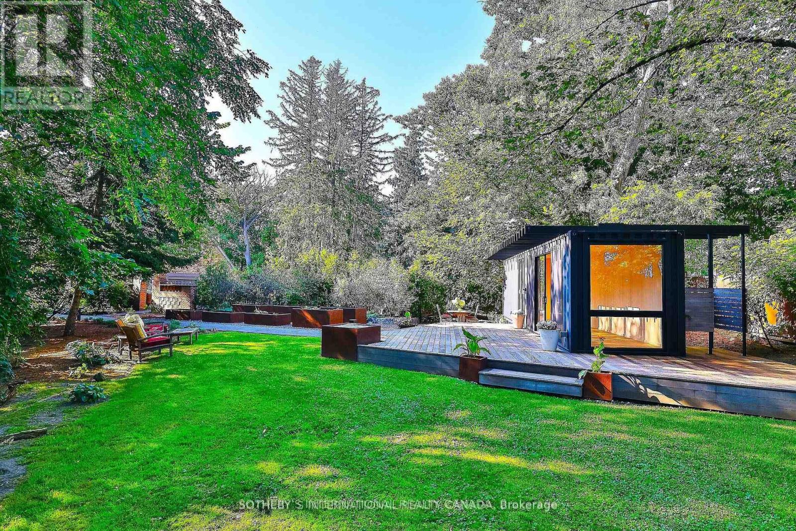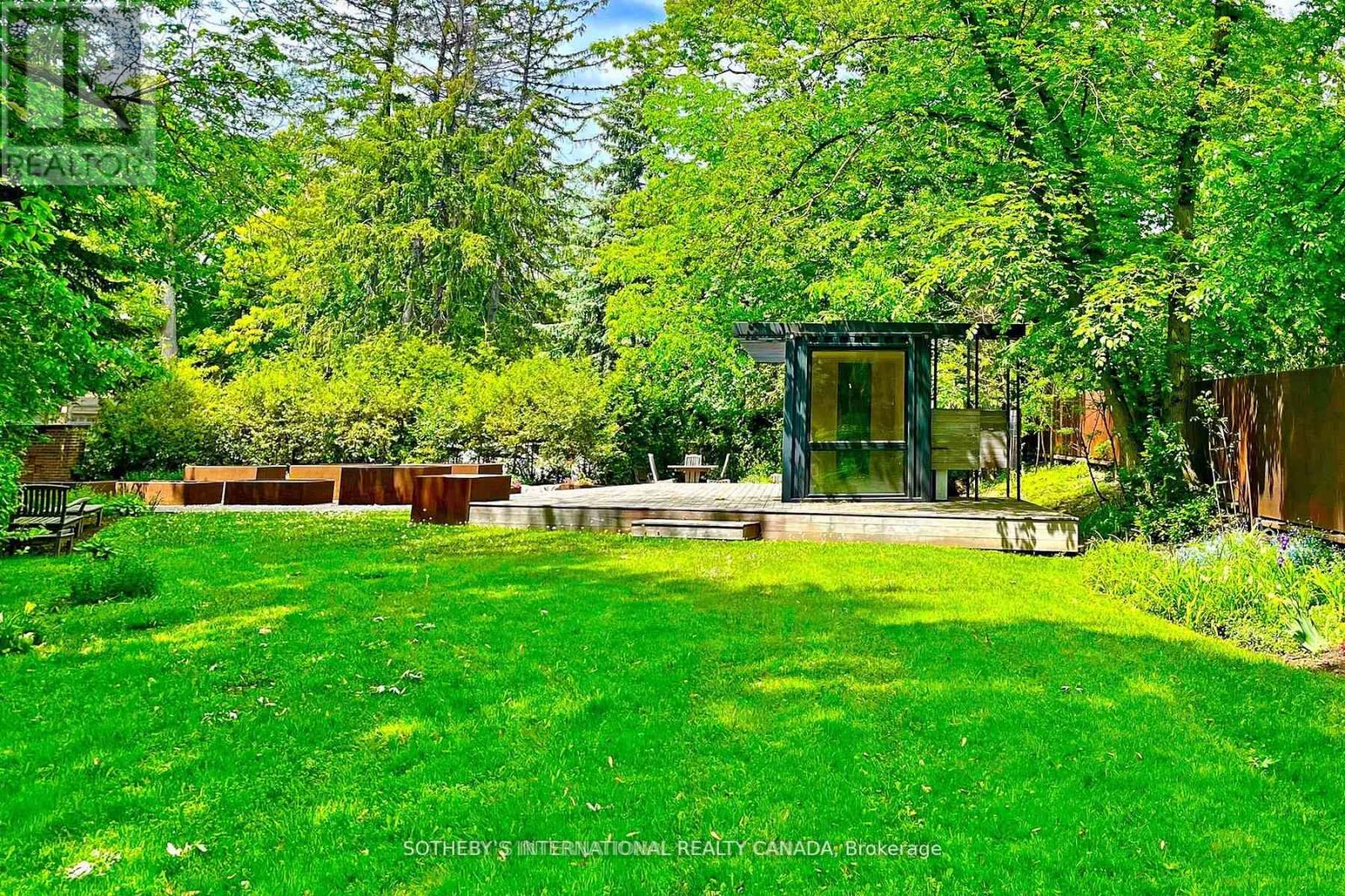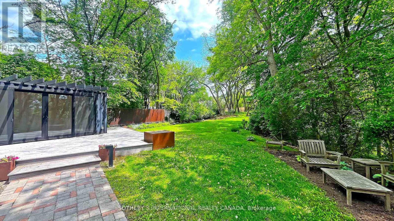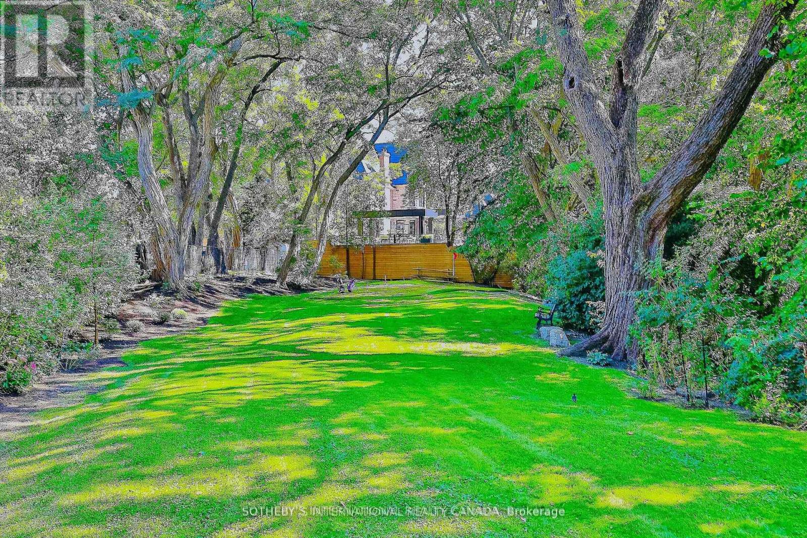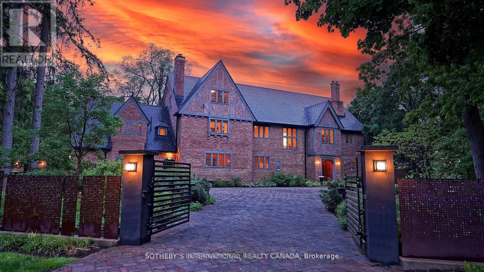 One and only. Nestled privately in Toronto's exclusive St Andrew enclave, appx 0.86-acre (37,507.72 sf) hillside ground adores the expansive tableland and magnificent residence that call for a unique and extraordinary estate collection. Appx 185ft frontage, 189ft west-depth, wider back 246ft, and exceptional 304 ft east-depth. An unparalleled geographical location provides breathtaking panoramic views and wraparound forest ravines. The Grand English Manor Revival Architecture boasts appx 10,000 sf sophisticated interior with 8,171 sf above grade. All three plus one storey encompasses 8 bdrm, 8 bath and a private chapel. Principal edifice rises tall with numerous entrances & three stairwells. Main foyer commands a significant open stair hall as first-class piece de resistance. Two-story windows grace opulent natural light. Gracefully pitched roofs, mullioned windows, and half-timbered facades. Antique fireplace with French imported fire-bench & hand-paint mantels. Allure of old world charm harmoniously coalesces with aristocratic refinement, intricate craftsmanship and sumptuous opulence. 2016 Bsmt Waterproof. Newer high-end appliances and high-efficiency equipment. Wolf 6-burner gas range, Sub-Zero fridge/freezer, dishwasher, LG washer/dryer, AQUECOIL hydronic heating, APRILAIRE humidifier, NTI water boiler, two owned HWT and two AC (2016). Redesigned STUDIO TLA landscape features easy to maintain sunny gardens & tremendous stone/ brick pavements. NICK DAY container cabana studio with bath & extensive deck. Multiple-level resistant wood/metal patios offer ample space for large gatherings. South golf greens broaden to wider land for potential pool & tennis court additions. Attach 3-car garage plus capacious driveway & courtyard to accommodate 33-cars.Two automated gates and custom corten steel panels enhance a secure and stylish outdoor living. A true masterpiece stands as a testament to discerning connoisseurs and the distinguished history of elite homeowners. (id:64974)