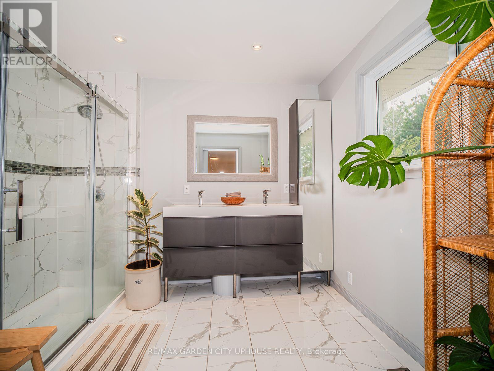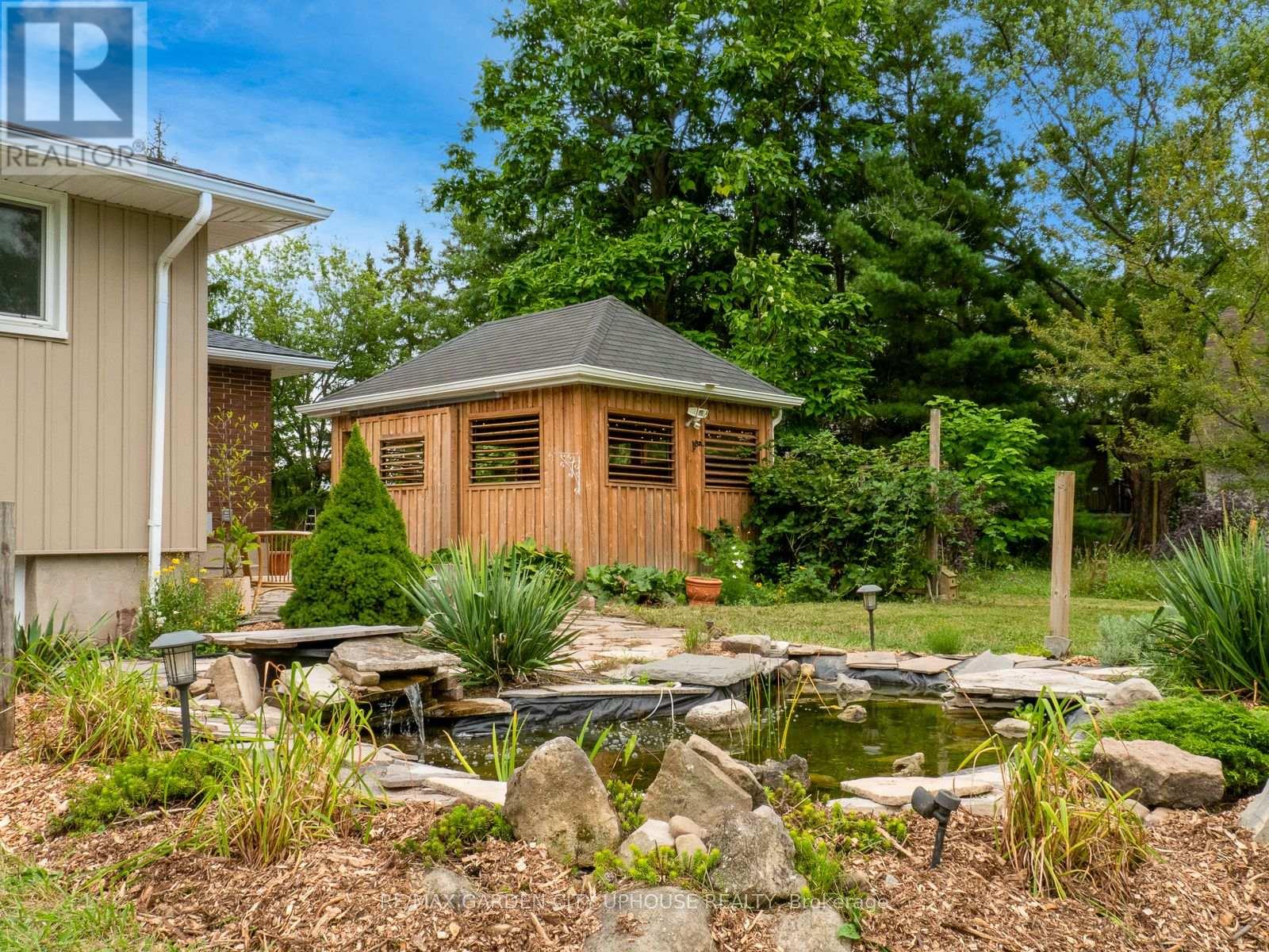 Welcome to 373 Darby Road, a charming 2+1 bedroom bungalow set on 3 acres of peaceful land, perfect for a quiet country lifestyle. Fully renovated in 2017, this home is conveniently located near all of life's conveniences just a short drive away, including the new hospital. The property features a large circular driveway and a welcoming concrete patio, partially covered for relaxing outdoors. Inside, the living room has a gas fireplace with a brick hearth, connecting seamlessly to the dining area and a modern kitchen. The kitchen includes a skylight, quartz countertops, a spacious island, and ample storage. Down the hallway, you'll find a bedroom, a 4-piece bathroom, and a primary suite with a walk-through closet and a 4-piece ensuite featuring a glass shower and heated floors. The main floor also offers a laundry room and direct access to the single-car garage. The basement includes a finished recreation room, a third bedroom, and plenty of flexible space for a home office, gym, or hobby area. Outside, the backyard offers a flagstone patio, a serene pond with a water feature, well-kept gardens, and a wooded landscape. A hot tub sits in a gazebo with a skylight and jalousie windows, ideal for relaxing year-round, with the house just steps away. There's also a second concrete patio, and a firepit area for quiet evenings under the stars. Enjoy unobstructed sunsets all year round. The home is equipped with practical upgrades, including 50-year shingles (2022), a furnace and AC (2018), a 10x12 ft shed (2020), a generator, sump pump, 200-amp electrical service, and new windows and doors (2019). This is a warm, inviting home ready for you to make it your own. (id:64974)