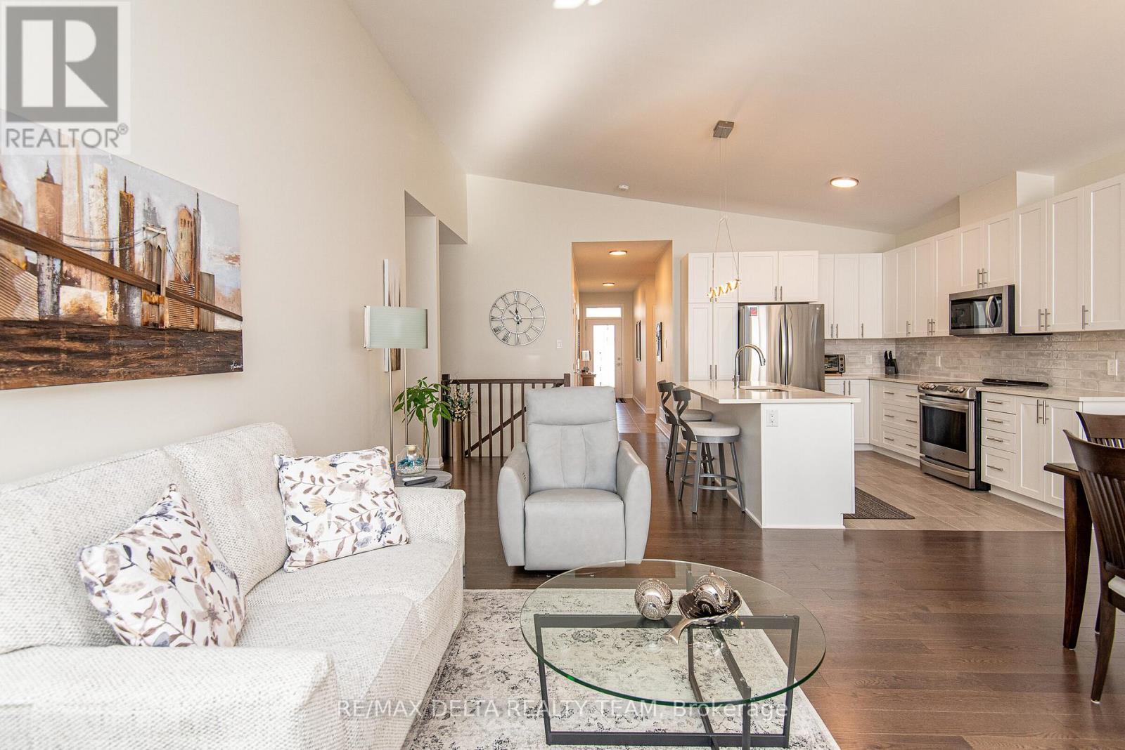 Welcome to 373 Sterling, a 1740 square feet home with cathedral ceilings and all the perks that will save you time and money.This immaculate, open-concept, 2 bedroom, 2 bath bungalow is unique because of an addition built in 2022 of a 4 season sunroom (12X18 $100k) featuring cathedral ceilings with beautiful windows boasting plenty of natural light as well as custom dual opera shades with black out. Added features include in-wall central vacuum hose with hook ups in basement and garage. This home will bring you peace of mind with the Generac generator installed in 2023.The open-concept main floor has beautiful hardwood flooring, a gas fireplace with a large kitchen with many cabinetry space, stunning quartz countertops, stainless steel appliances and a gorgeous backsplash. The main floor primary bedroom offers a large walk-in closet and a 4 pc ensuite with large glass shower. Second bedroom is ideal for guests and or an office with an additional 4pc bath right next to it. Convenient main floor laundry, and direct access to the double-car garage completes the main level. Lower level is awaiting your personal touch with ample room to have a 3rd bedroom, rec room, bathroom, and plenty of storage. Fully PVC fenced backyard (installed Oct 24) has a composite deck perfect for entertaining. (id:64974)