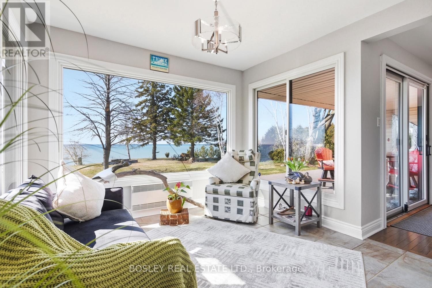 Direct private "Lake Ontario" waterfront, this incredible and unique waterfront property, a rare find along the Shoreline with direct beach access and a view that brings a smile to your face all year round. Bring the term "long walks on the beach" to life here, a special an uniquely private beach. Whether you are looking for a full time residence or 4 season cottage to enjoy at your please all year, this is a must see sensational property. Plenty of thoughtful details, a well designed interior main floor layout with space to take in the view from every window, watch the skyline all day, evening and into the night surrounded by privacy. A beautiful exterior space for entertaining, large stamped concrete patio overlooking the exterior lights illuminating the landscaped grounds, custom fire pit and decking along the shore, leading directly down to the lake with views through to Presqu'ile Provincial Park. A beautiful interior with tasteful updates, eat in kitchen with beautiful cabinetry and storage, overlooking the main floor den with oversized windows, large living room adjacent with plenty of space for you to personalize and orientate furniture to spend time entertaining or just enjoying the peace and tranquility. Expansive lower level with additional room for finished living space and guest accomodation, laundry etc.... The primary bedroom provides a second walk out to the Southern part of the property and a diverse landscaped yard with mature trees and clear views. A very special place to call your own, an asset cottage for those who like to travel or a full time residence, a multitude of options for those looking to really take in "LAKE LIFE" and appreciate the little details. Relax, swim, sunrise, stargazing and breathe in the lake breeze! (id:64974)