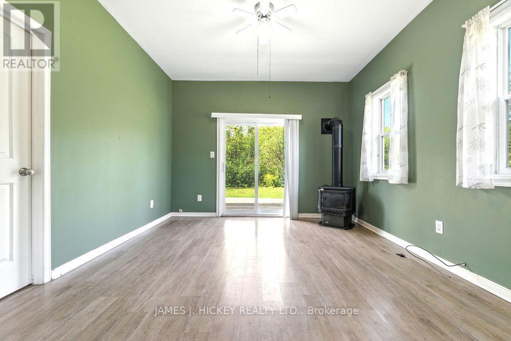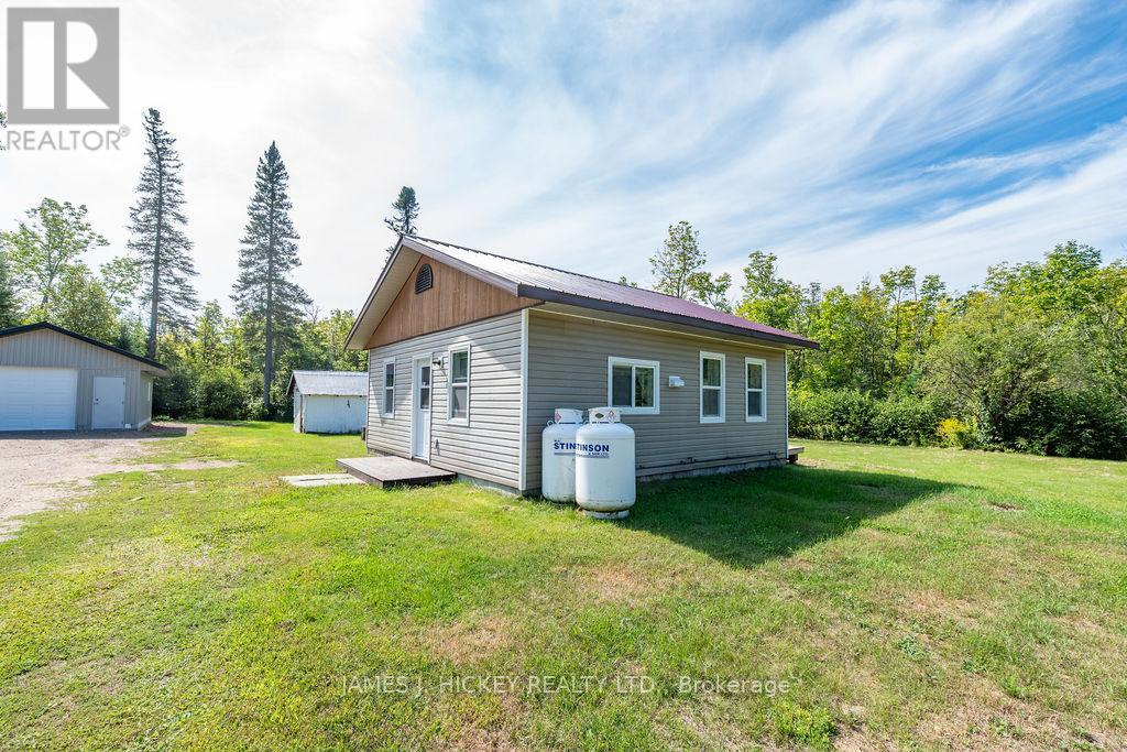 Charming 1-Bedroom Bungalow Backing onto Crown Land- Discover this beautifully maintained 4-year-old bungalow, perfect for those seeking comfort and privacy. Step into a bright and spacious open-concept kitchen and living area, featuring a cozy propane fireplace that adds warmth and charm. The generous bedroom offers a peaceful retreat, complemented by a stylish 4-piece bathroom. Enjoy the convenience of a main-floor laundry in the utility room, and step through the patio doors to your own private backyard oasis bordering serene crown land for added tranquility. A newly completed 28' x 18' detached garage (finished September 2025) provides ample space for storage, hobbies, or parking. Call today for full details and to schedule your private viewing! 24 hour irrevocable required on all offers. (id:64974)