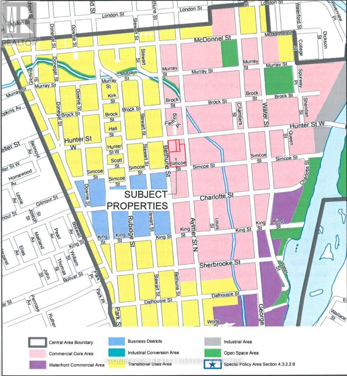 Prime development opportunity in Peterborough's designated "Central Area" . Offering 1.317 acres with frontage on 3 streets : Aylmer St - 315' / Simcoe St - 213' / Bethune St - 200'. This brownfield redevelopment site was formally the Baskin Robbins plant and has been rezoned to a generous C-6 designate allowing for many potential uses. Ideally located next to the Peterborough Public Library , Simcoe/Bethune Park and Peterborough Bus Terminal. (id:64974)