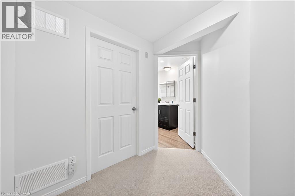 Welcome to this beautiful updated condo townhouse in the desirable area of Colonial Acres, Waterloo. Located in a quiet neighbourhood, this unit is tucked away at the back of the complex, with ample visitor parking and close to the park. This 3 bedroom, 3 bathroom home has been completely transformed, with modern updates, such a a white kitchen and backsplash (2020), vinyl flooring (2020), freshly painted (2026), updated baseboards on the main floor (2026). Upon entering the home you are greeted with a large foyer with access to the garage and a closet with newly installed mirror doors (2026). To the right is your dinette and galley style kitchen. At the back of the home you have beautiful hardwood floors in your dining room/living room with access to your backyard which is private and spacious. A fresh and updated powder room rounds out the main floor. Upstairs you will find beautiful hardwood floors, 3 bedrooms including a large primary bedroom with a walk-in closet and a renovated 5 piece bathroom (2020). The basement is fully finished with a 3 piece bathroom. This home is perfectly situated directly across from Conestoga Mall, public transit and all the amenities. (id:64974)
